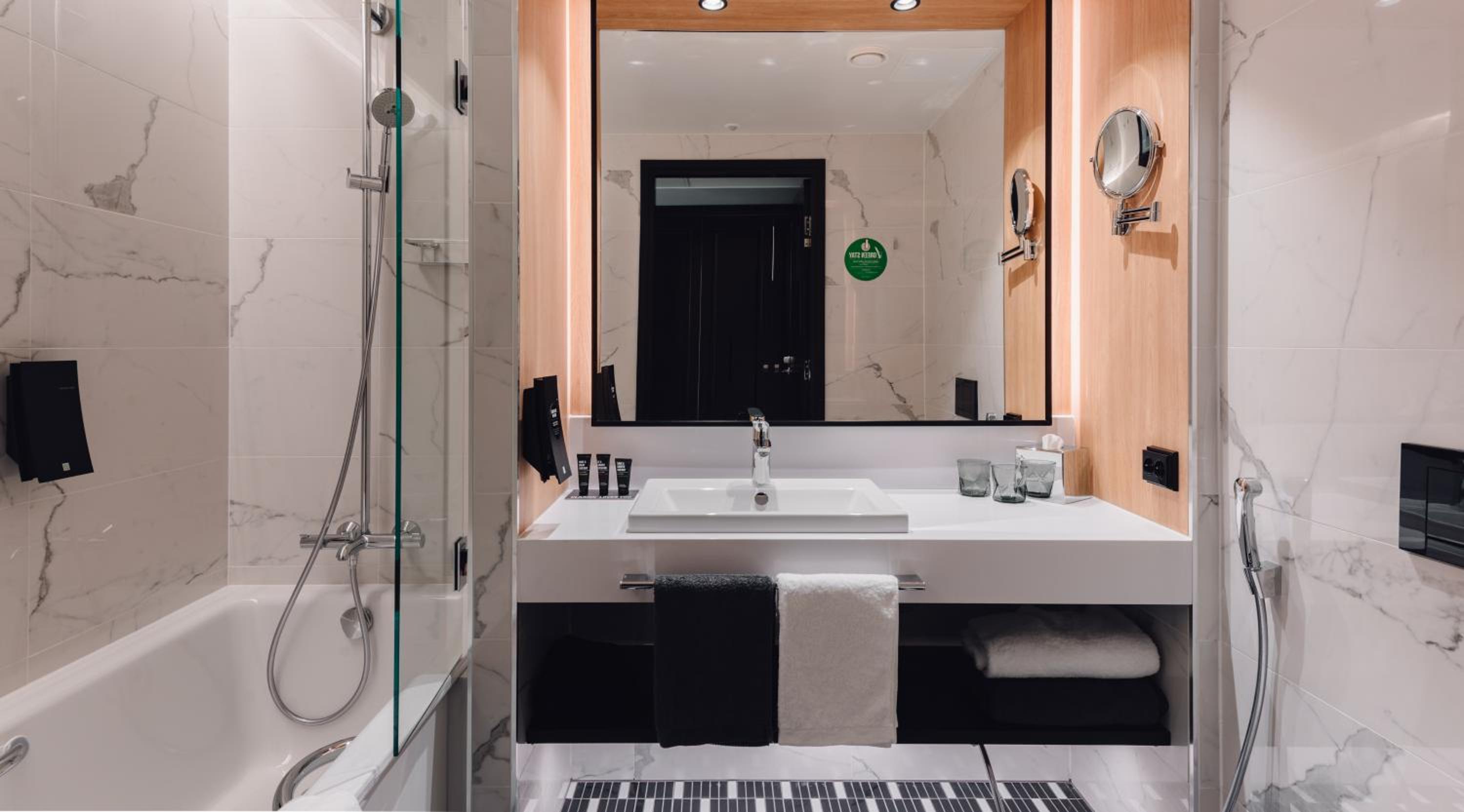 Very good breakfast, one step away Aviapolis train station. Gym and sauna are amazing. Shower and shampoo smell really good.