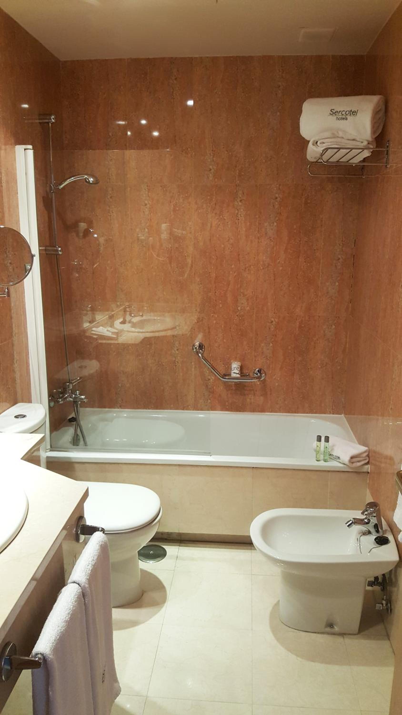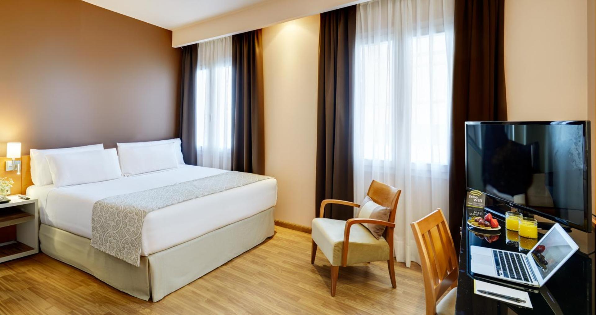 The bright and air-conditioned rooms at Hotel Sercotel Madrid Alcalá 611 feature internet access, satellite TV, and private bathrooms, providing guests with comfort and convenience during their stay.