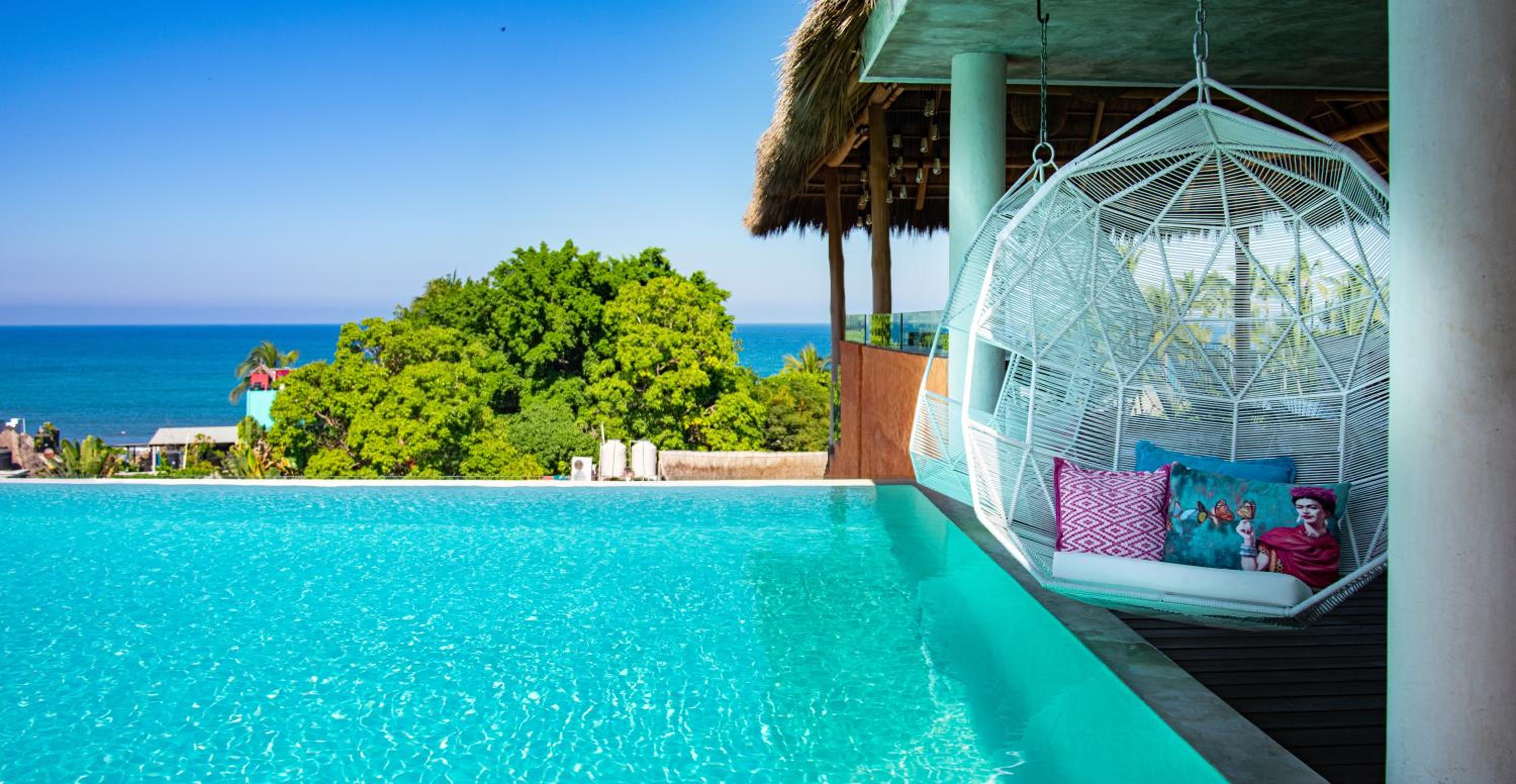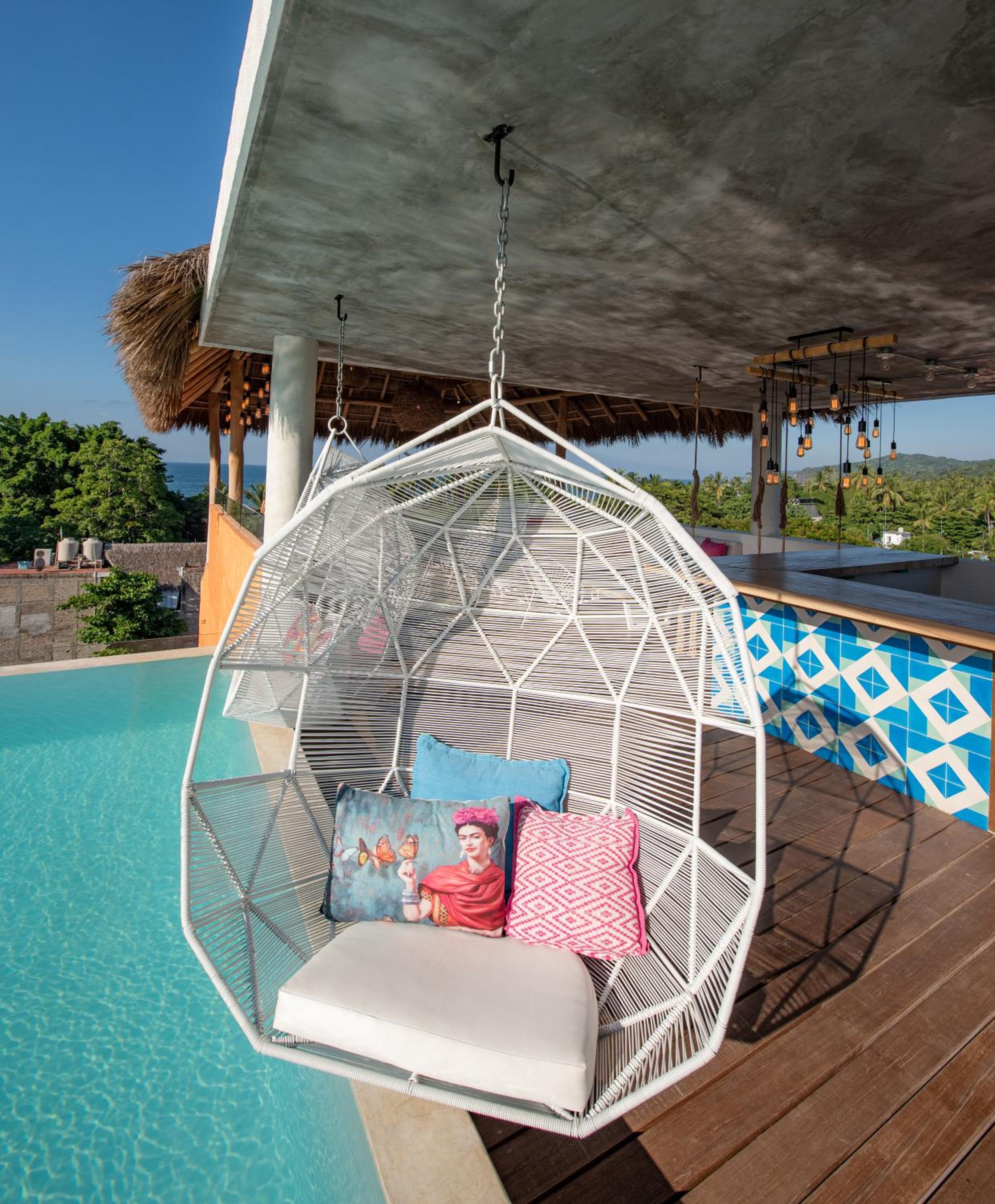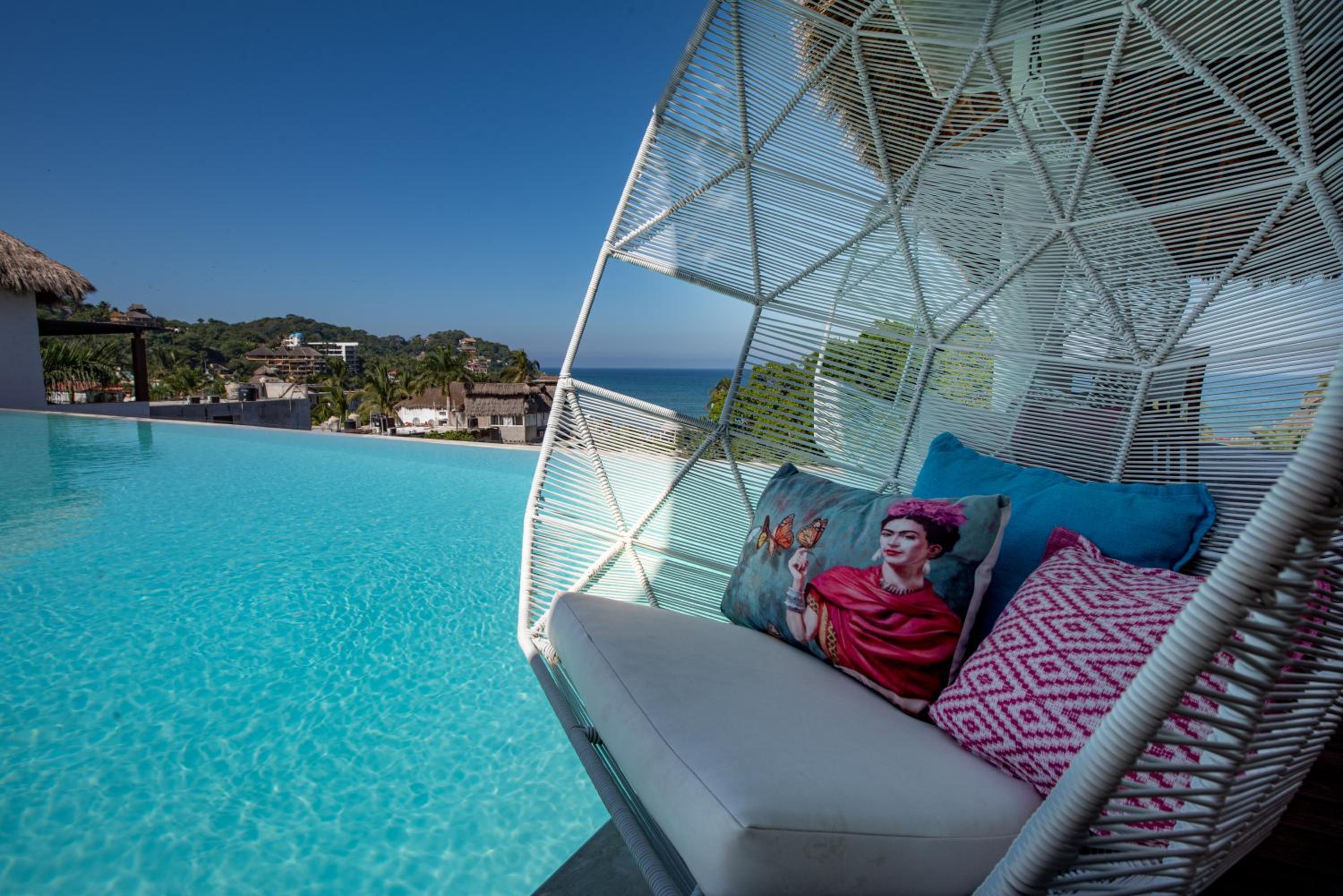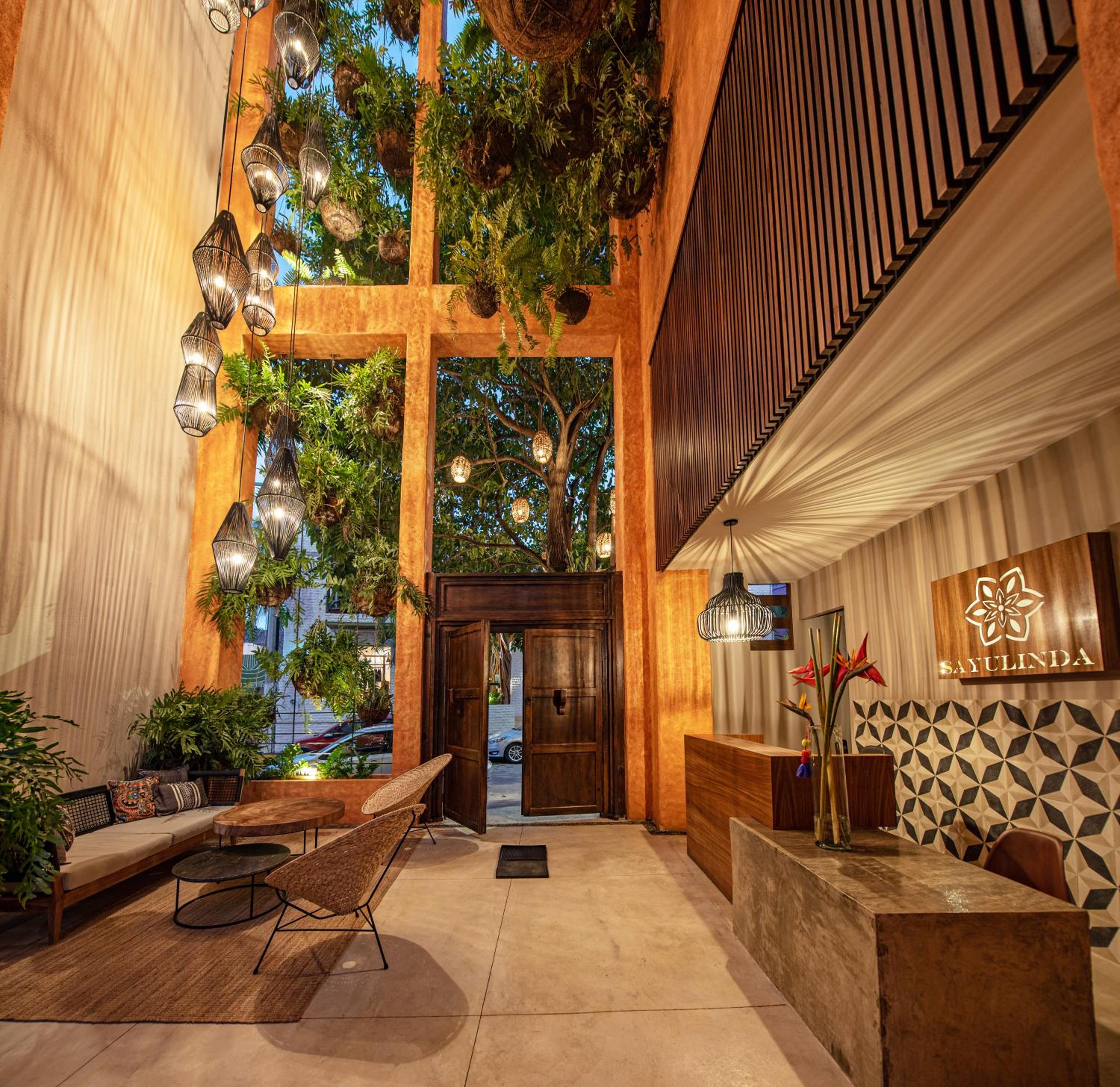 The Sayulinda is a uniquely designed hotel decorated with beautiful paint colours and tastefully chosen pillows and blankets .