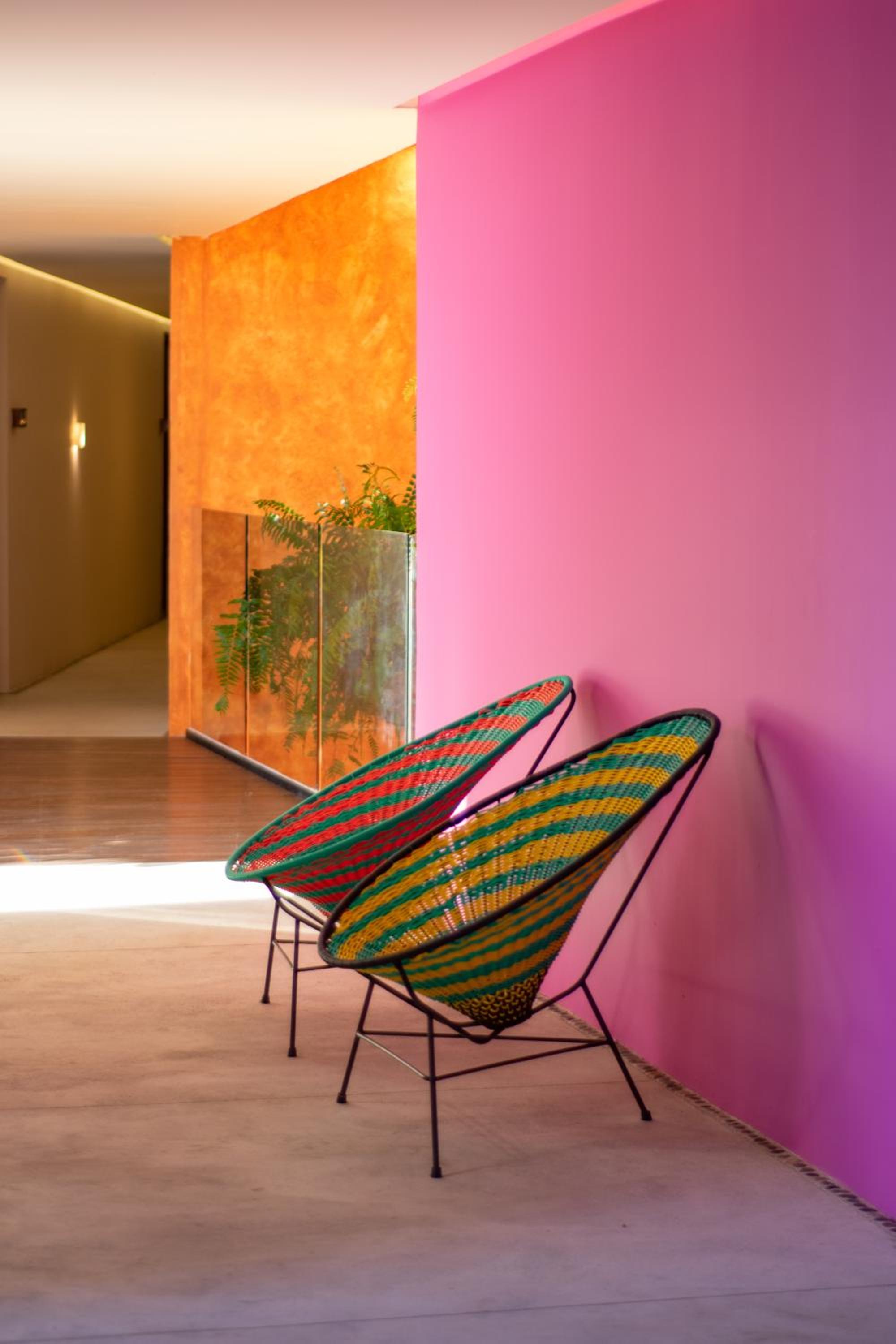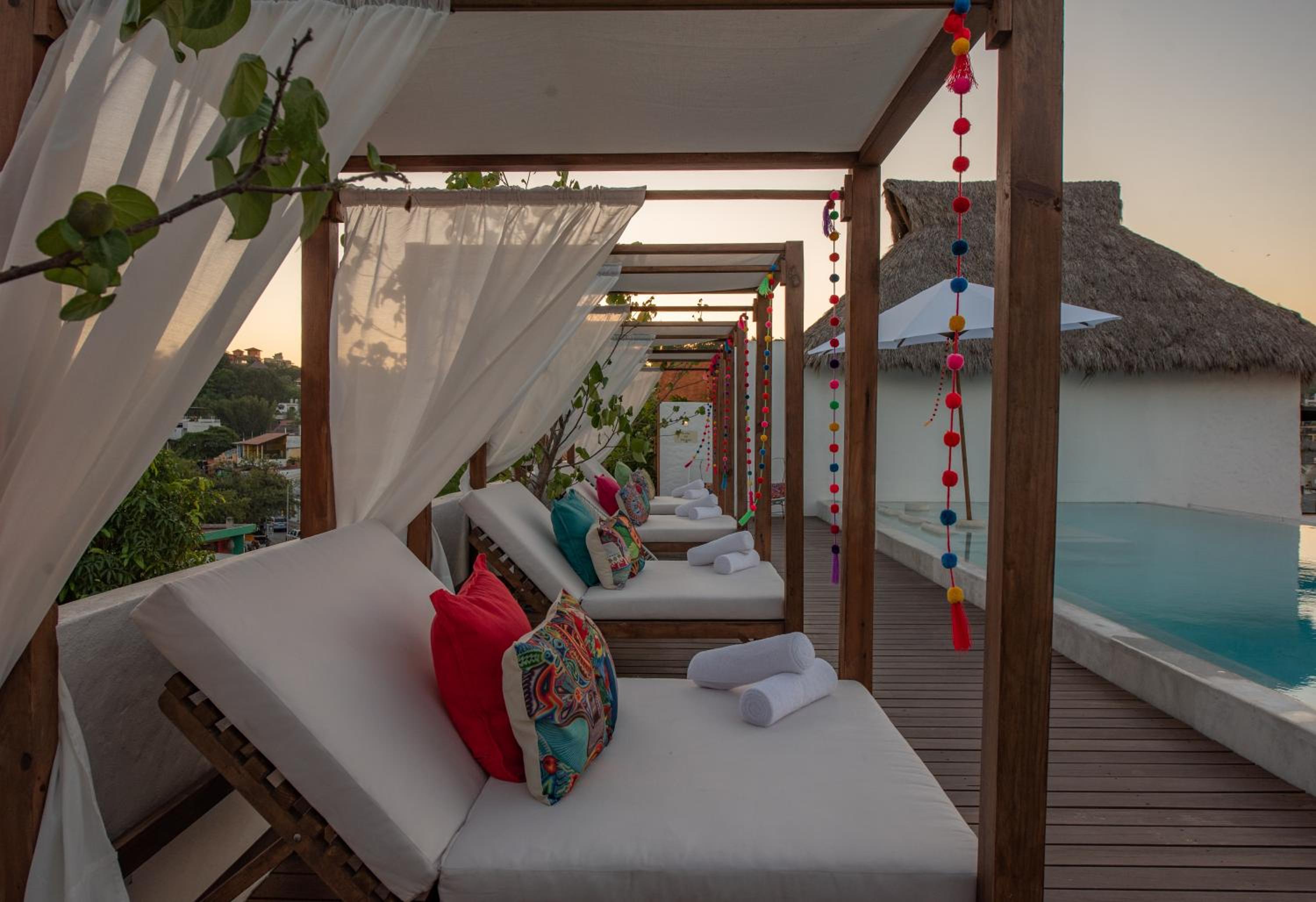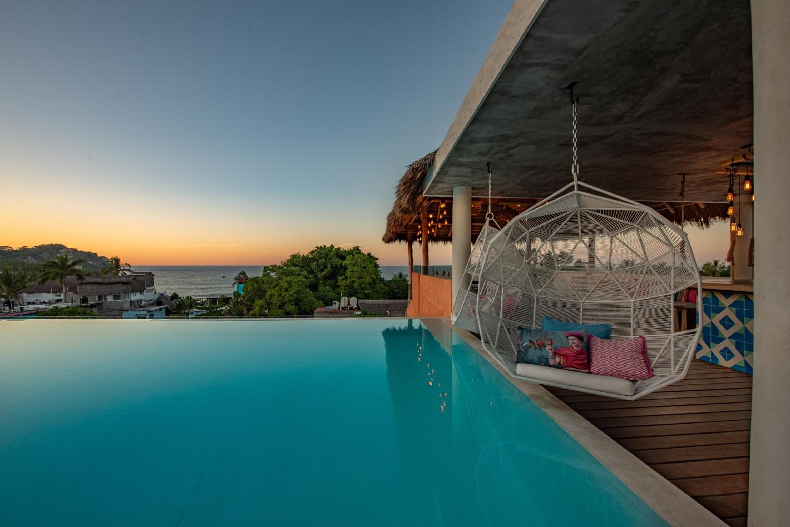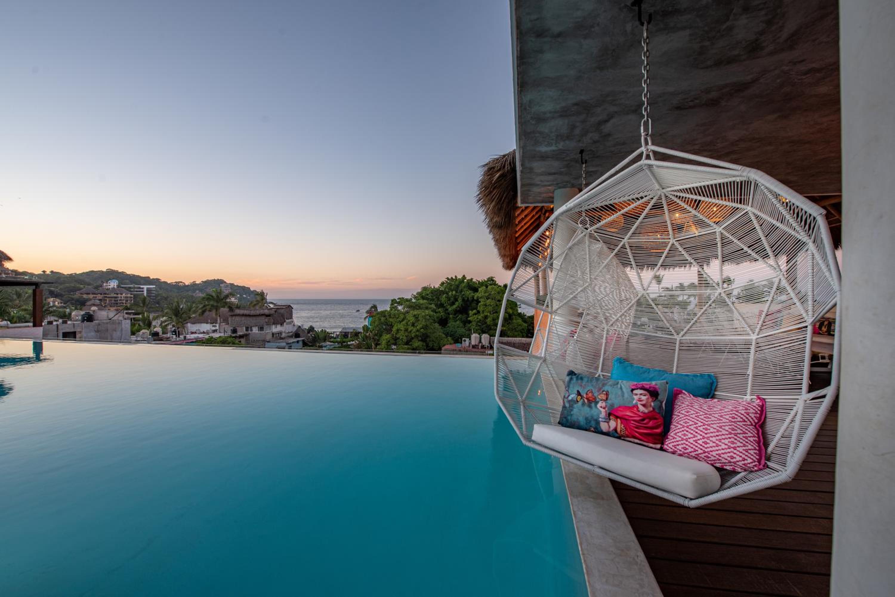 The Sayulinda is a uniquely designed hotel decorated with beautiful paint colours and tastefully chosen pillows and blankets .