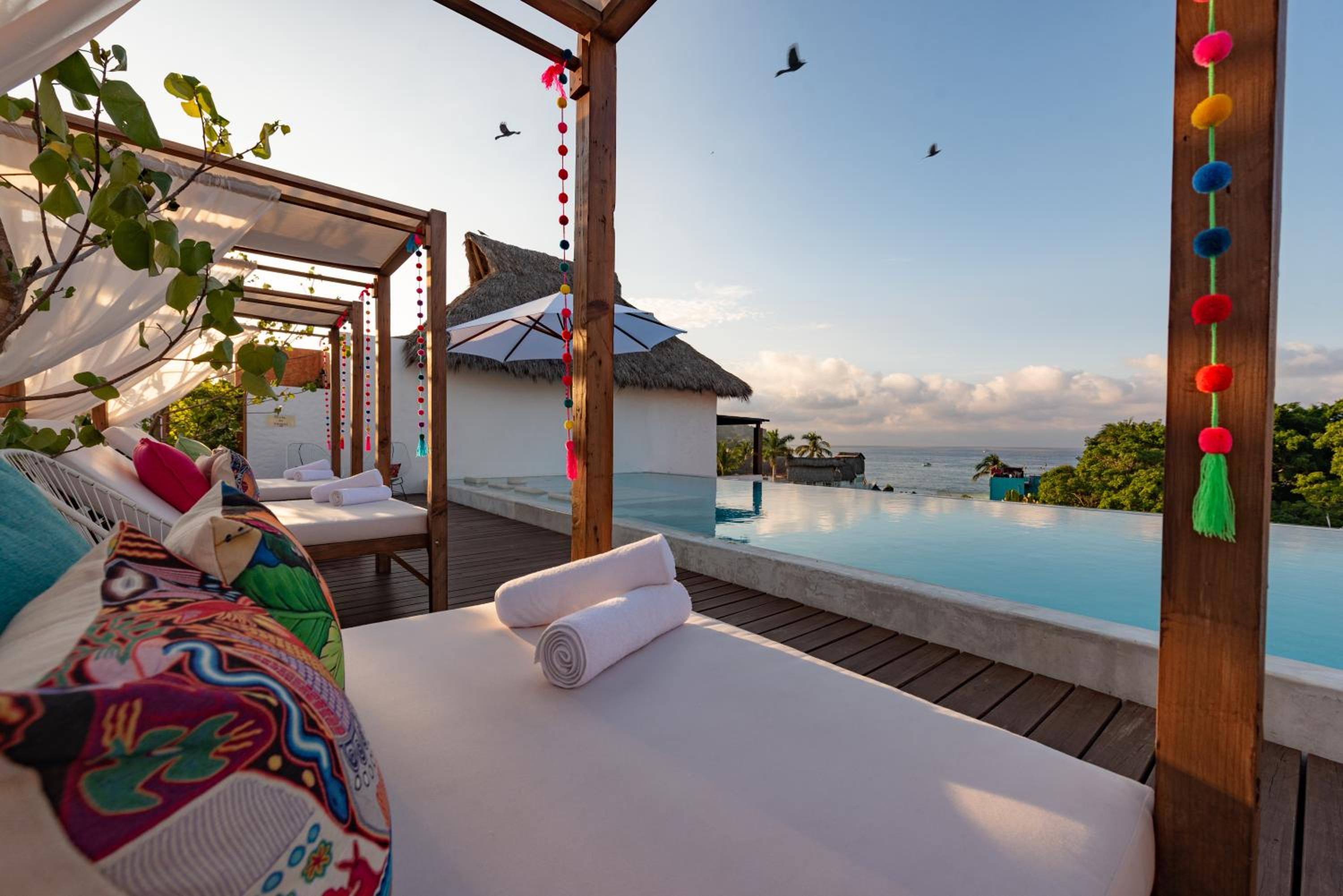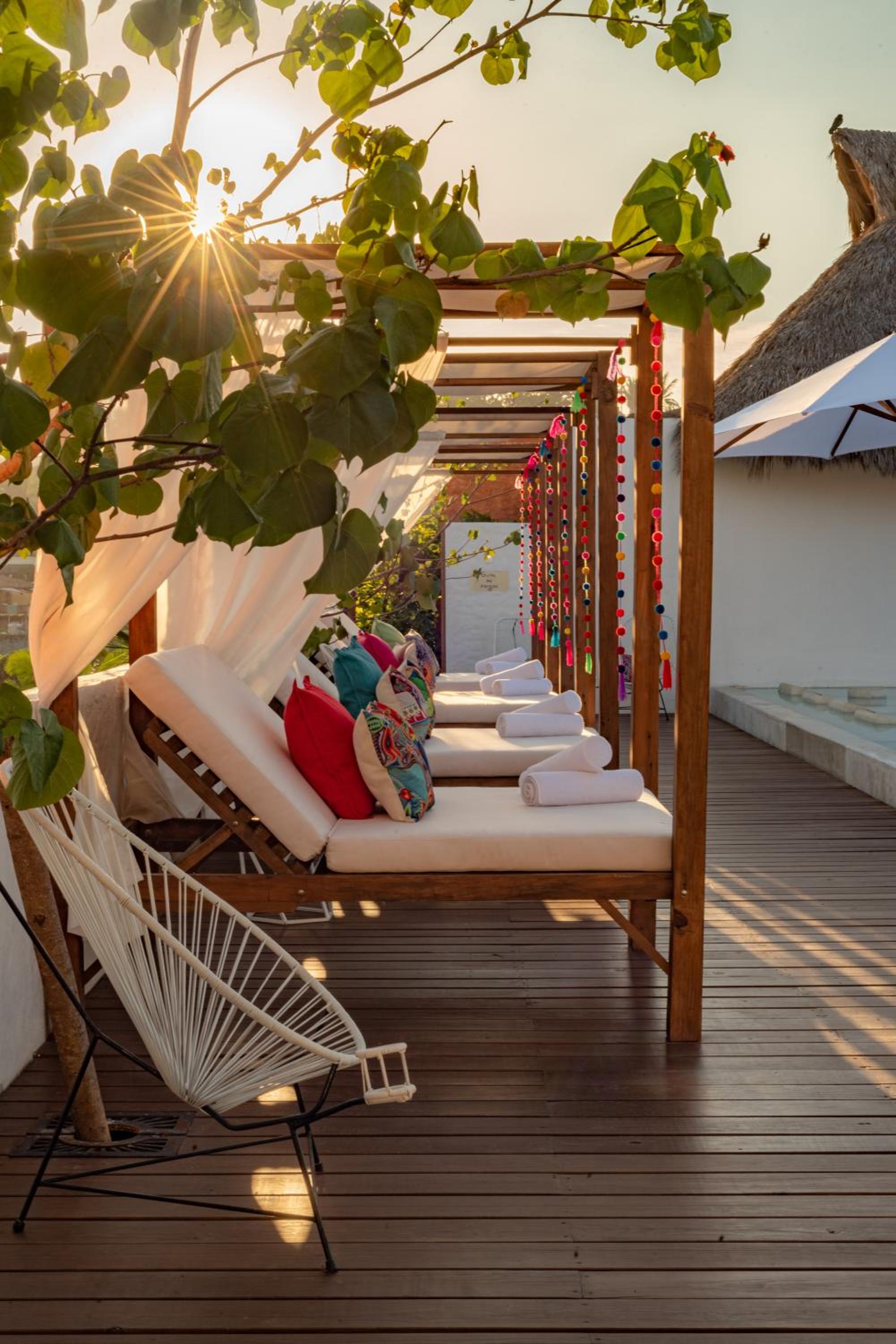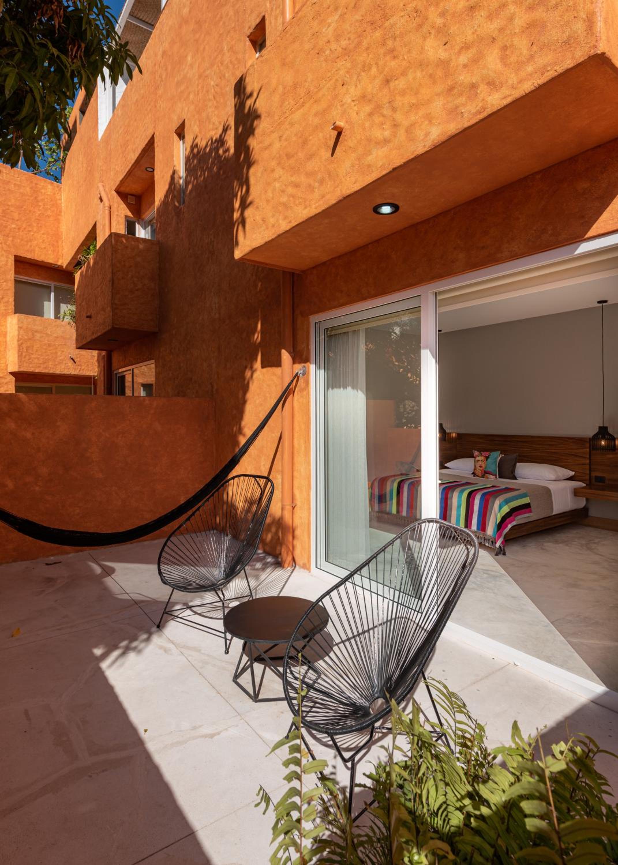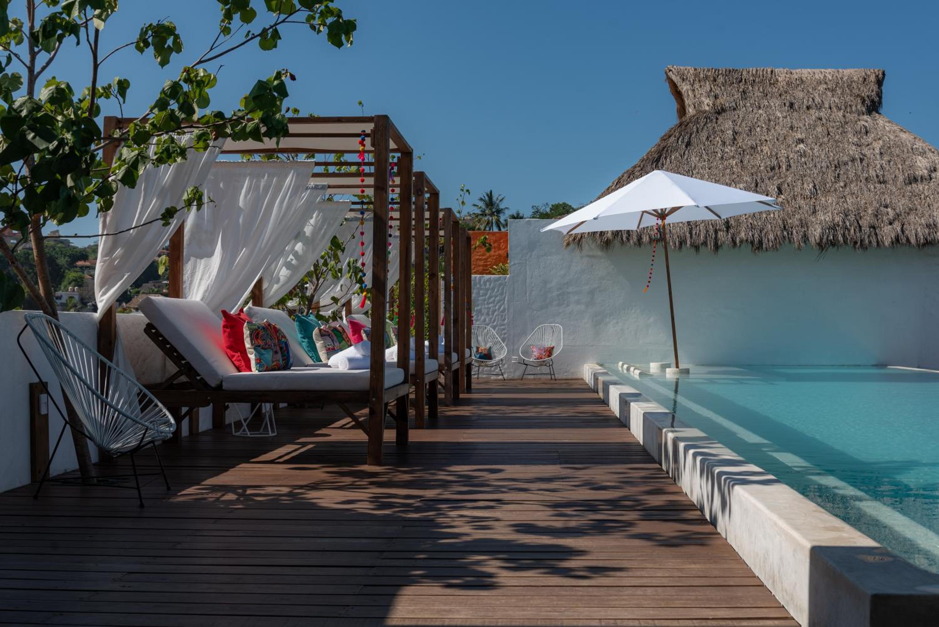 The Sayulinda is a uniquely designed hotel decorated with beautiful paint colours and tastefully chosen pillows and blankets .