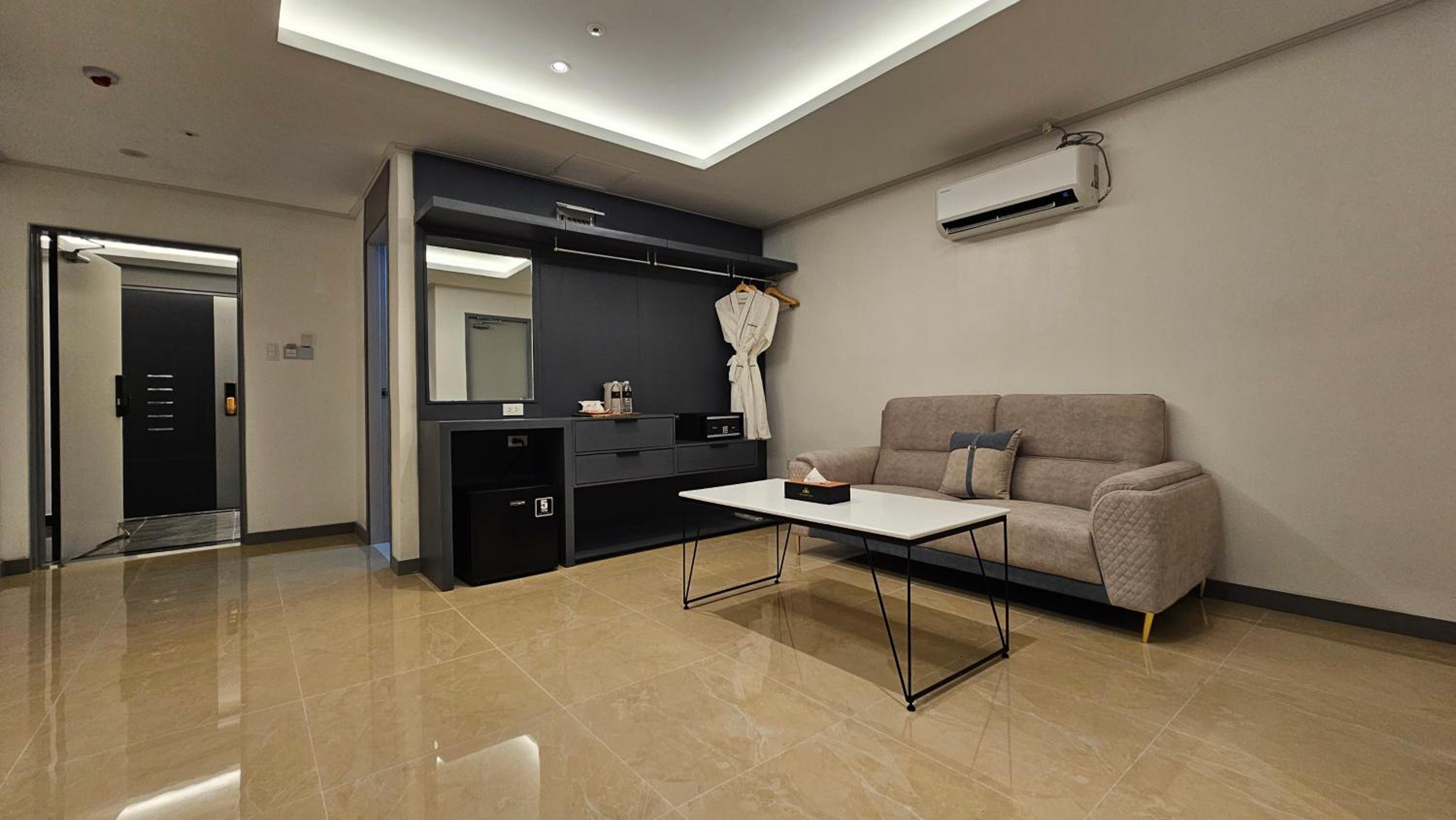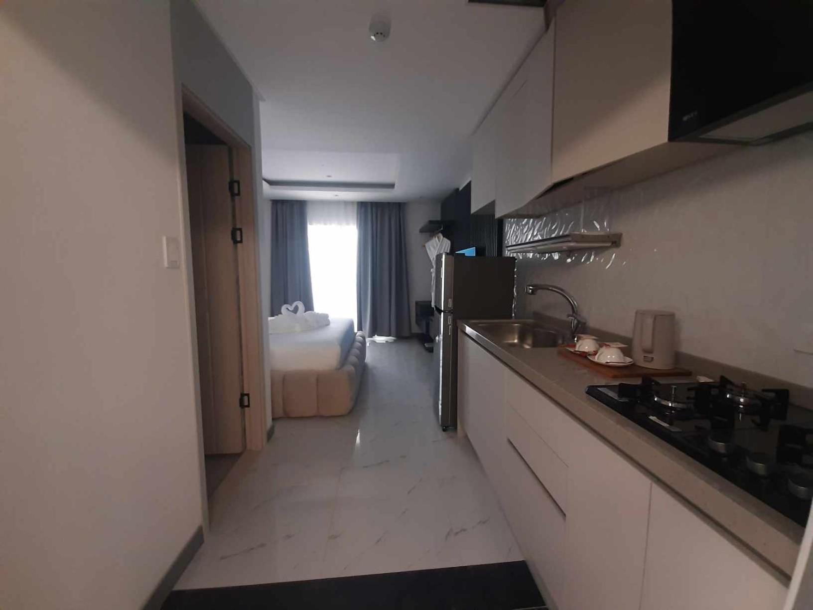 Despite checking in late our room was not prepared broken refrigerator not cooling. They have to replace it just when we checked in at night. Not functioning stove. Which I paid extra for the kitchenette. There were no plates and cutlery, the drawers were still dusty because it’s a new hotel. The info at booking.com was not precise regarding what is available already and what’s not. I paid extra for non existing equipments.