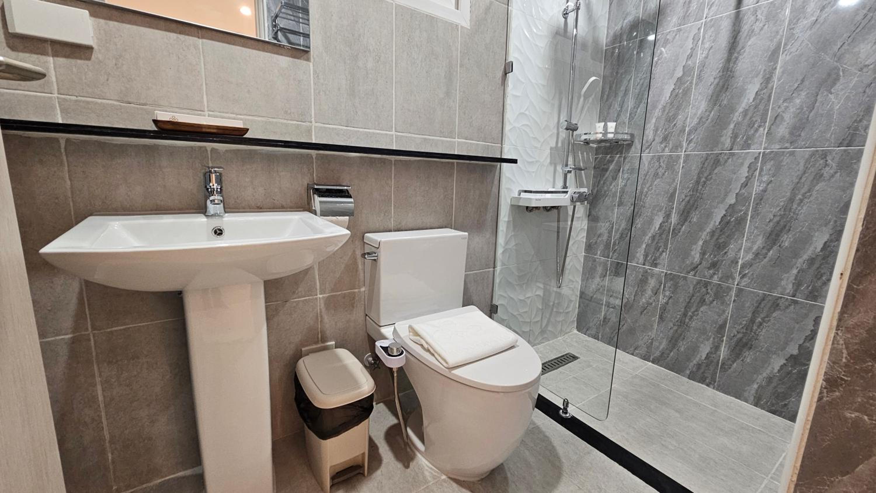 My room was spotless, well-prepared, and thoughtfully equipped with everything I needed: clean drinking water, perfectly working air conditioning, and a cozy, restful bed. The bathroom was immaculate with strong water flow and all the essentials ready to use. Even the little details, like fresh slippers and working remotes, were taken care of.
