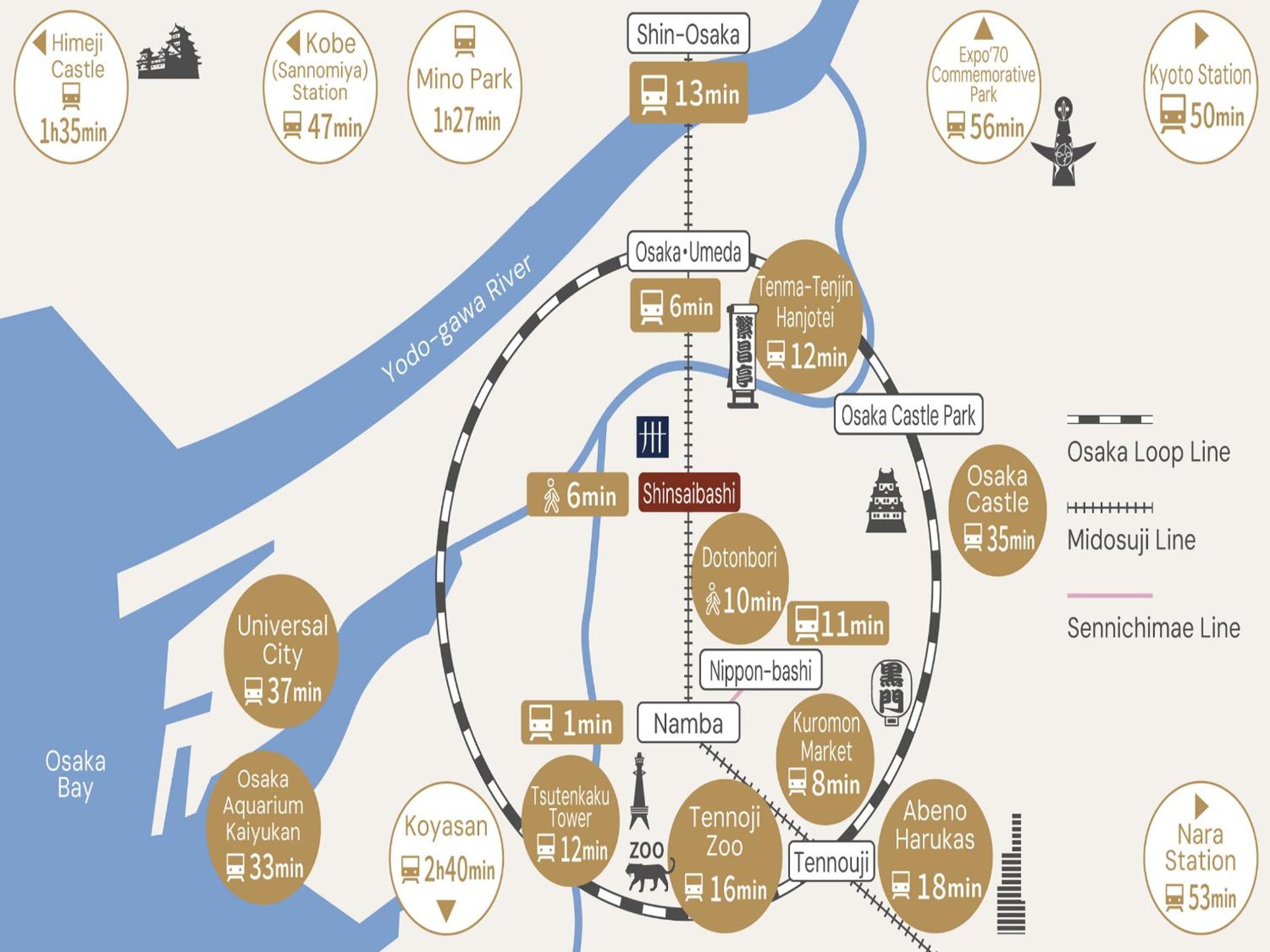 걸리고 도톤보리까지는 20분 정도 걸립니다.