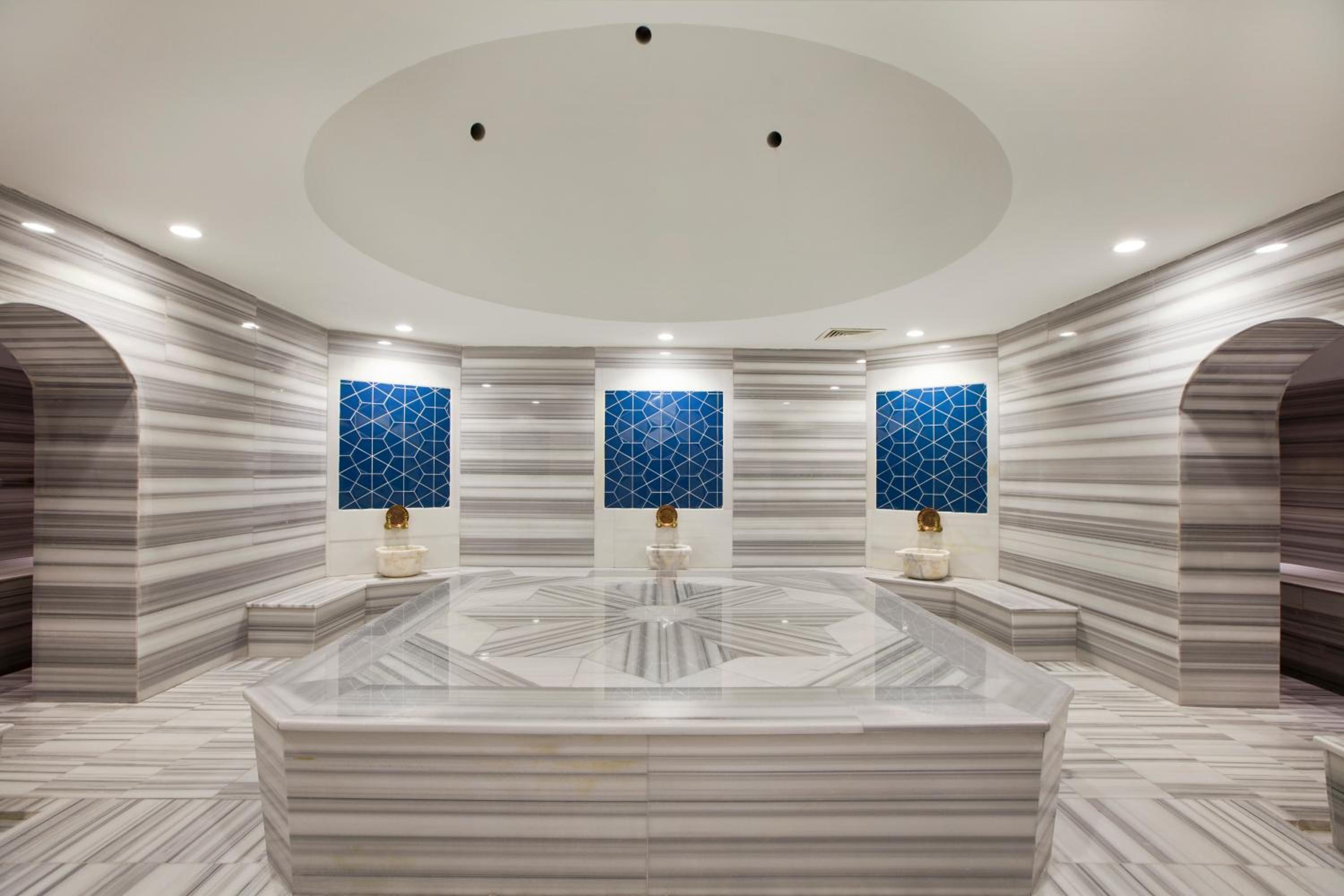 Indulge in a culinary journey with buffet-style meals featuring Turkish and international cuisines. Additionally, savor delectable dishes at the on-site à la carte restaurants. After a day of fun, unwind at the spa with a Turkish bath, sauna, and massage services.