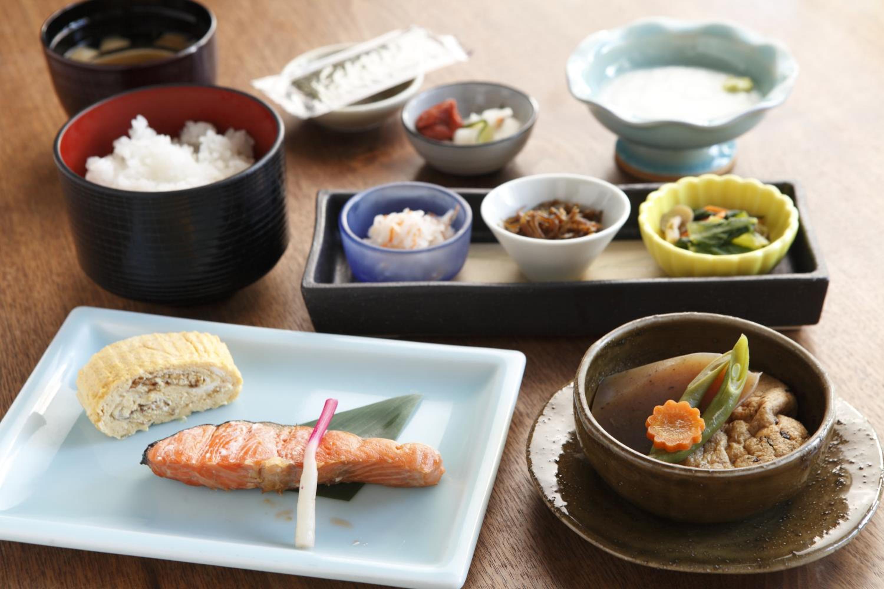 Indulge in a variety of Japanese and Western dishes served for dinner and breakfast, ensuring a delightful culinary experience during your stay at Hotel Claire.