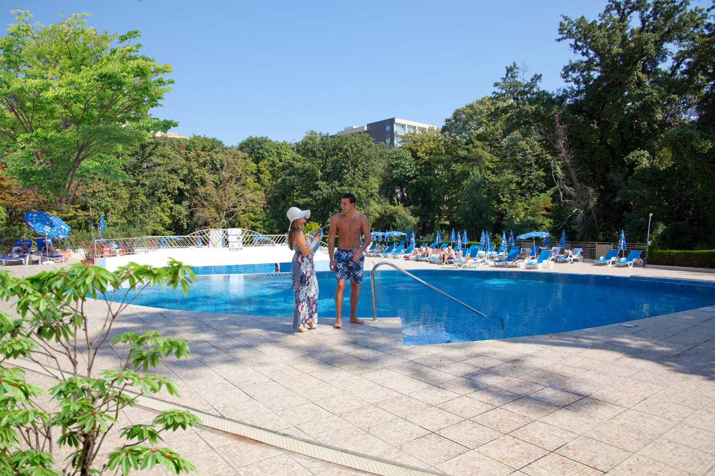 Beautiful hotel tucked in amazing greenery. We visited in June and the linden trees had bloomed so it smelled amazing and overall the green areas were impressive from rose garden to lovely lavender by the pool bar all was lovely. Hotel was very comfortable and clean, pools were perfect for a family trip. The kids pool is suitable for over 3 year olds but there were 3 pools to choose from so lots of options if the kids have swimming ring they can go in the adult pool with a person. The pools open at 9 and close at 18. Food is served at best times and is well organised, delicious and lots of choice. Loved the different cuisine nights from pirate evening to Japanese evening. The kids animation was lovely and there was a kids disco every evening at 20:00 for half hour. Rooms were clean and modern, recently refurbished and very comfortable.