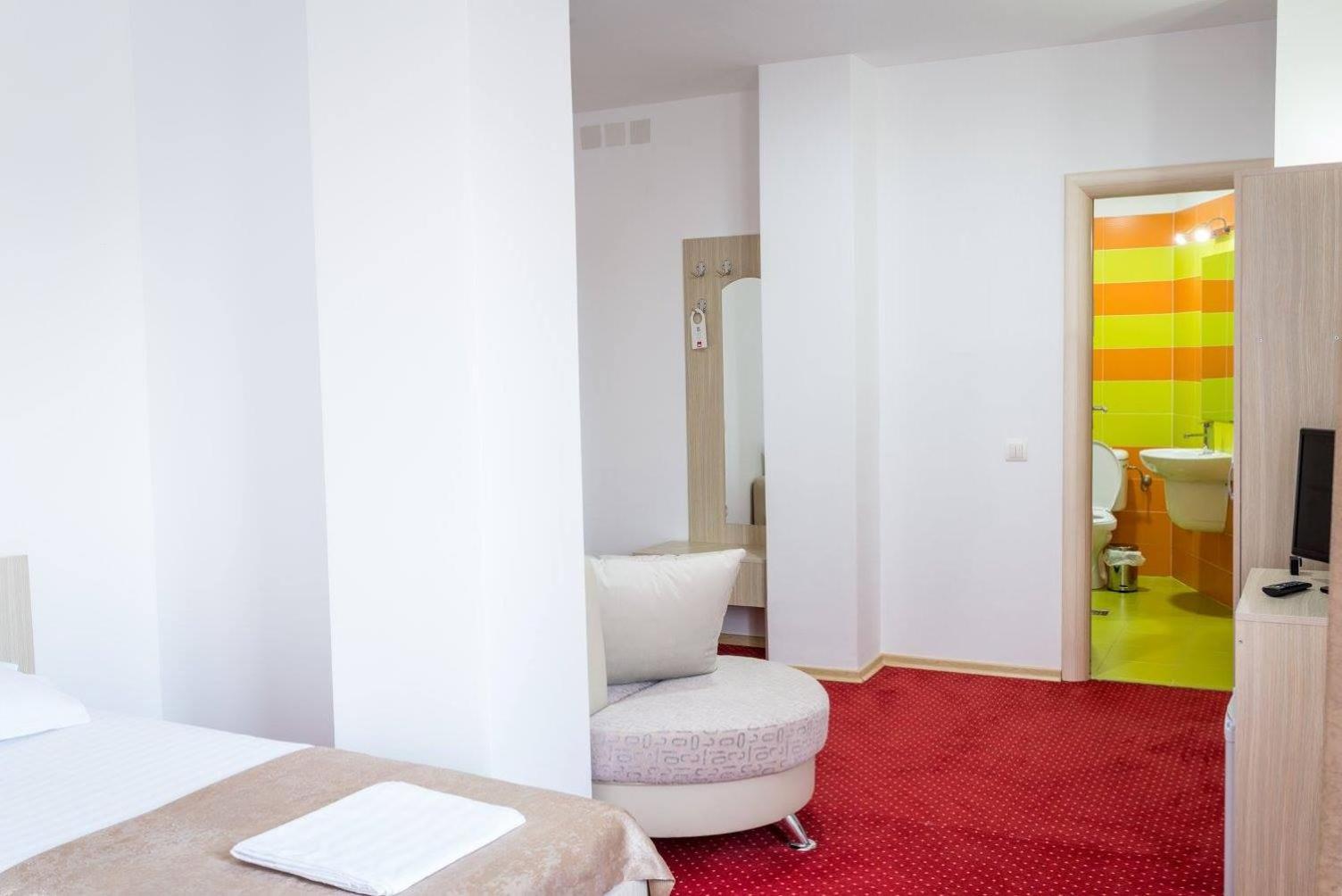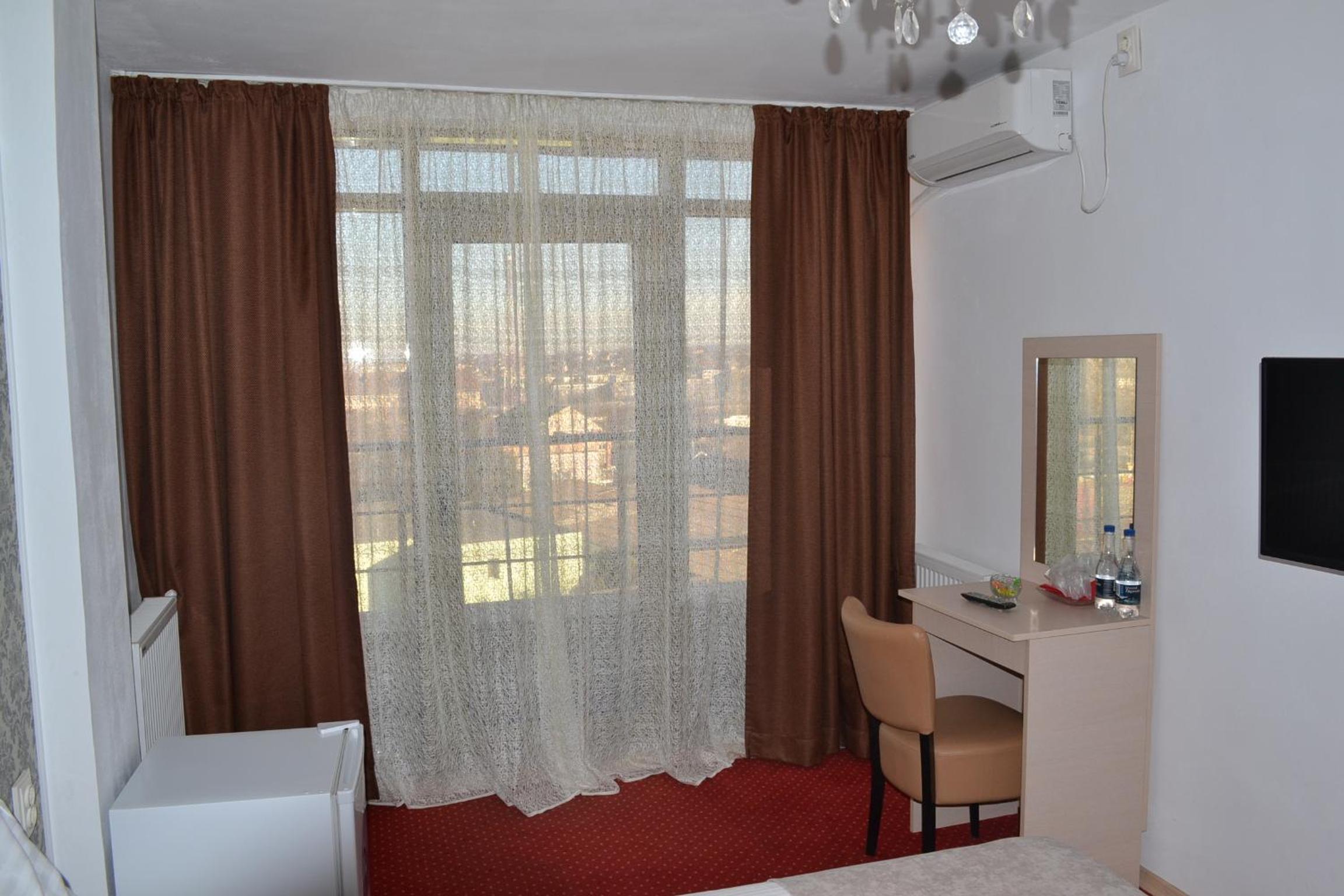 Camera călduroasă cu vedere la oraș cu toate dotările noi, calitatea serviciilor și condițiilor de cazare foarte bune la un raport optim preț calitate.
