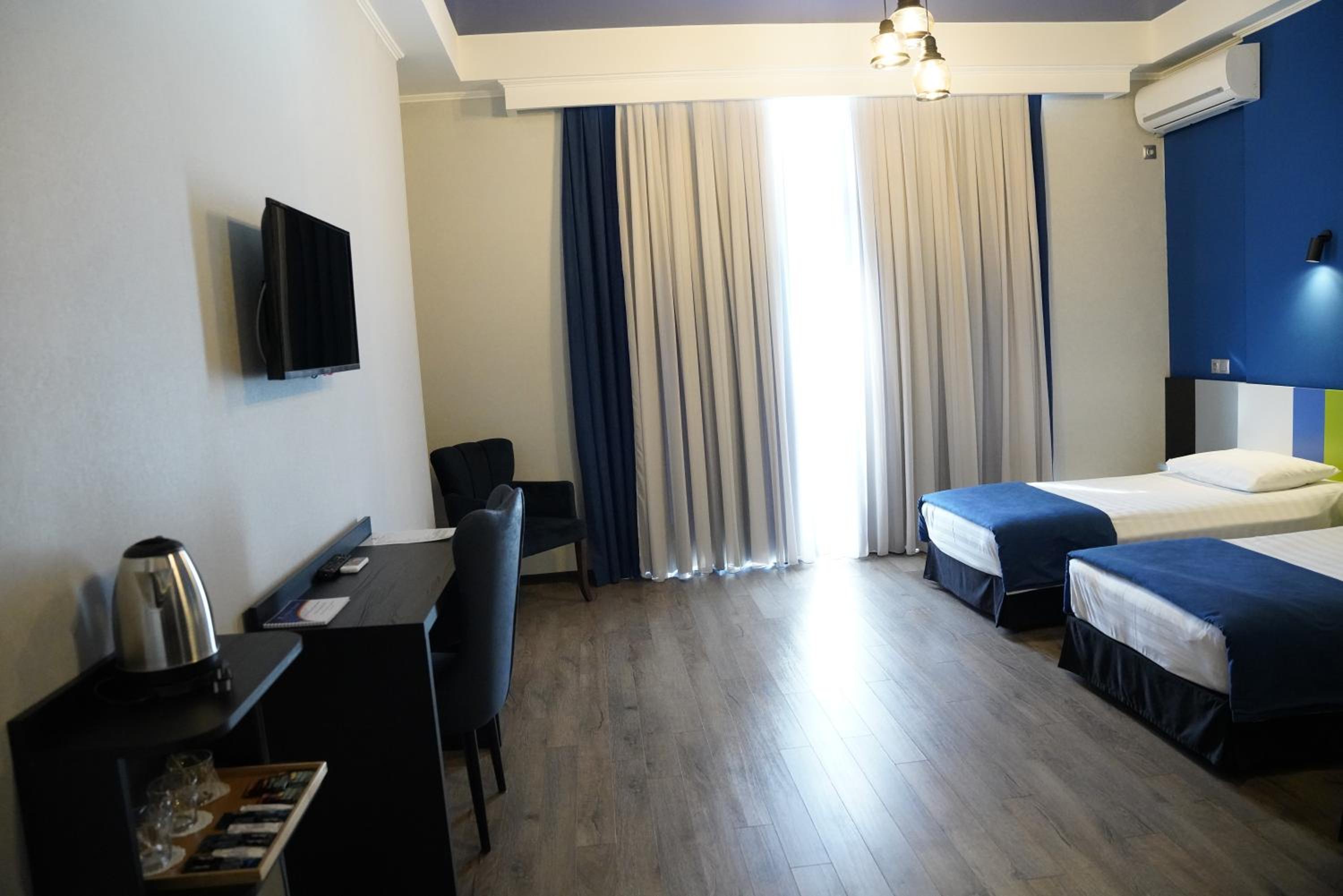 Hotel Panoramic, a 4-star hotel in Kutaisi, offers air-conditioned rooms with modern amenities like a flat-screen TV, minibar, and private bathroom. Enjoy a comfortable stay with room service and a 24-hour front desk at your service.