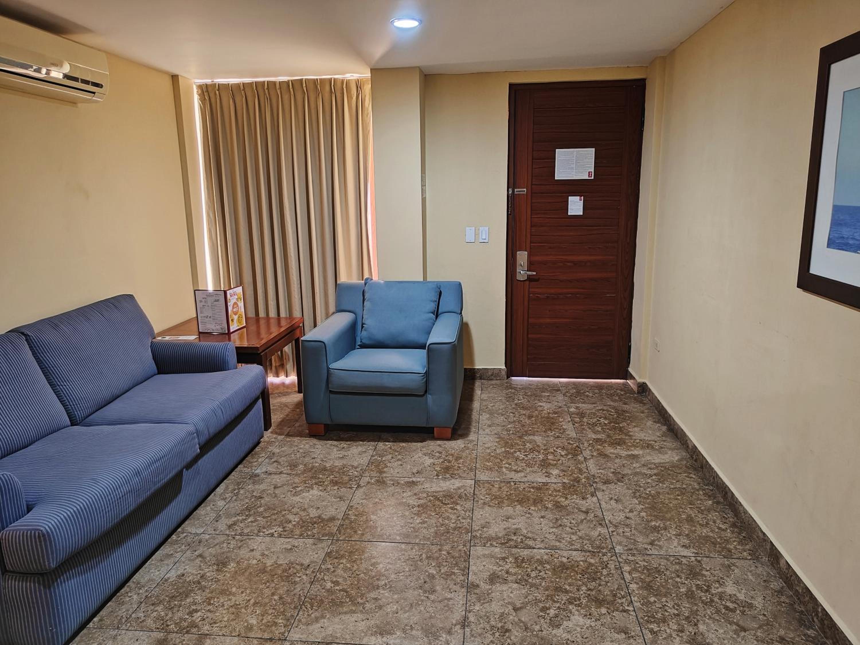 Service was excellent. Room was ready for us. Everything worked in the room, except the bathroom fan was pretty noisy like parts were loose. Beds and lighting were adequate. Very close to the Malecón and museums. Free breakfast was good.