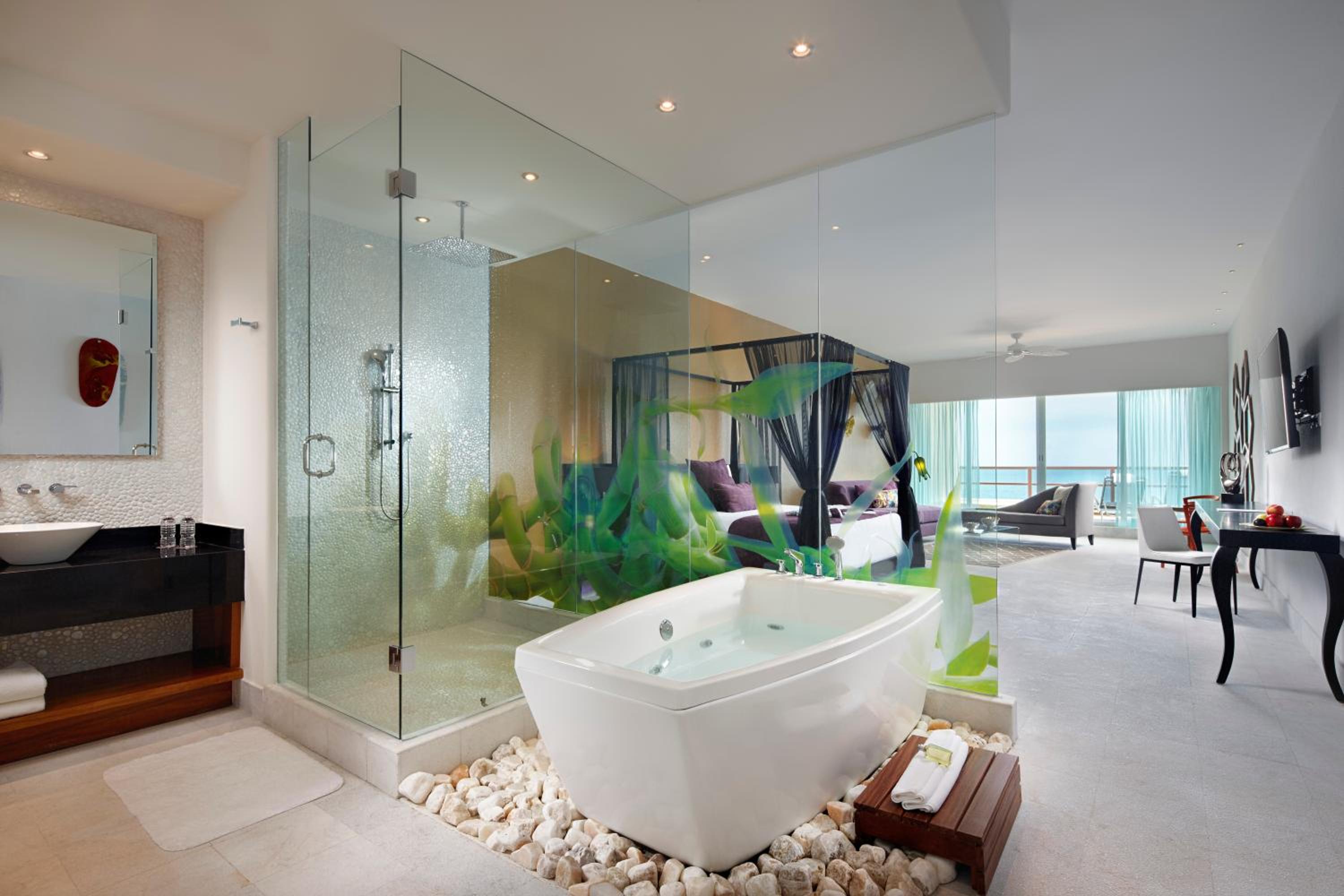 Senses Riviera Maya by Artisan - Optional All inclusive-Adults only offers air-conditioned rooms with modern amenities, sea views, and private balconies. Guests can enjoy a comfortable stay with a flat-screen TV, minibar, and a private bathroom with a shower.