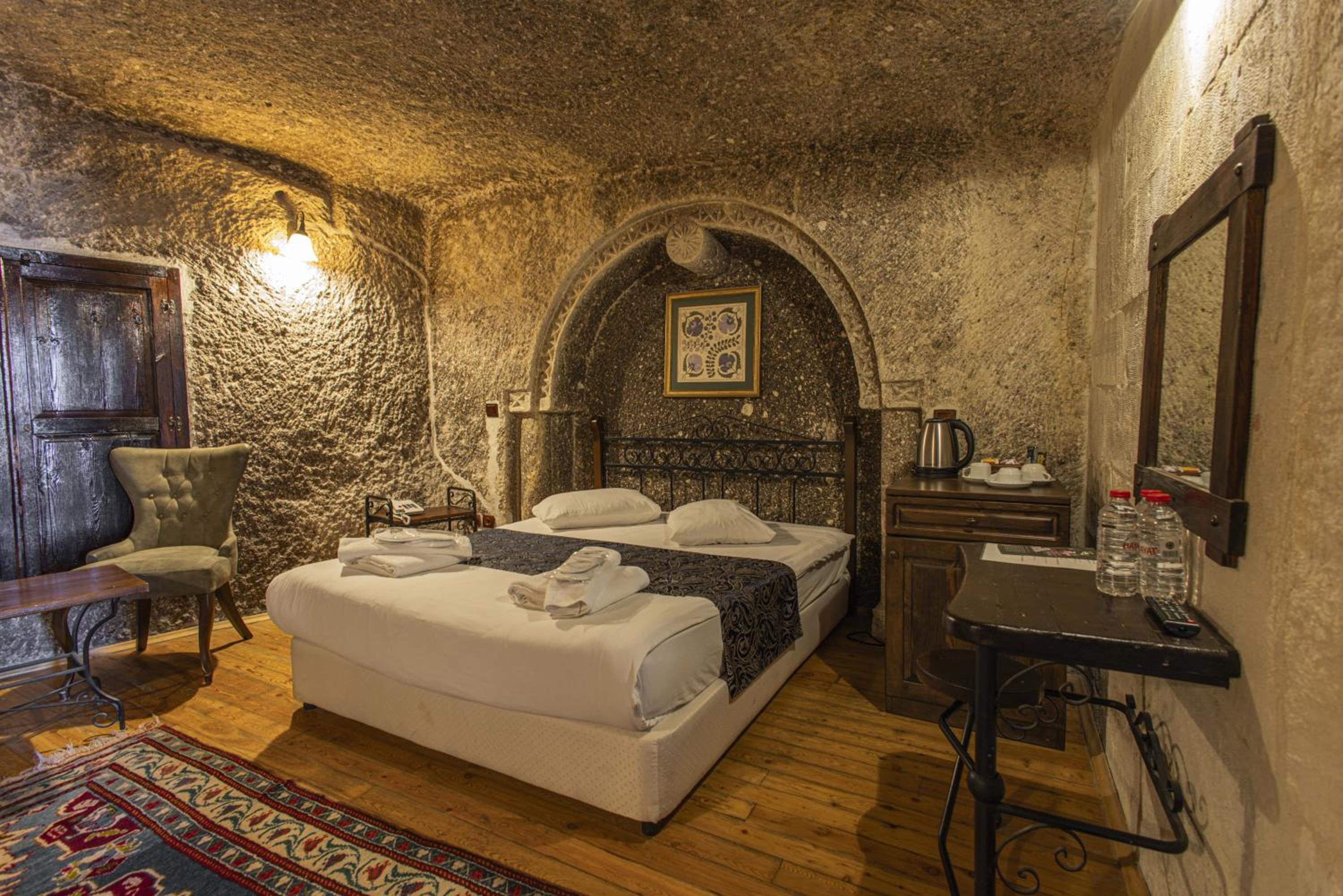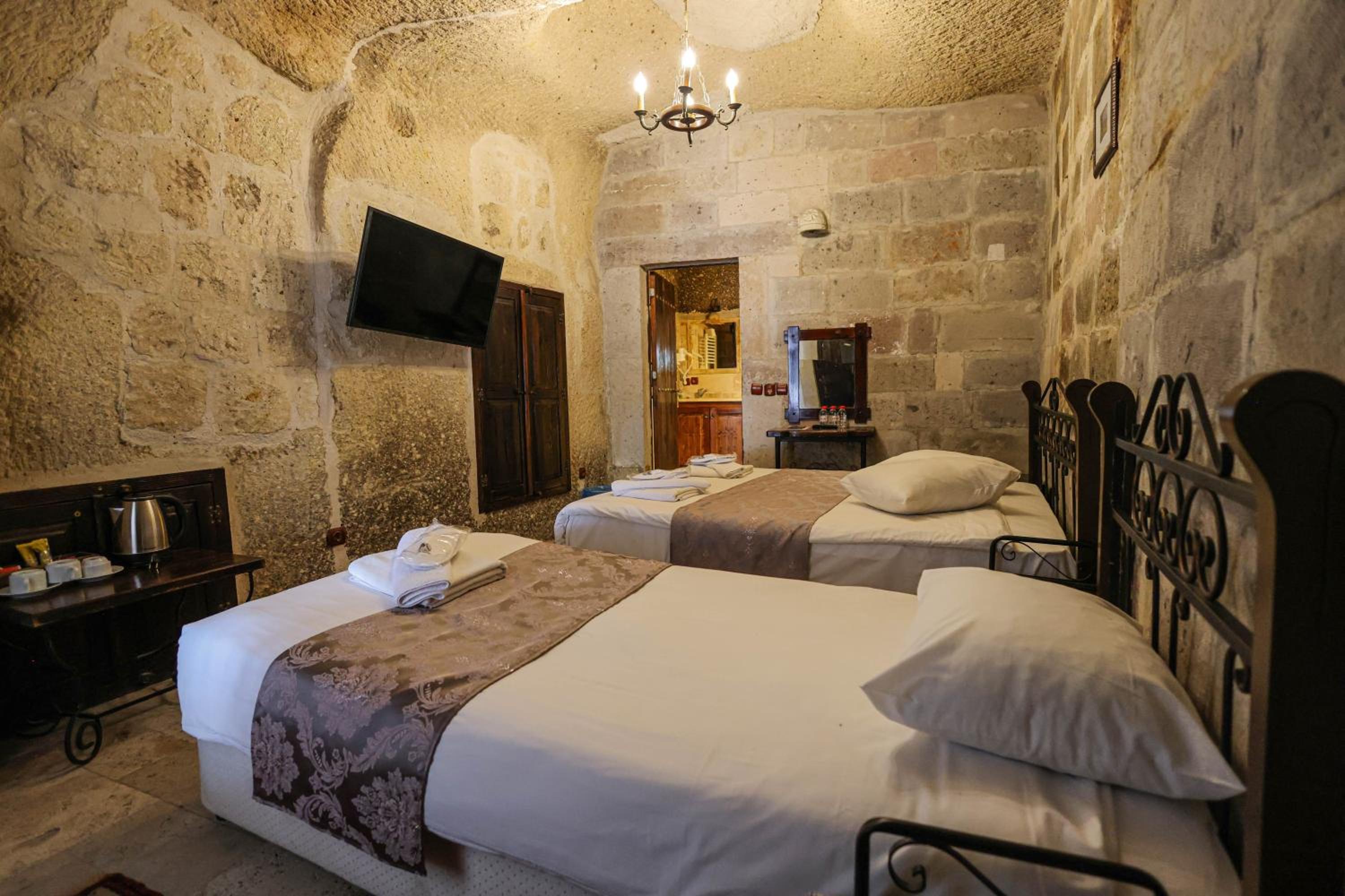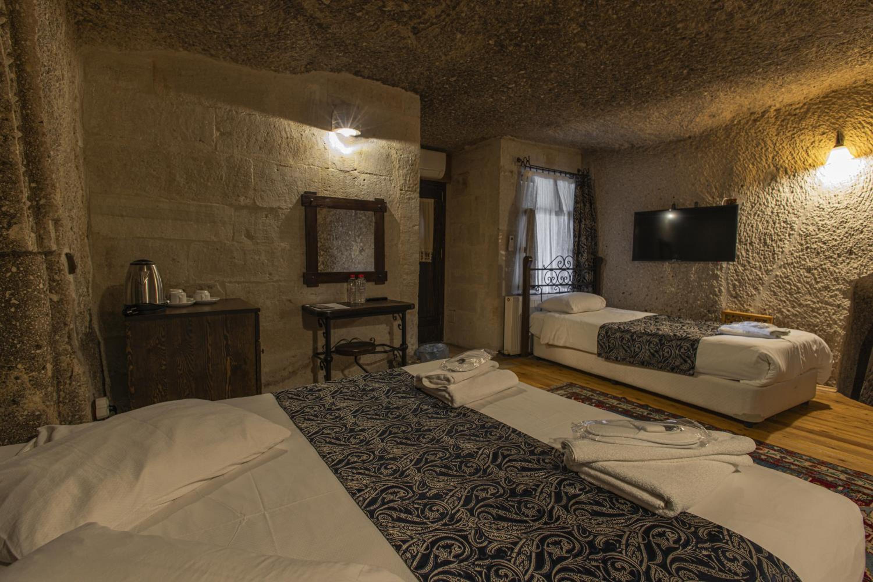 동굴의 분위기가 낭낭하고 저녁에 조명 켜면 분위기가 예쁨. 방 컨디션도 괜찮아서 여유있게 즐김. 여러 투어 예약이 가능하고, 벌룬 같은 경우 체크인하면서 예약해도 충분하고 날씨상 취소되면 바로 현금으로 돌려줌.