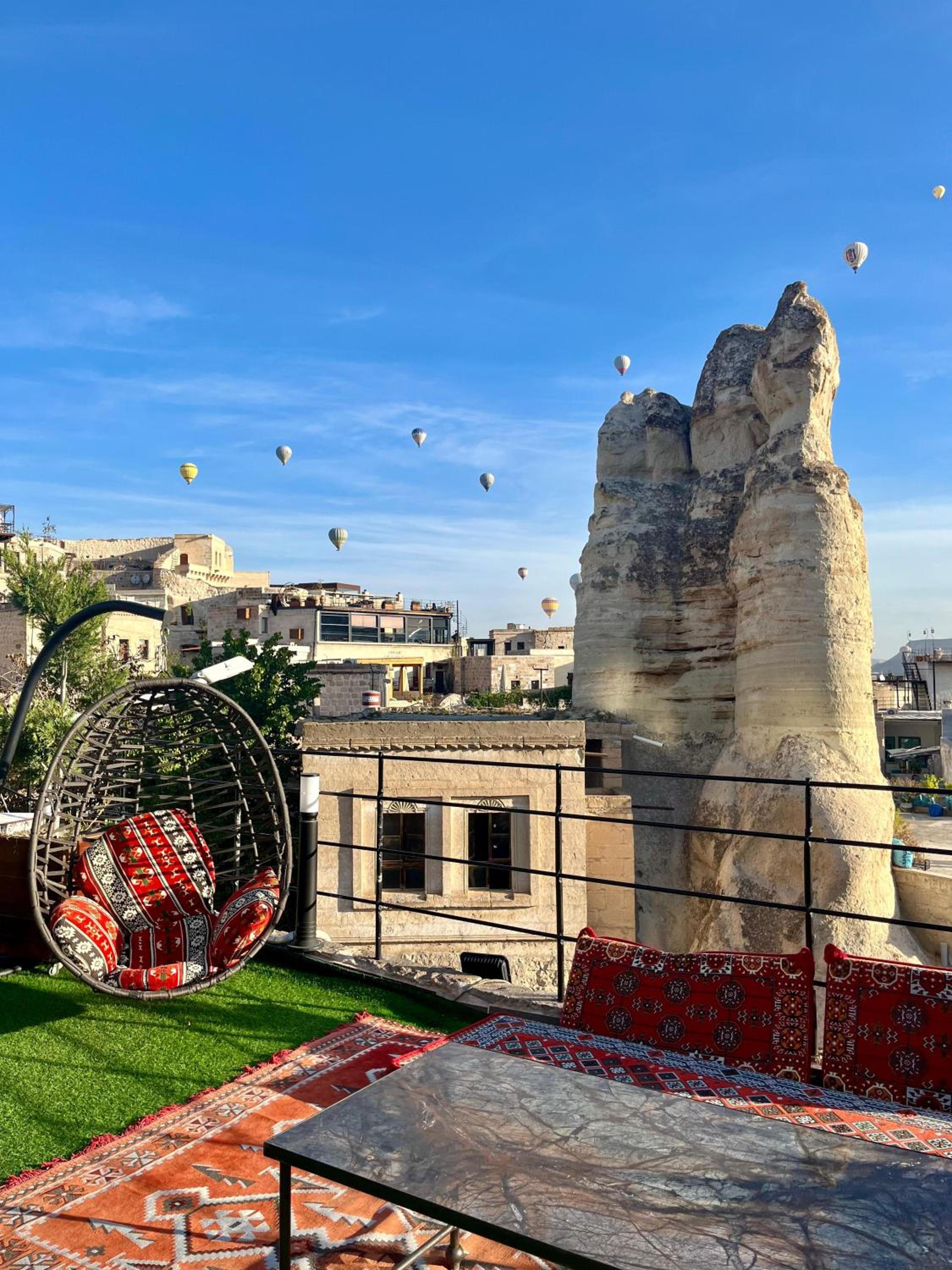 The room was very warm and cozy. The hotel itself had its own whimsical charm. All the necessary amenities were present, like soap, towels, hairdryers etc. The staff was friendly and welcoming, they helped us to book the balloon ride and other excursions. You can also observe the balloons from the rooftop. Right there you can also have breakfast. It was quite nice for the price, with a big range of options. A nice option for its price 👍🏻