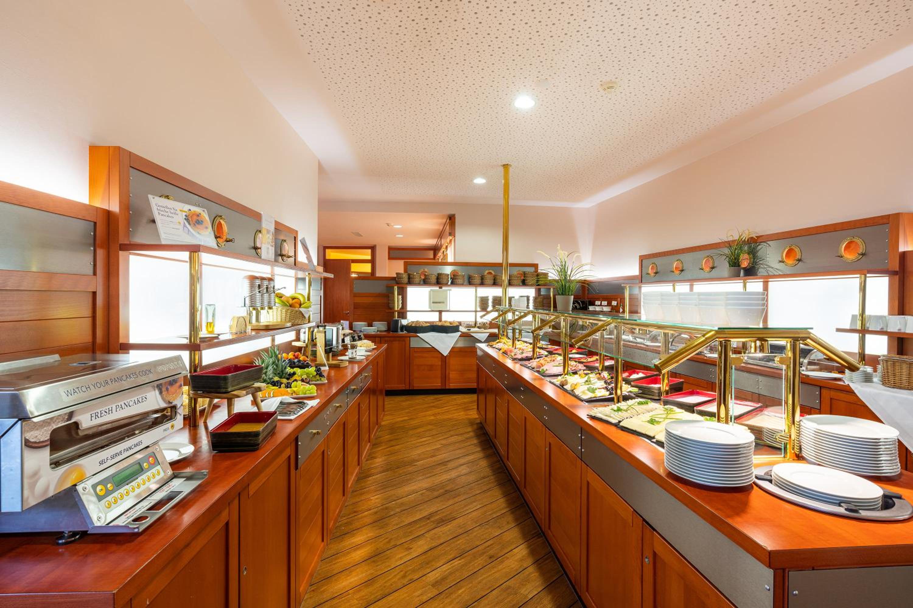 Savor a delectable array of dishes at the international restaurant, offering fresh seafood, Mediterranean flavors, and classic German cuisine paired with fine wines and regional products.