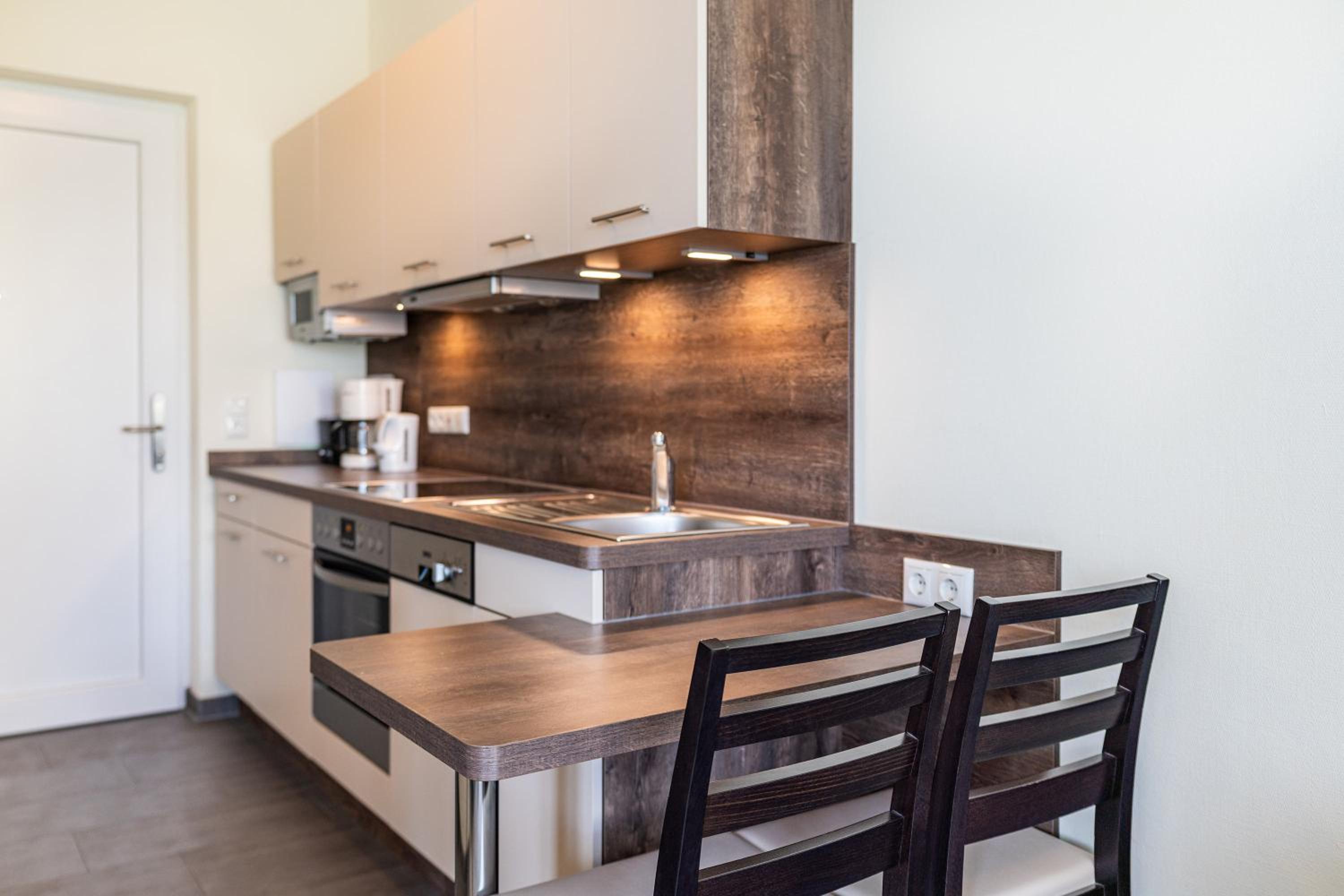Wir hatten ein Appartement für einen Kurzurlaub im Februar gebucht. Also ein Zimmer mit Küchenzeile. Das Zimmer an sich war geräumig. Die Küche ist mit dem Allernötigsten ausgestattet. Das Frühstück war ausreichend und es wurde auch regelmäßig aufgefüllt.
