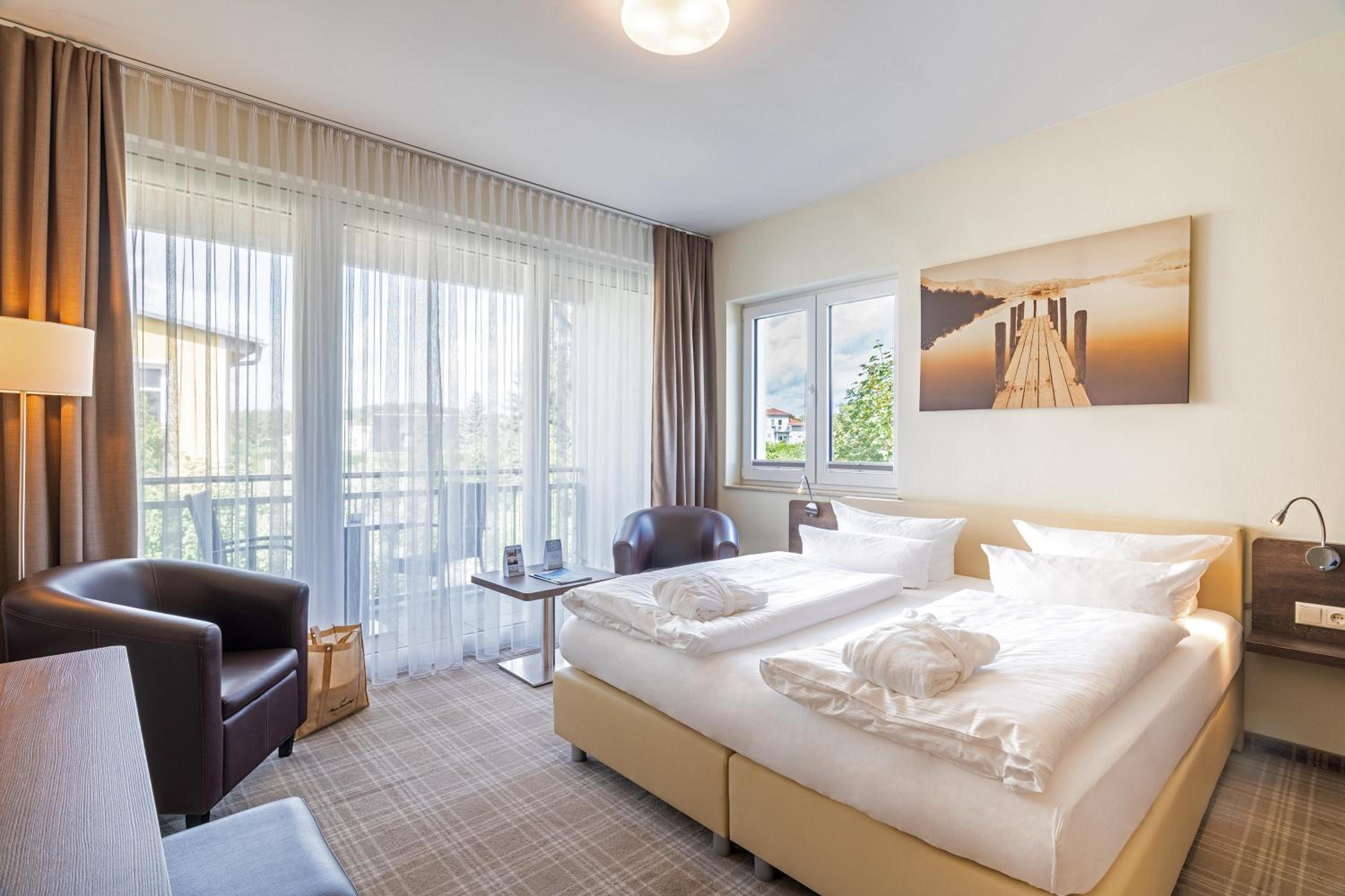 Experience comfort in elegant rooms and suites equipped with modern amenities, just a short walk from the sandy beach and close to Koserow Train Station for convenient travel options.