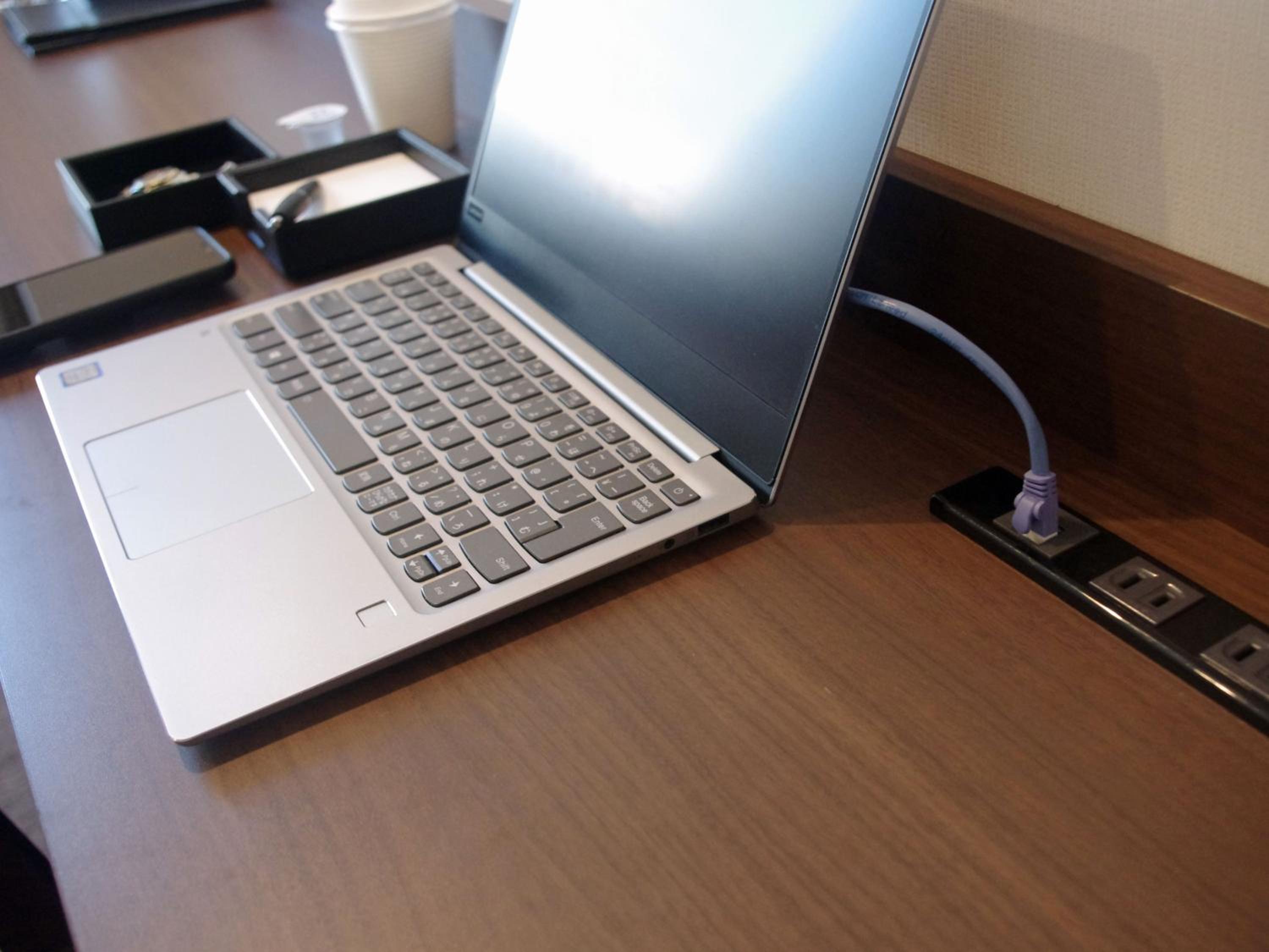 WiFiが早いのと、有線LANのケーブルも部屋に置いてあってすごく高速でした。