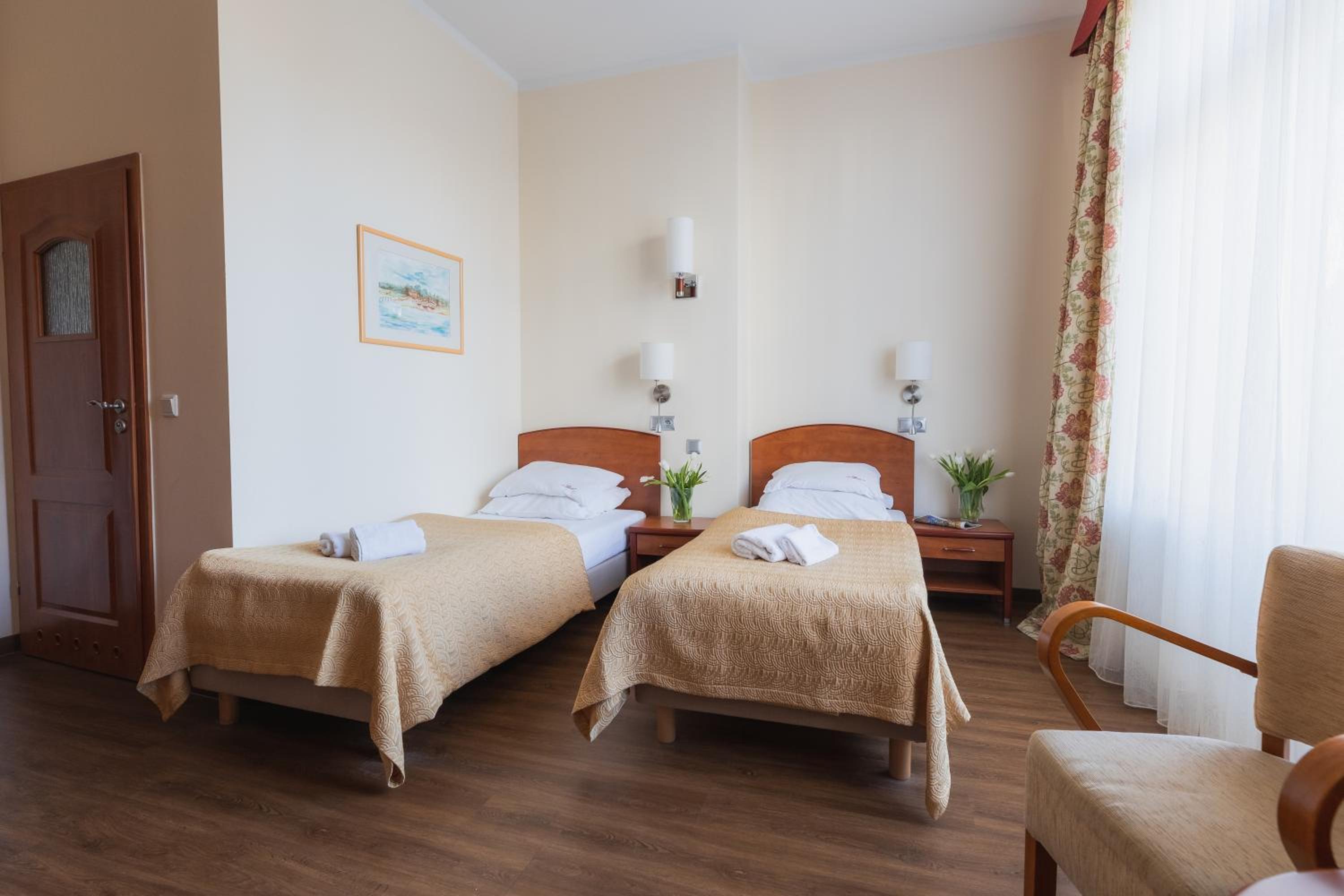 Hotel Villa Herkules, located just 300 meters from the beach in Świnoujście, offers a cozy atmosphere and a wellness center for therapeutic treatments. The en suite rooms are elegantly decorated, equipped with smart TVs, and free internet access for your convenience.