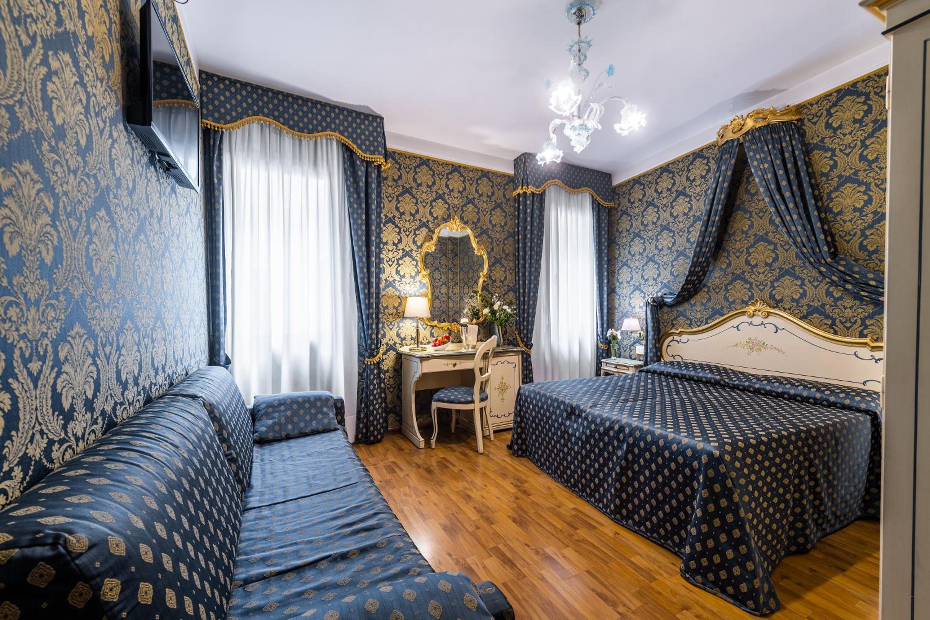 Elegant Rooms: Featuring Baroque furniture, Murano-glass lamps, free Wi-Fi, air conditioning, and satellite TV, the rooms blend historic charm with modern amenities.