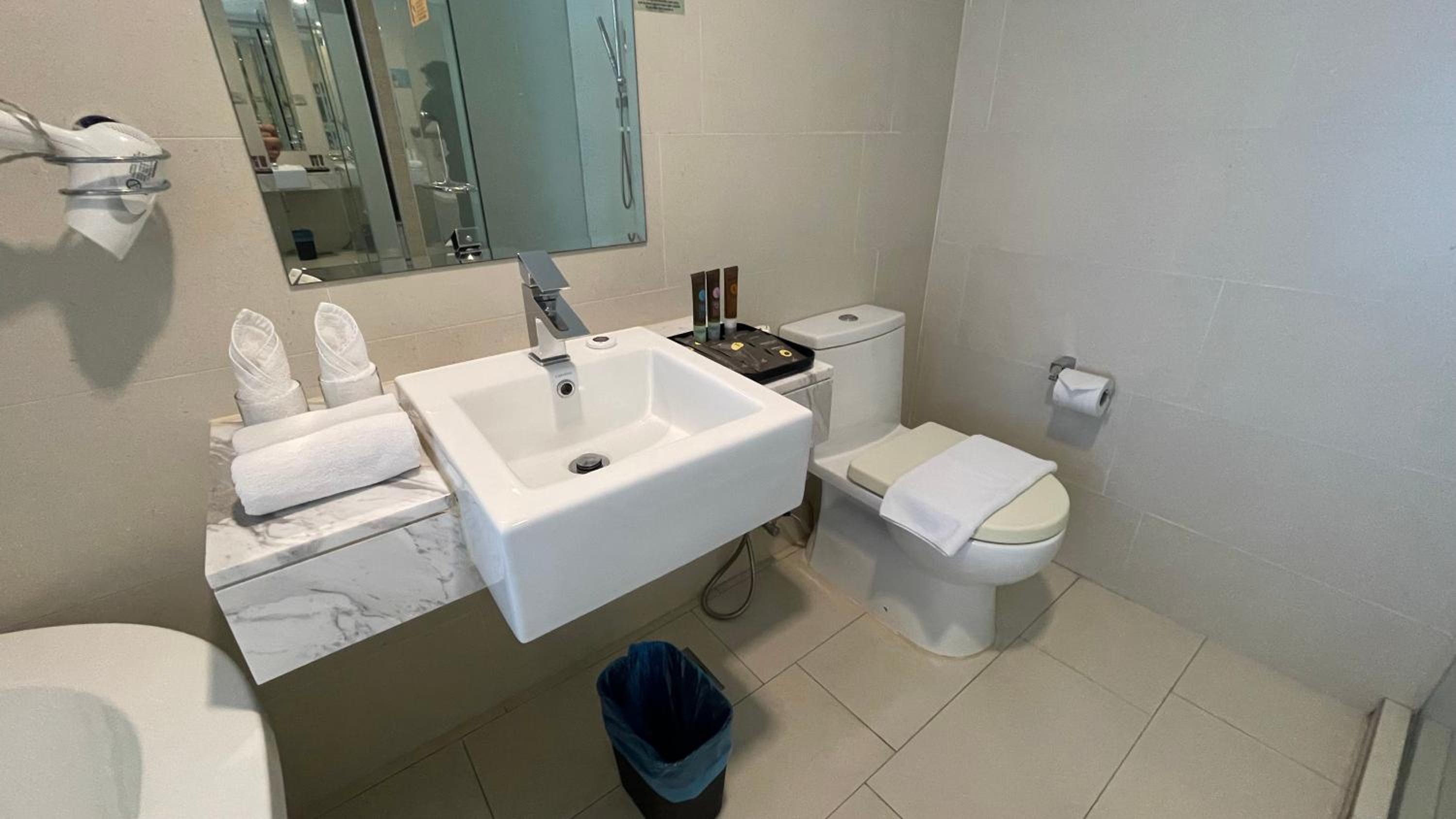 Very dated. Water pressure is very weak. Didn’t like it. Old and dated. TV channels are all local and in malay. No English or international channels or Netflix or YouTube.