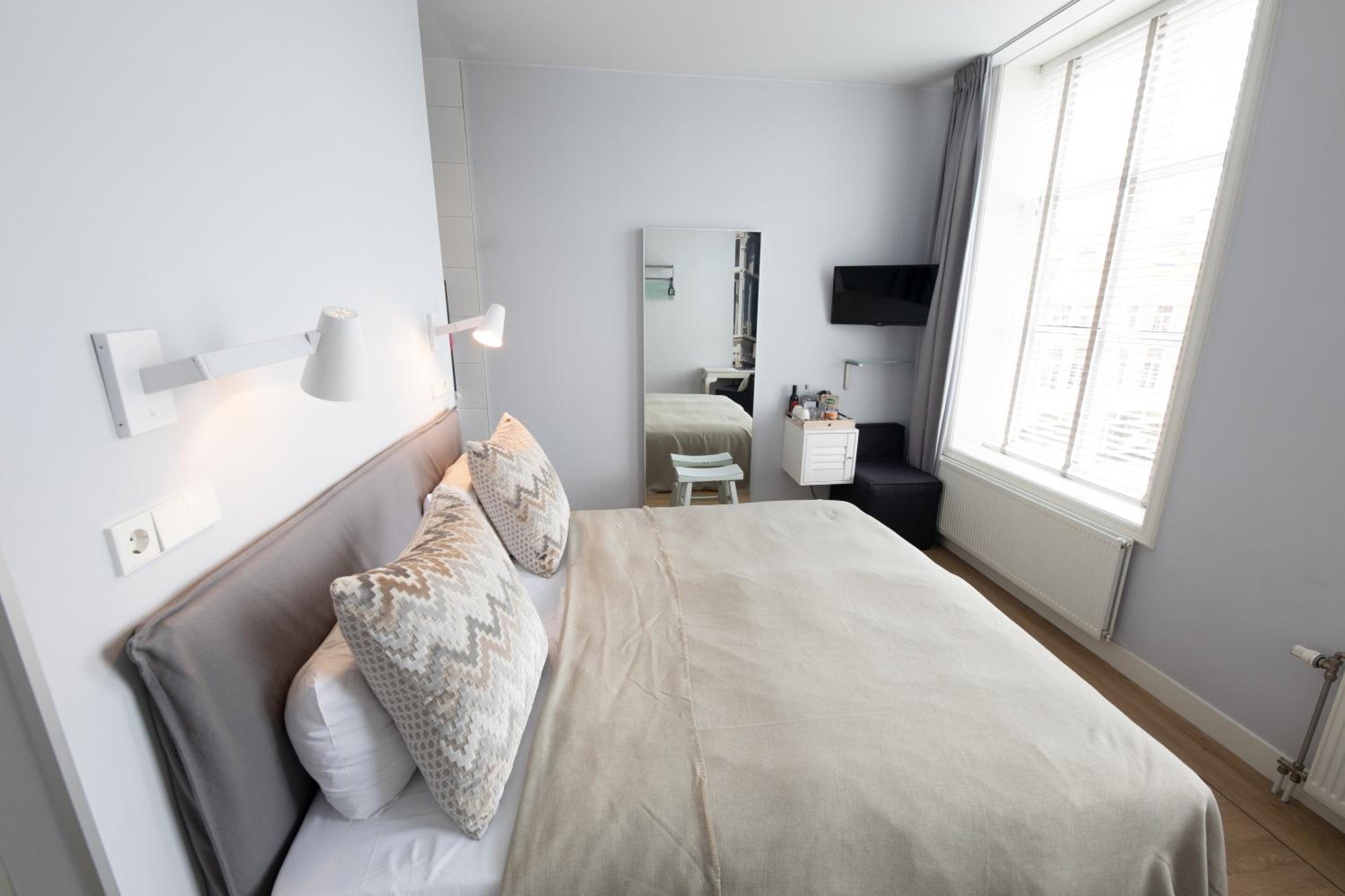 Good location, well positioned for many things especially the Museums. Super, clean and elegant room, warm and cosy with superior shower and toilets facilities that were well designed. Excellent free coffee 24 hours and good breakfast. Very pleasant staff. The hotel is in a nice 'village like' neighbourhood with an Albert Heijn and a few restaurants and snack shops within 2 minutes walk. I would recommend Zot a fantastic Fish restaurant with great fish n chips (I'm a Brit ex pat so I'm qualified to judge!) for a very reasonable price. Usual friendly Dutch welcome!