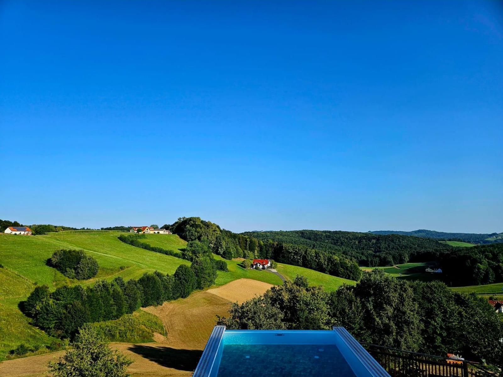 Piscina con acqua calda grande con vista panoramica.