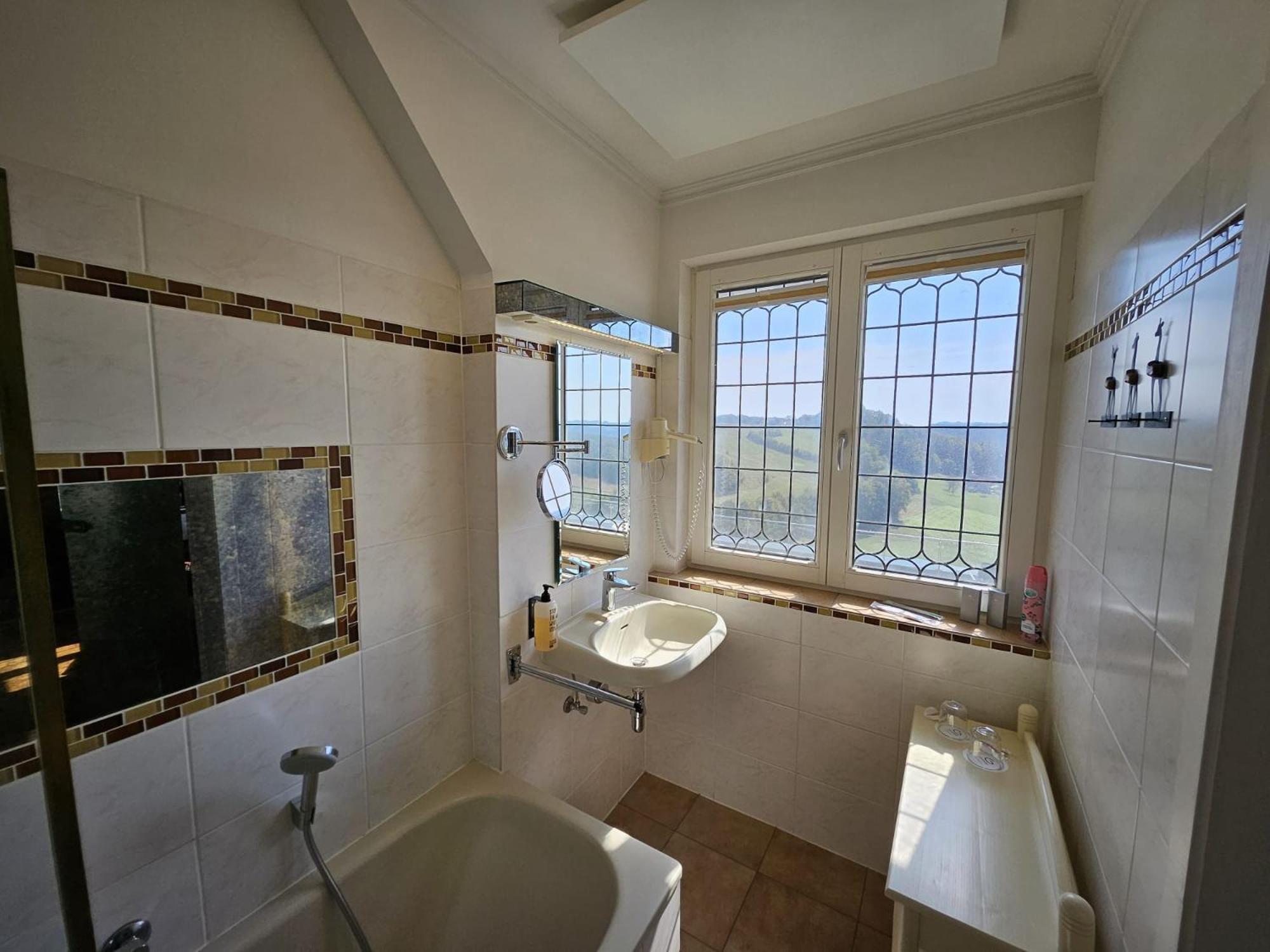 Eiin außergewöhnliches Gästehaus, was sehr viel zu bieten hat. Die Zimmer sind mit sehr viel Liebe eingerichtet. Man fühlt sich sofort sehr wohl. Das Personal ist sehr nett und zuvorkommend. Es ist sehr sauber. Auch für Hunde gibt es im Garten eine schöne Hundezone, welche sehr gepflegt ist und der kleine Liebling ist dort gut aufgehoben, während man das beheizte Pool genießt oder auf der Sonnenterasse die Seele baumeln lässt. Das angebotene Frühstück ist auch sehr reichhaltig und liebevoll angerichtet