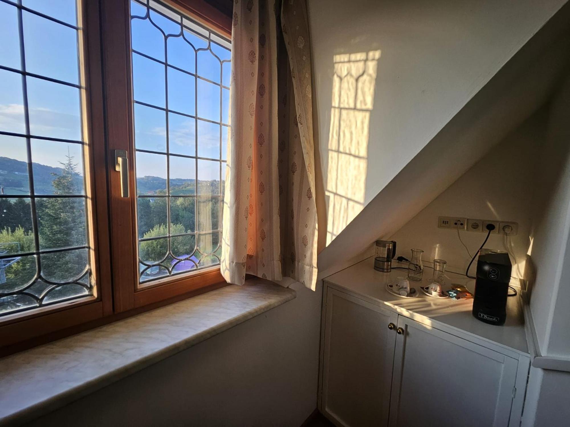 Das Hotel hat eine ruhige Lage. Es ist ein nettes kleines Hotel. Mein Zimmer war klein hatte alles was man braucht mit freundlichen Ambiente. Kaffee und Wassekocher im Zimmer. Ich habe mich als allein Reisende sehr wohlgefühlt.