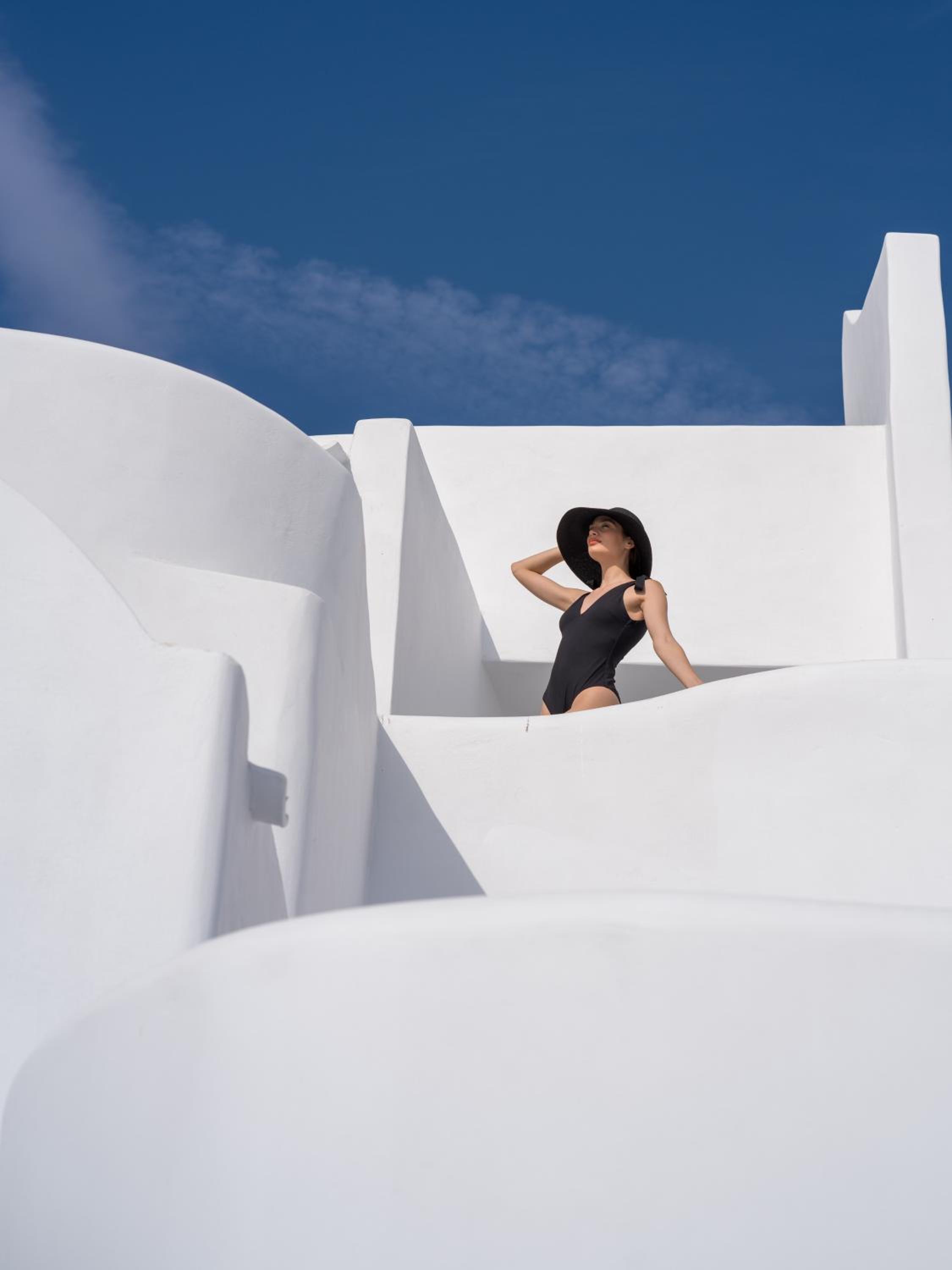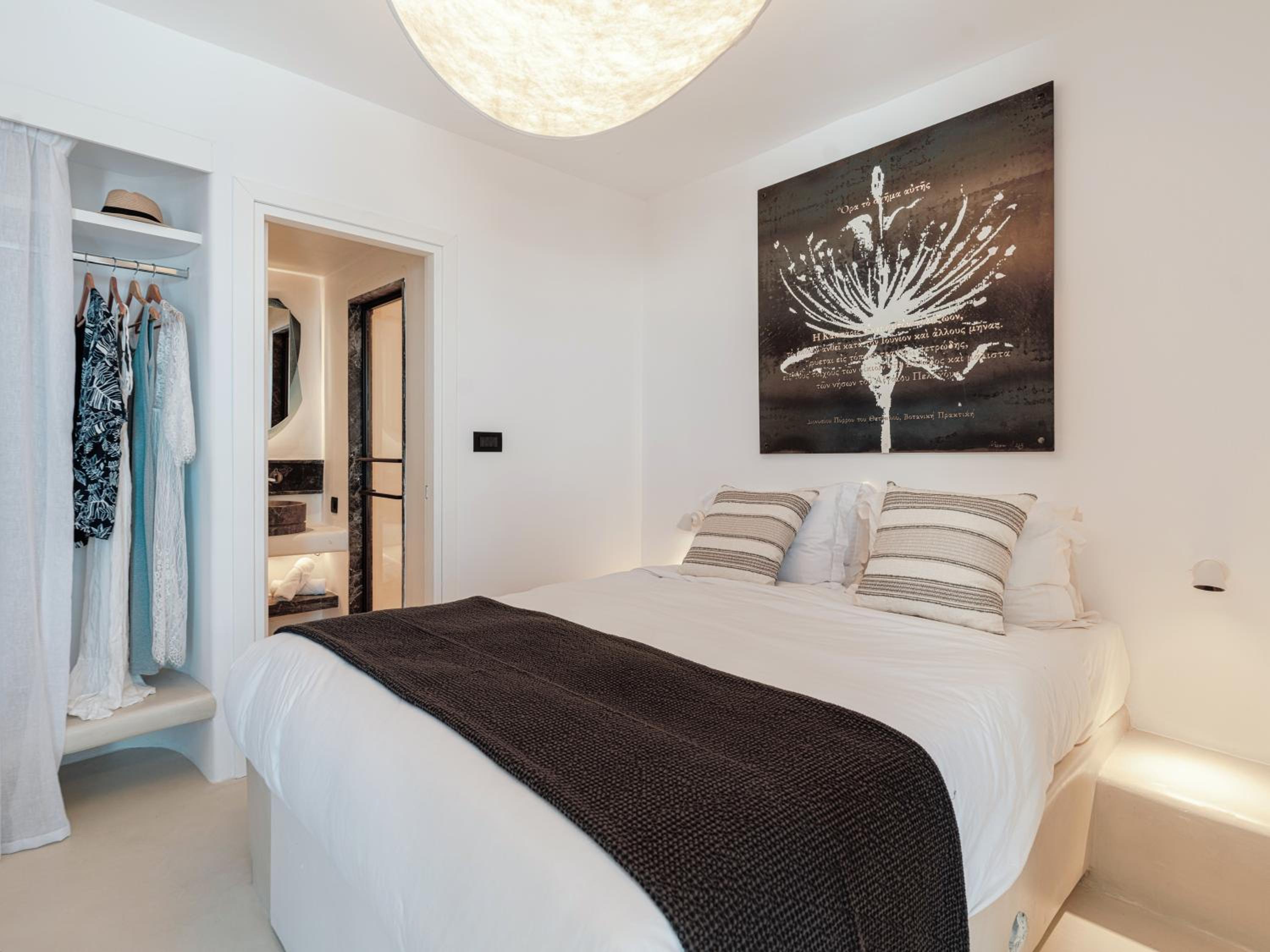 Each house at IKIES seamlessly blends traditional white-washed roofs with modern amenities, ensuring a comfortable and luxurious stay.
