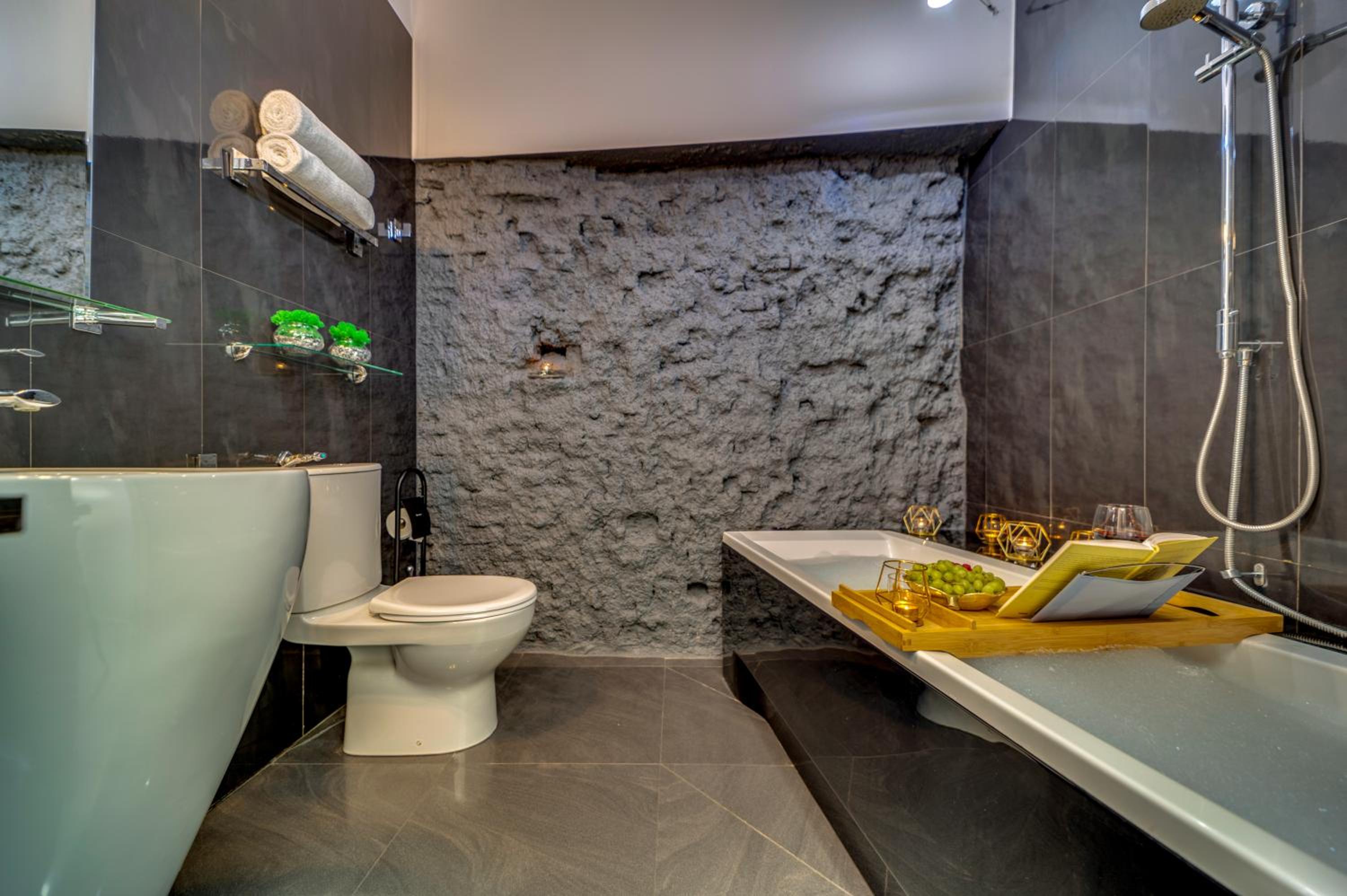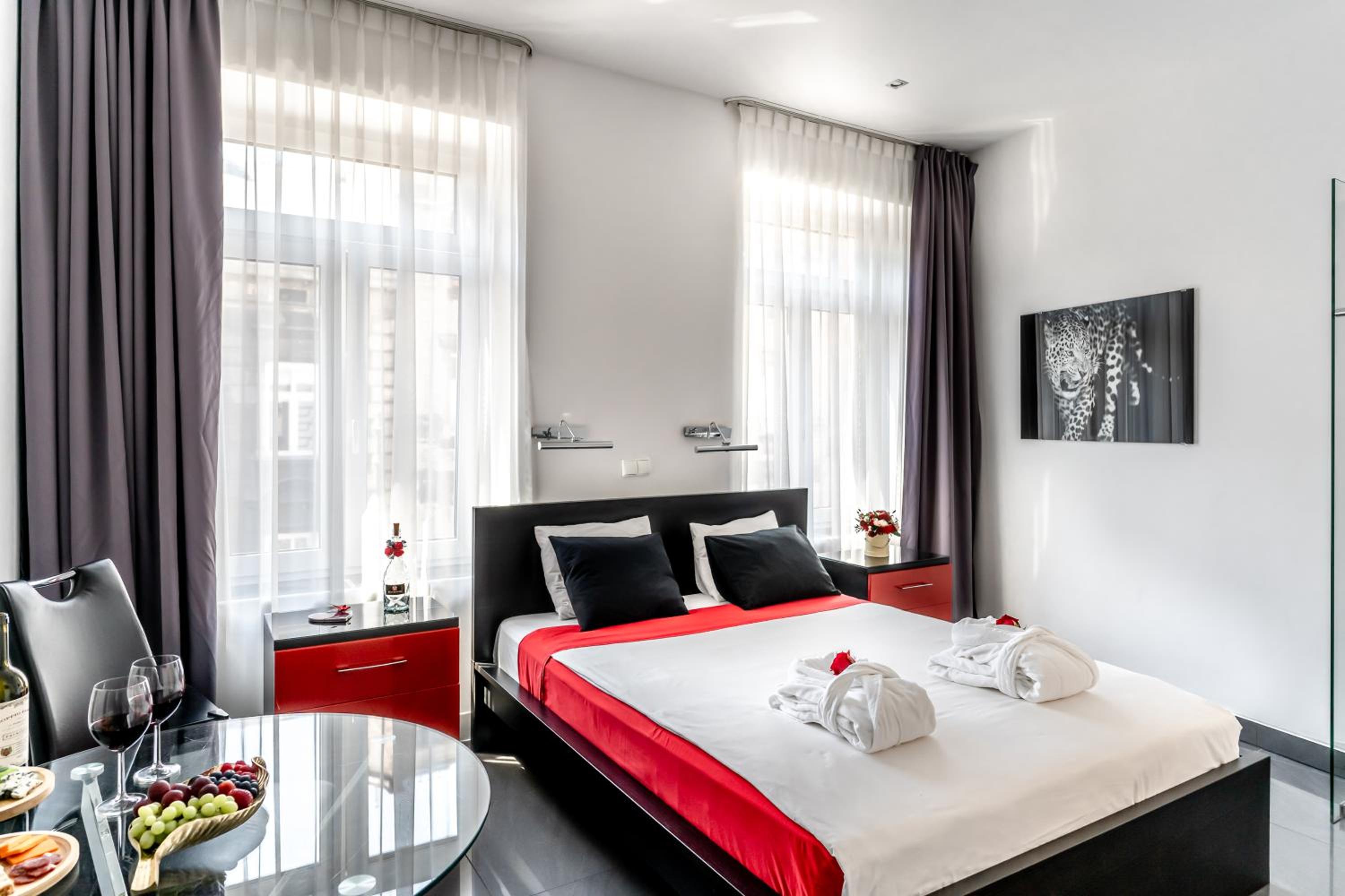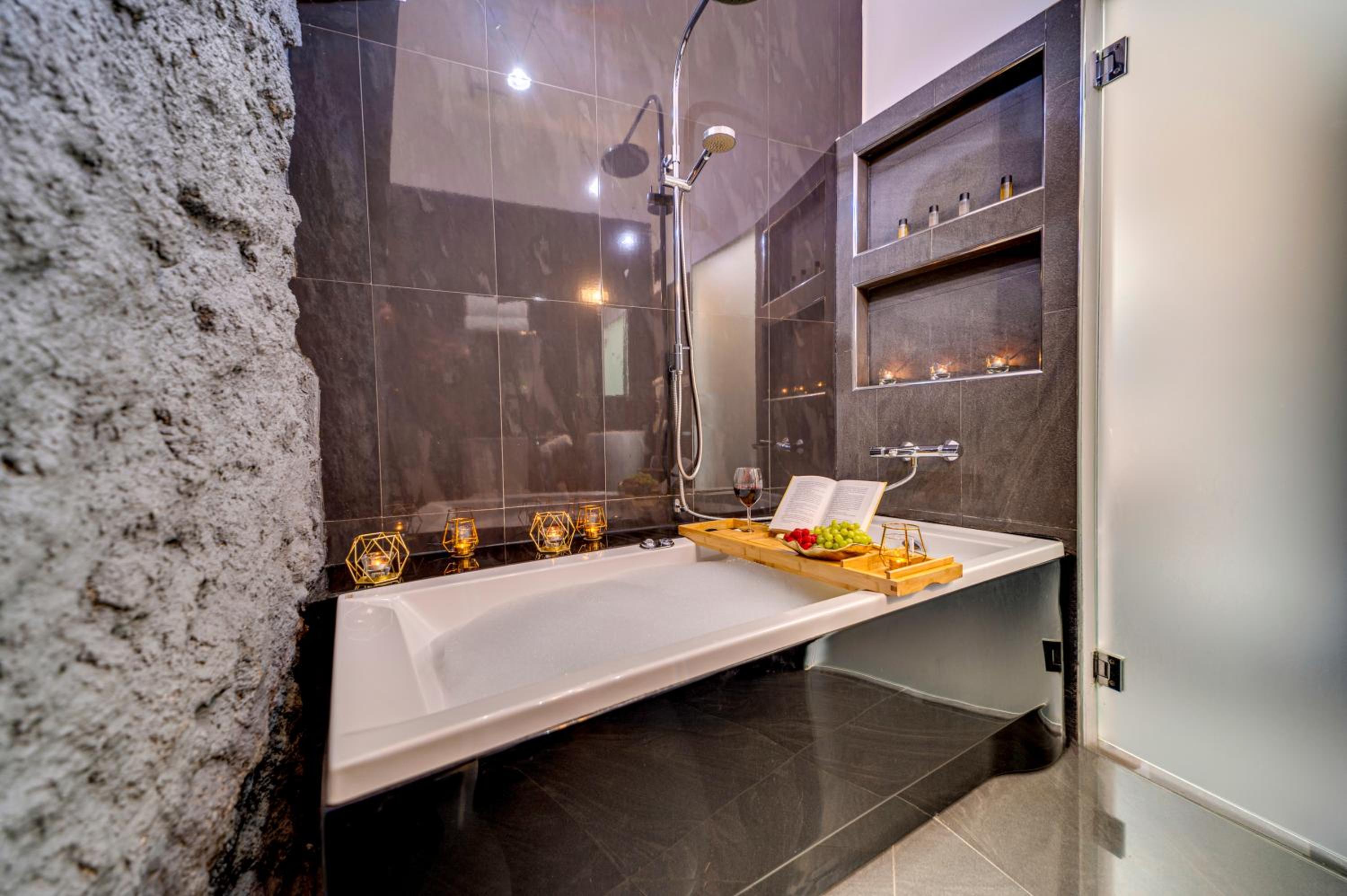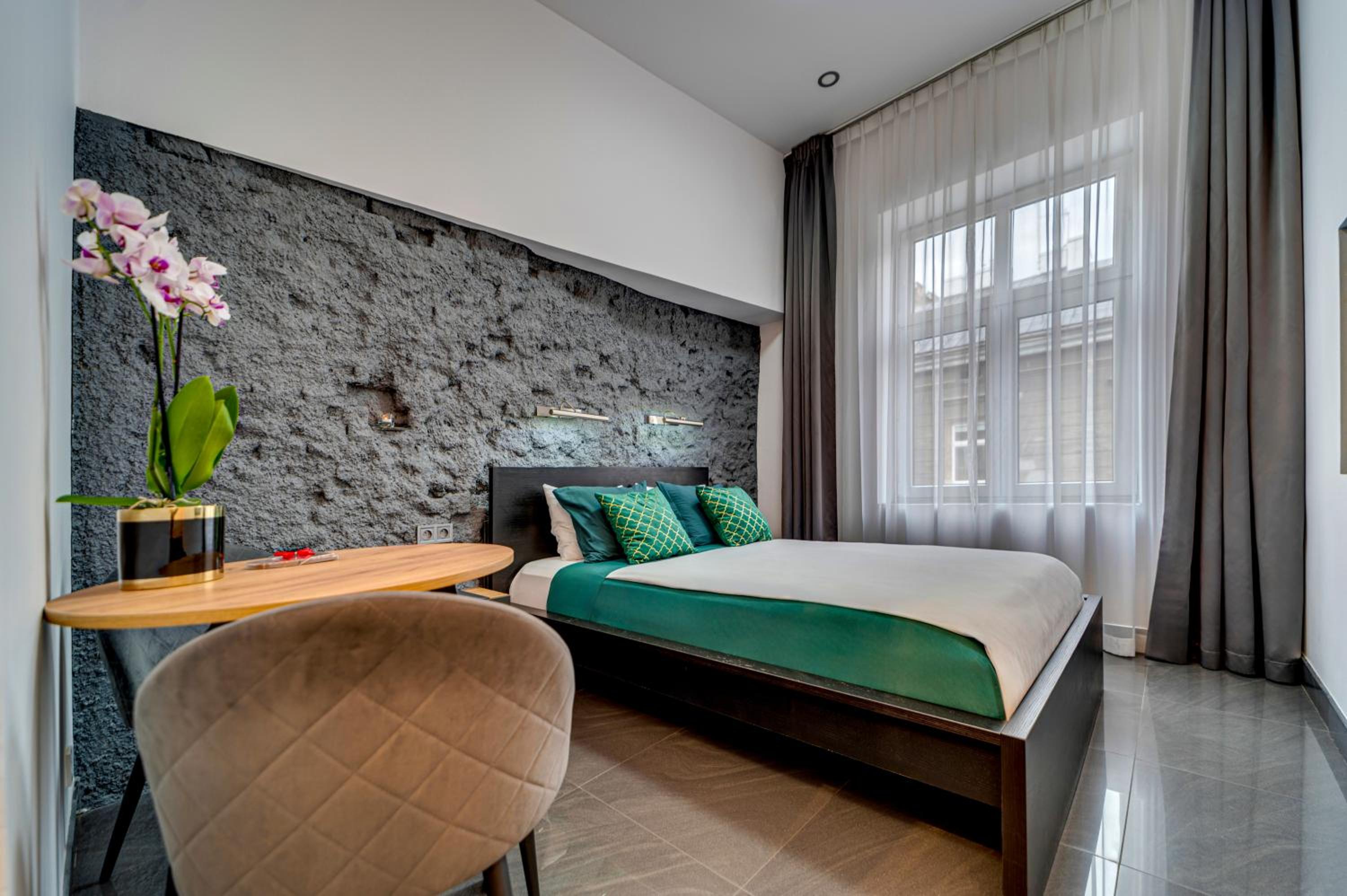 Art Deco Style Rooms: Experience luxury in every detail with spa baths, air conditioning, and free Wi-Fi in our elegantly furnished rooms featuring heated stone floors and 40-inch LCD TVs.