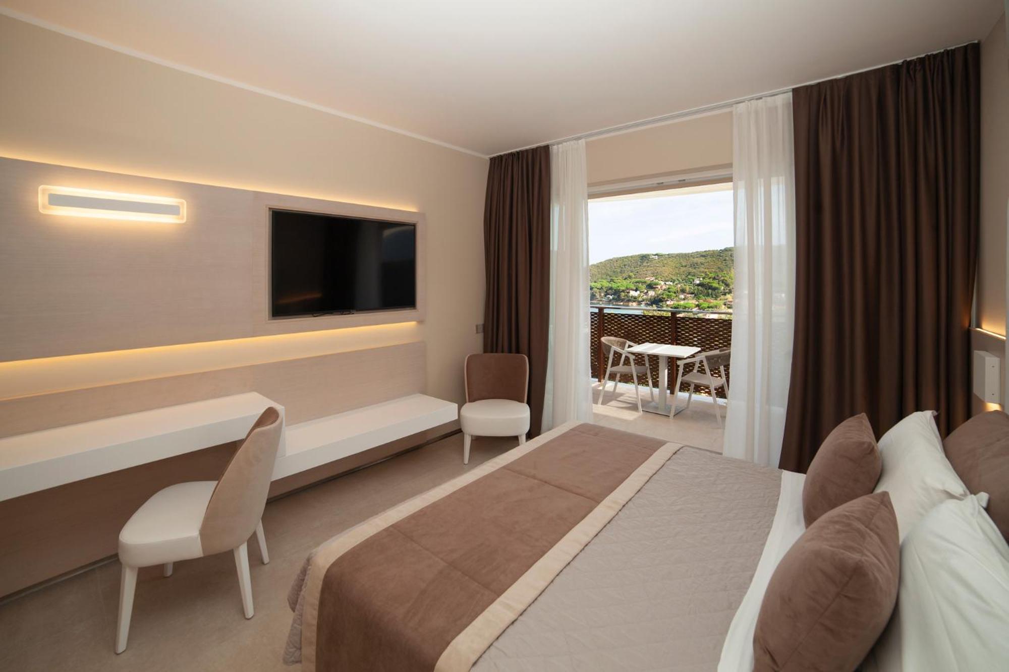 Hanno effettuato un upgrade gratuito assegnandoci una camera vista mare laterale con una bellissima vista sul golfo di Procchio, la camera era molto spaziosa e le pulizie venivano effettuate giornalmente.