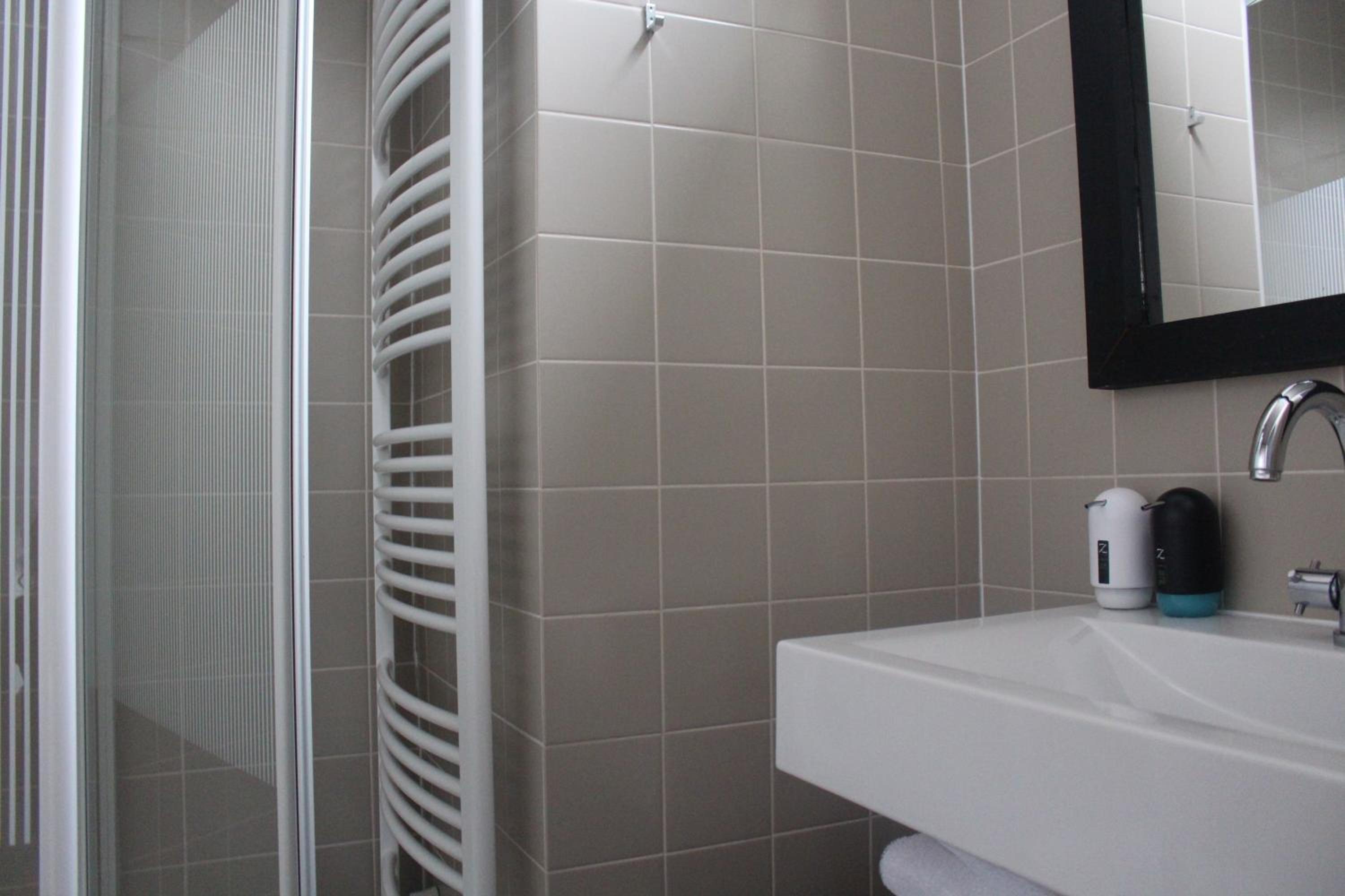 De badkamer was heel ruim maar geen plaats om toiletartikelen te plaatsen alsook onder de douche was er niks voorzien om douchegerief te plaatsen. Zeer dunne muren waardoor we het gevoel kregen dat de buren bij ons binnen zaten.