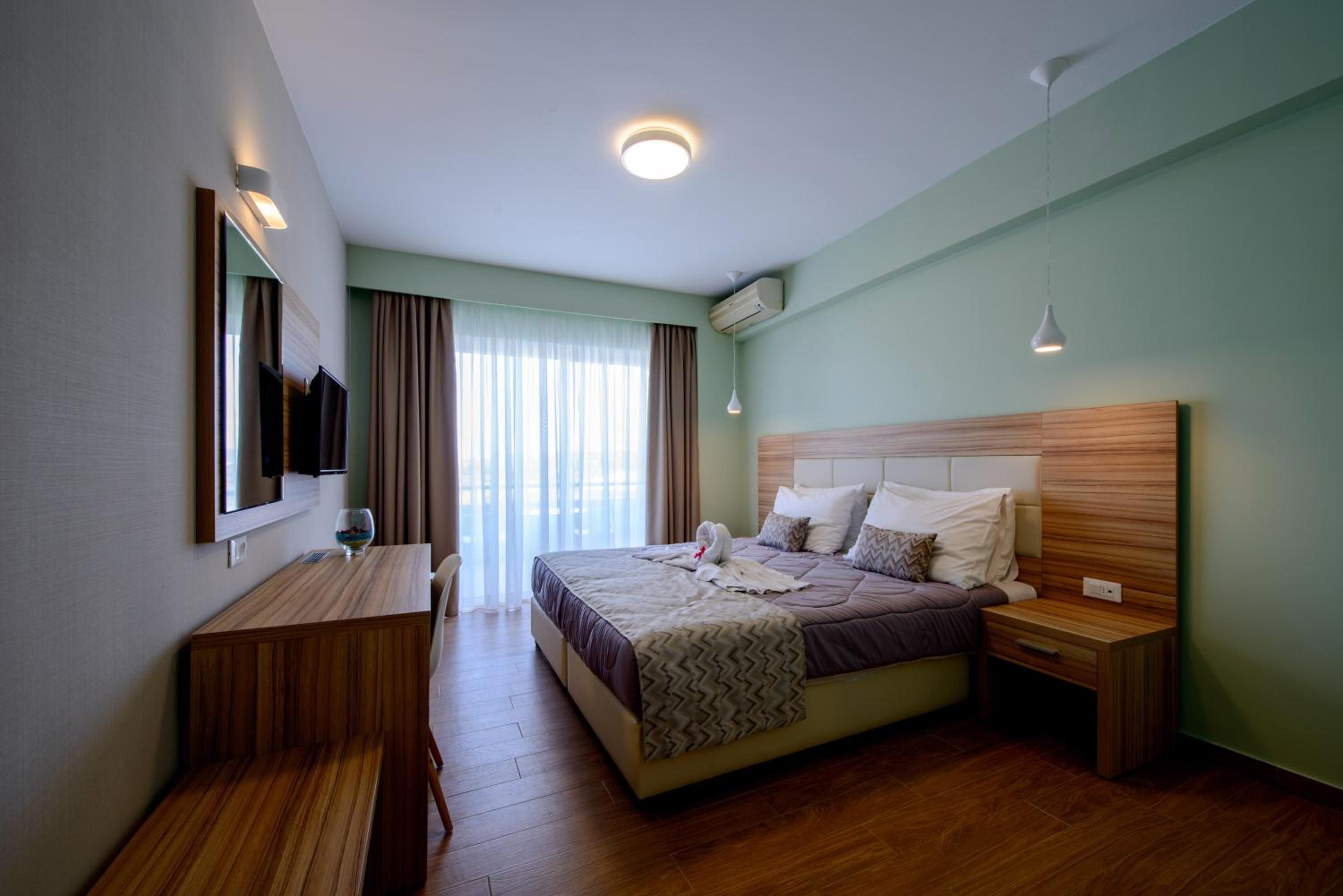 Choose from a selection of air-conditioned rooms, studios, and apartments, each featuring a private balcony with views of the pool, garden, or the stunning Aegean Sea. Enjoy modern amenities including satellite TV and a fridge for your convenience.
