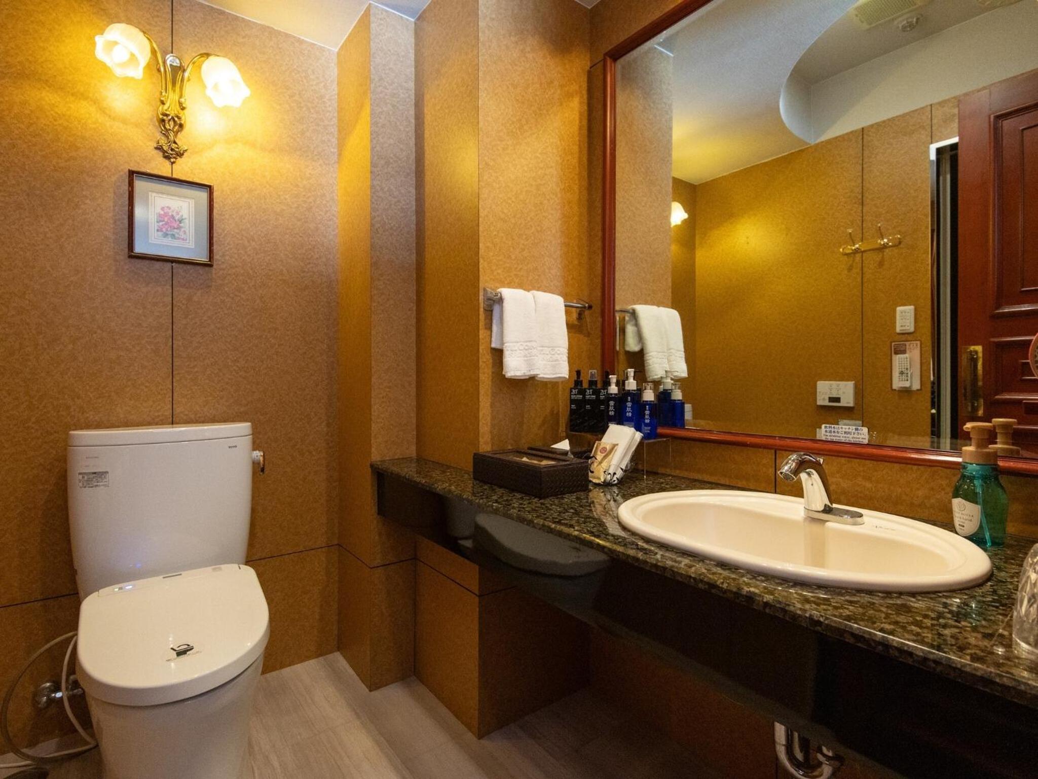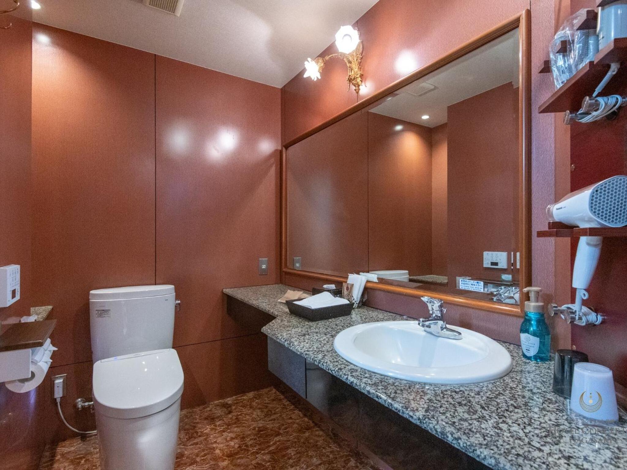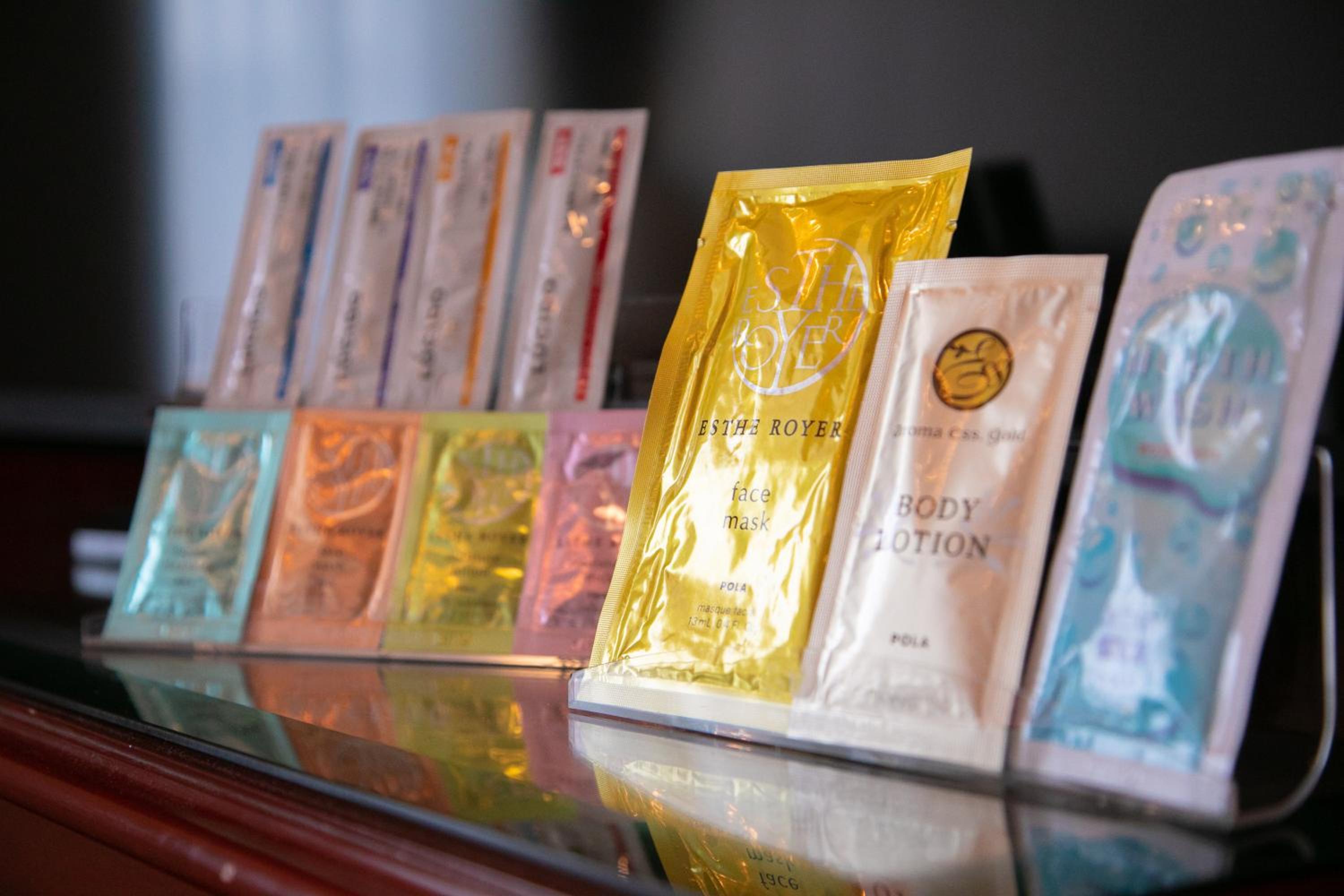 アメニティが豊富に揃っていて、ドライヤーやクルクルドライヤーなどもあり、お水のサービスも良い。