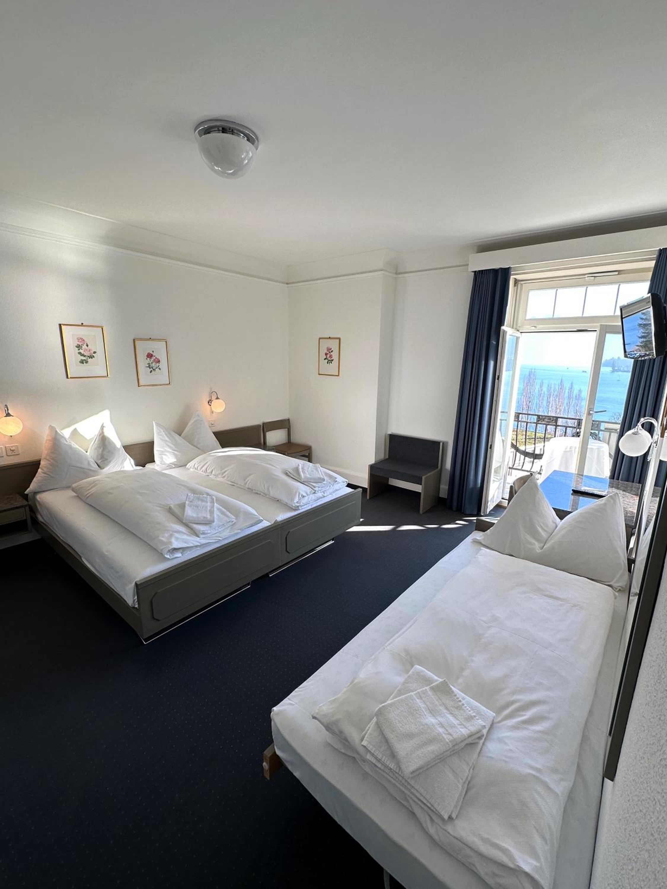 Das Zimmer mit Balkon hat eine tolle Aussicht auf den See.