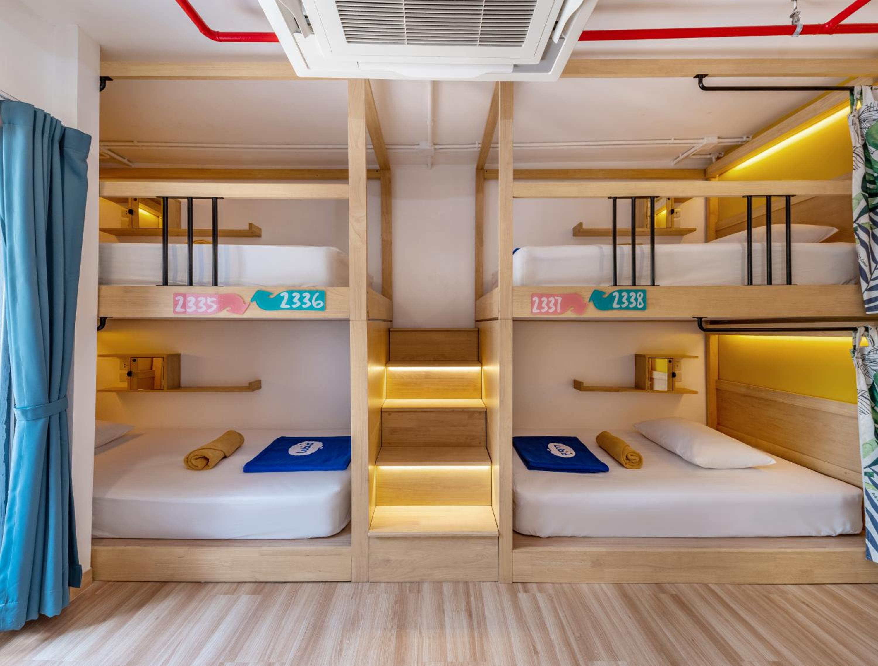 Great location, very clean, good facilities such as stairs to get to top bunk and small locker and charging area at each bed