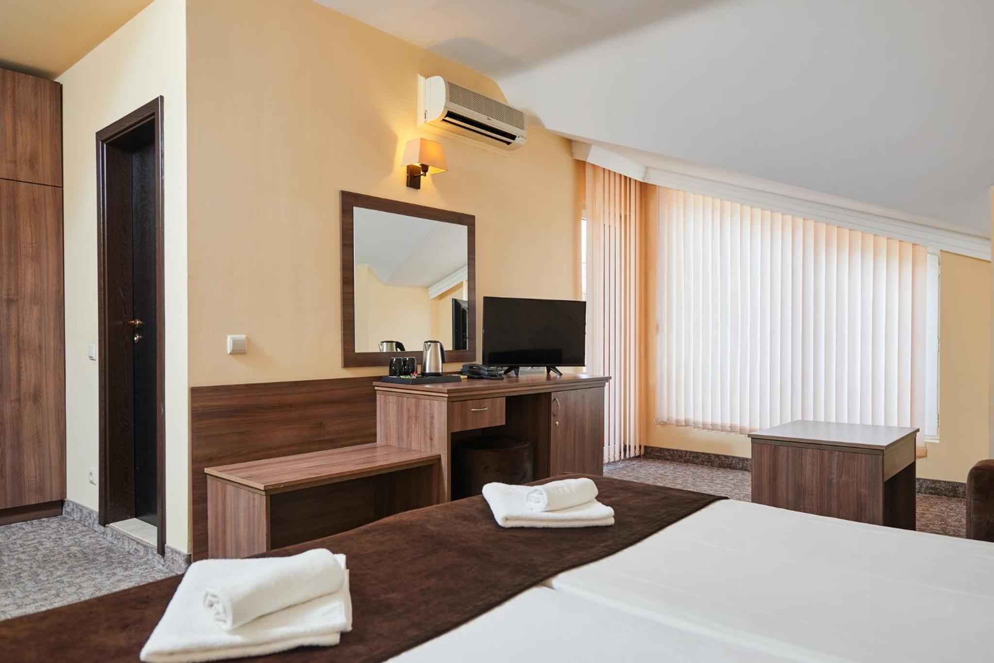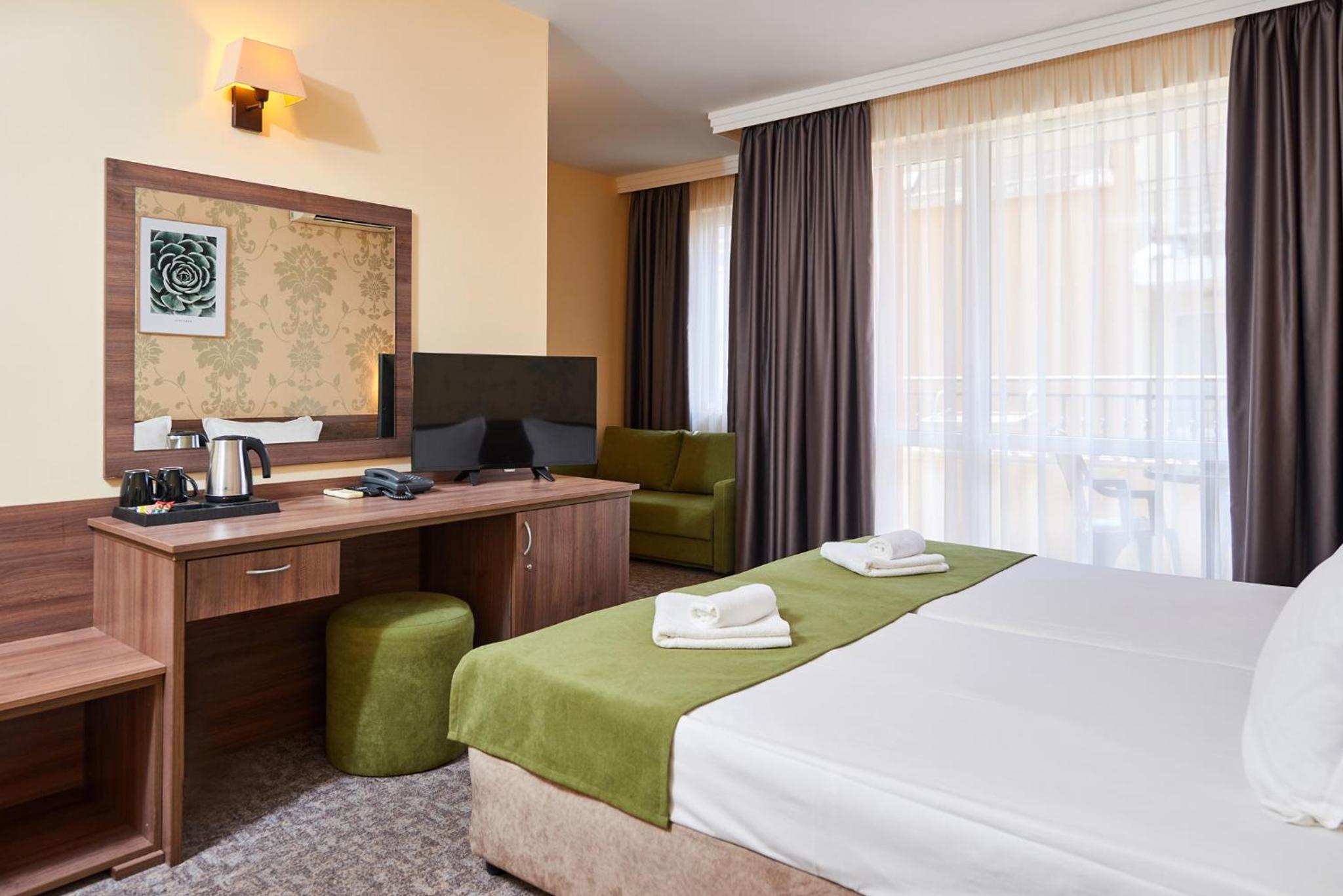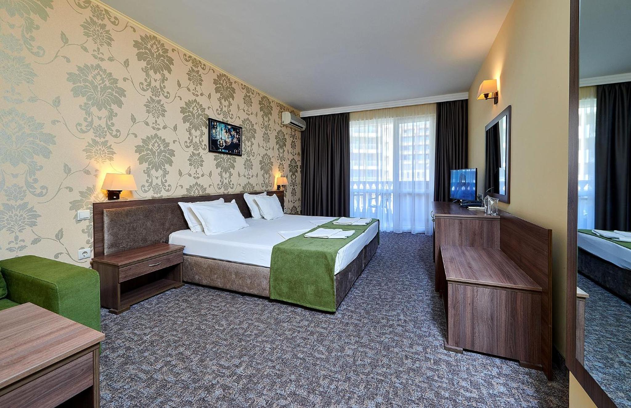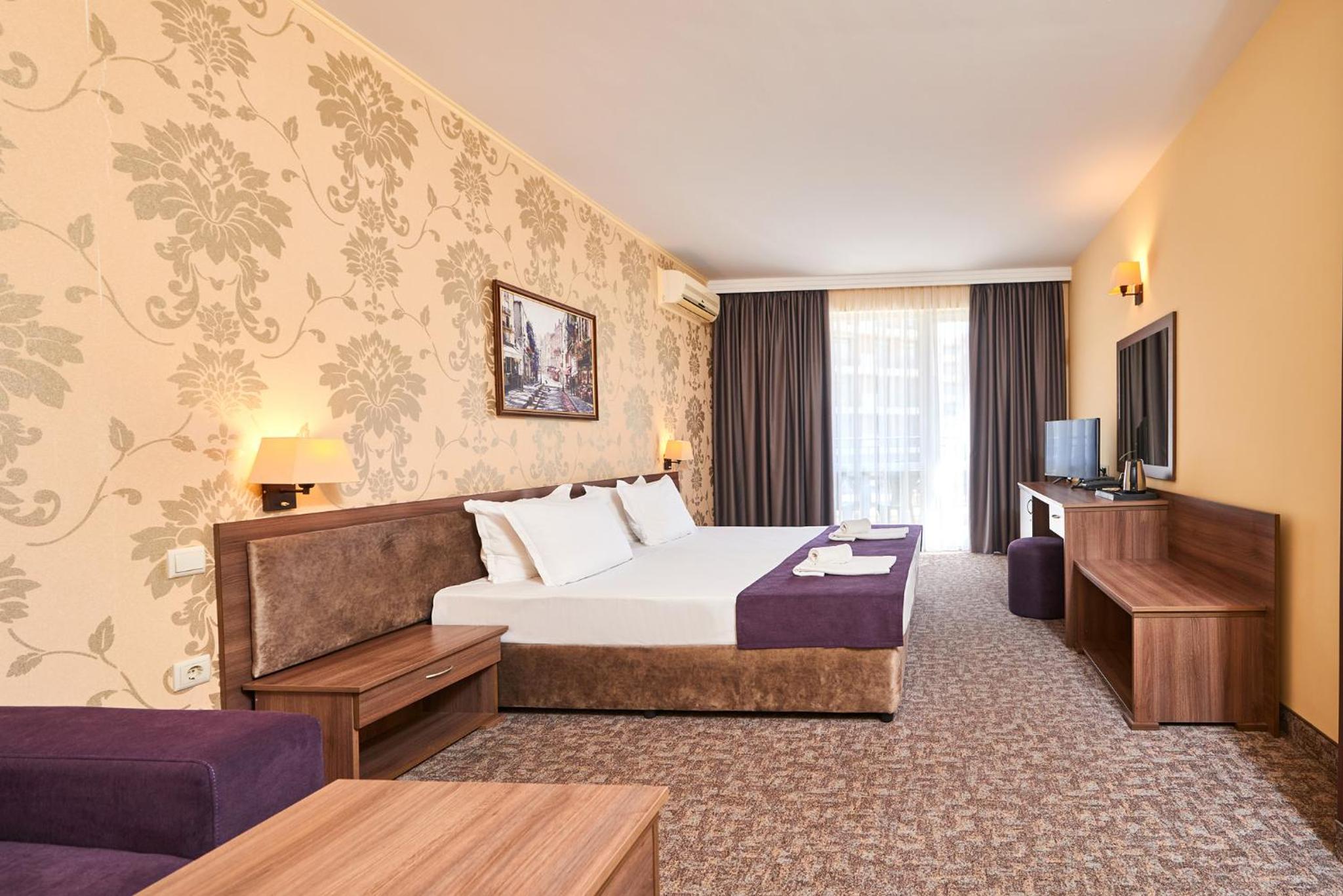 Hotel Forum in Sunny Beach offers elegantly decorated rooms with modern amenities, including satellite TV, refrigerator, and private balcony for a comfortable stay.