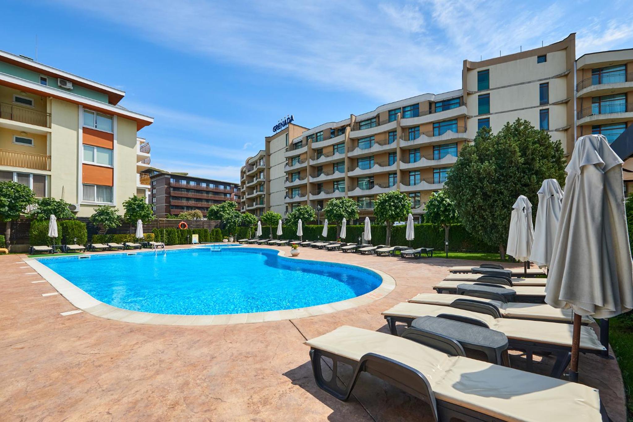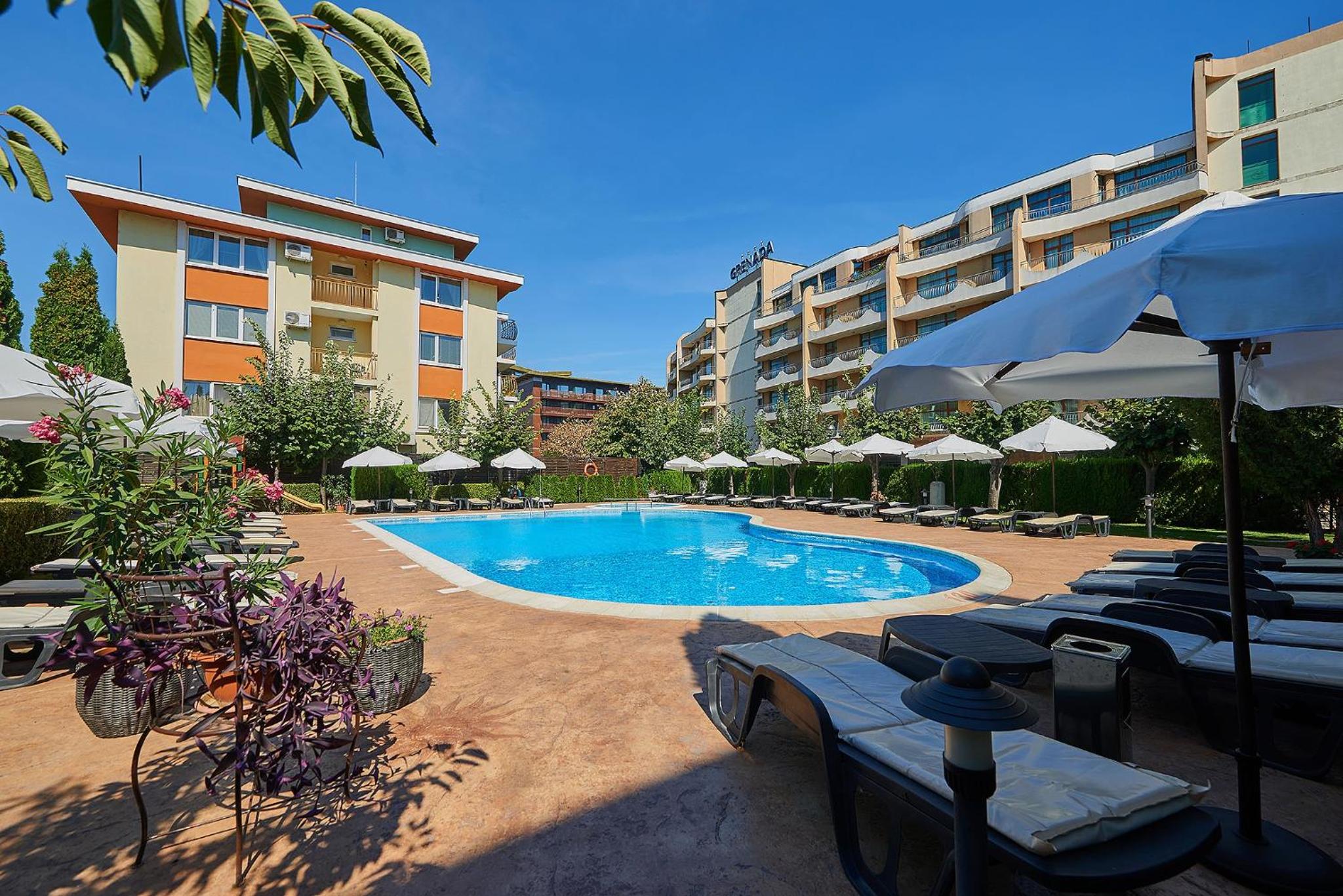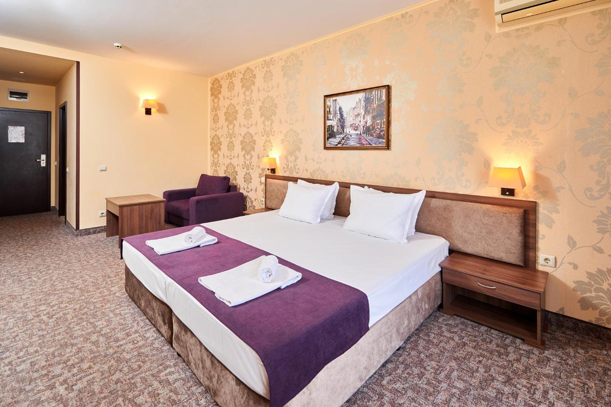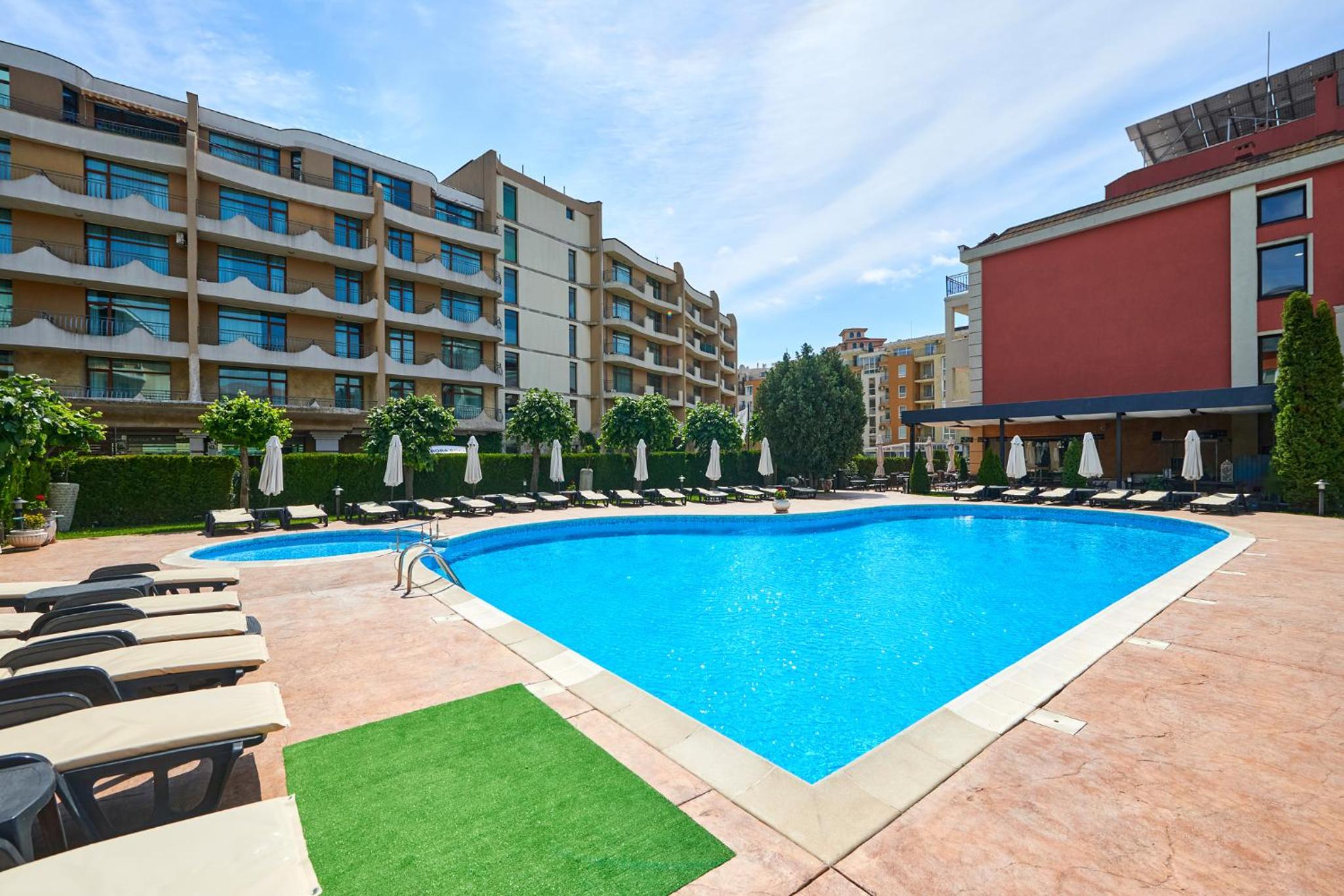 Hotel Forum in Sunny Beach offers elegantly decorated rooms with modern amenities, including satellite TV, refrigerator, and private balcony for a comfortable stay.