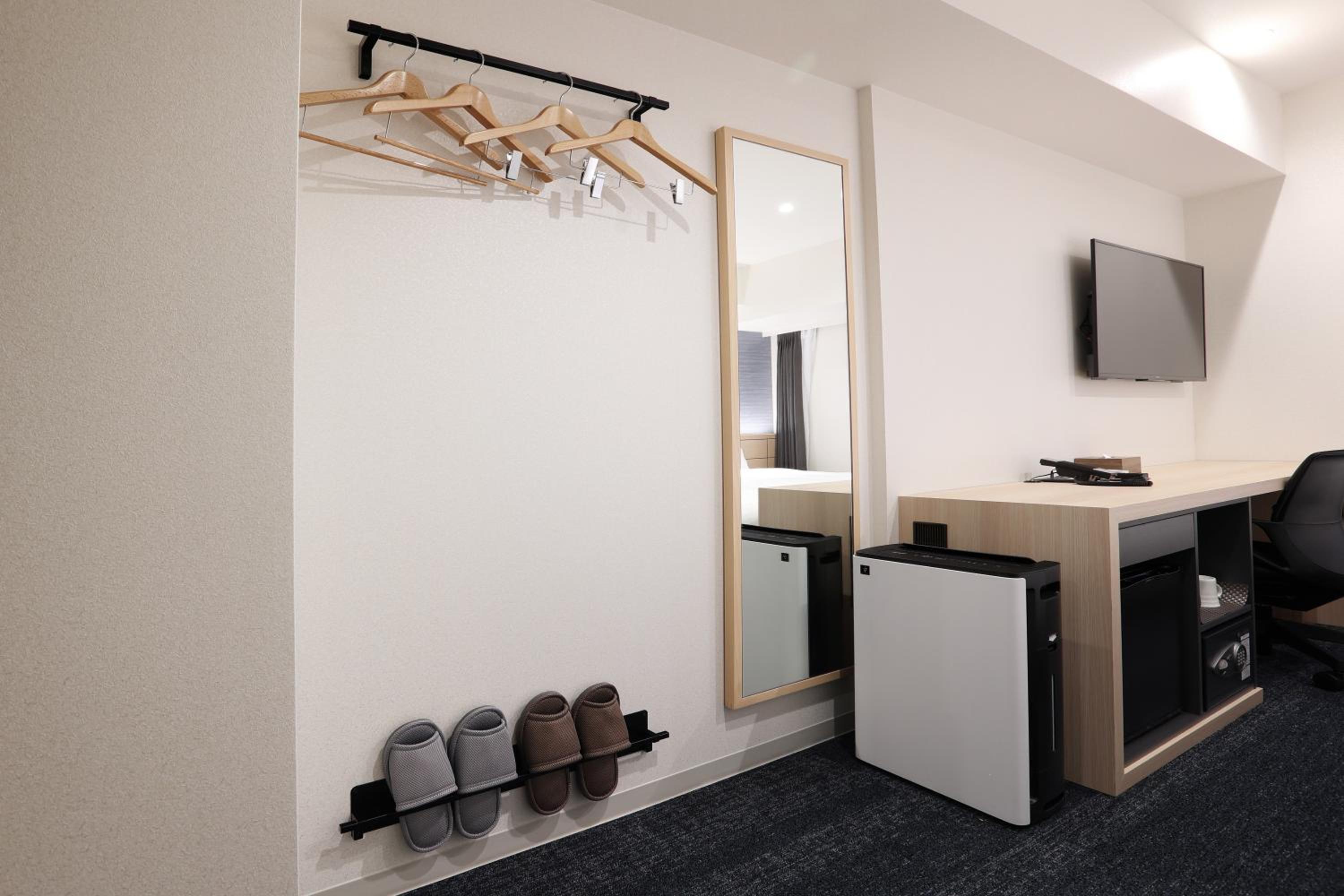 Nopea self-check in käytössä. Tilava huone ainakin Tokion hotellihuoneisiin verrattuna.