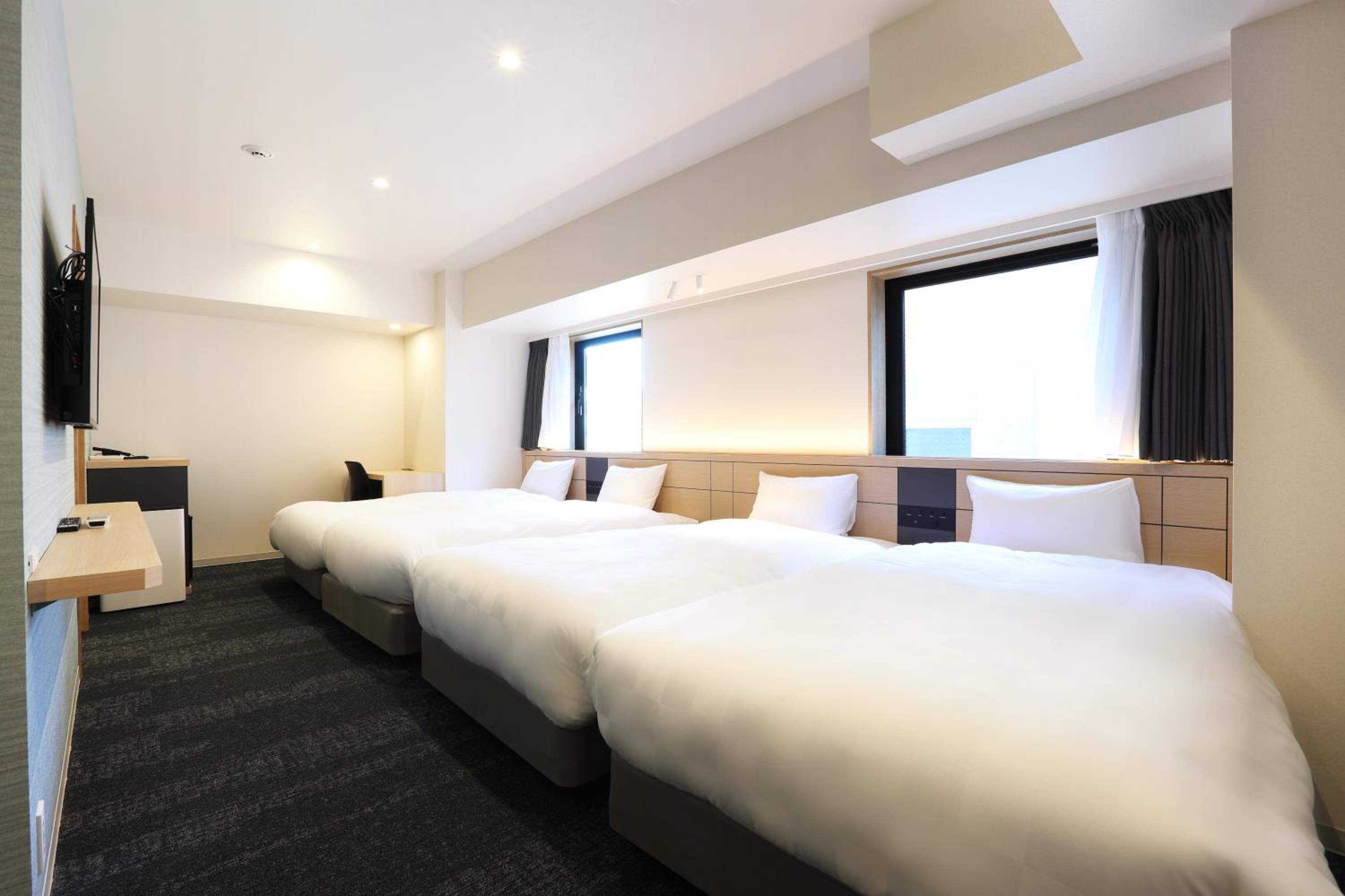 Really great location. It's within a block away from the Fushimi train station which is really convenient if you are traveling by train. There is a 7-11 nearby that is also convenient if you are wanting some snacks/drinks as well. A lot of restaurants to choose from within 2-3 blocks radius from the hotel, so location of the hotel is great! The hotel room we reserved was pretty good in terms of sizing as well. We fit all our luggages comfortably and the beds/pillows were comfortable as well. Would recommend this place! The bfast that our reservation that came with was okay. There are three courses to choose from which isn't that bad. We love the water pressure from the shower as well as it's strong and feels good and relaxing from a whole day of travel.
