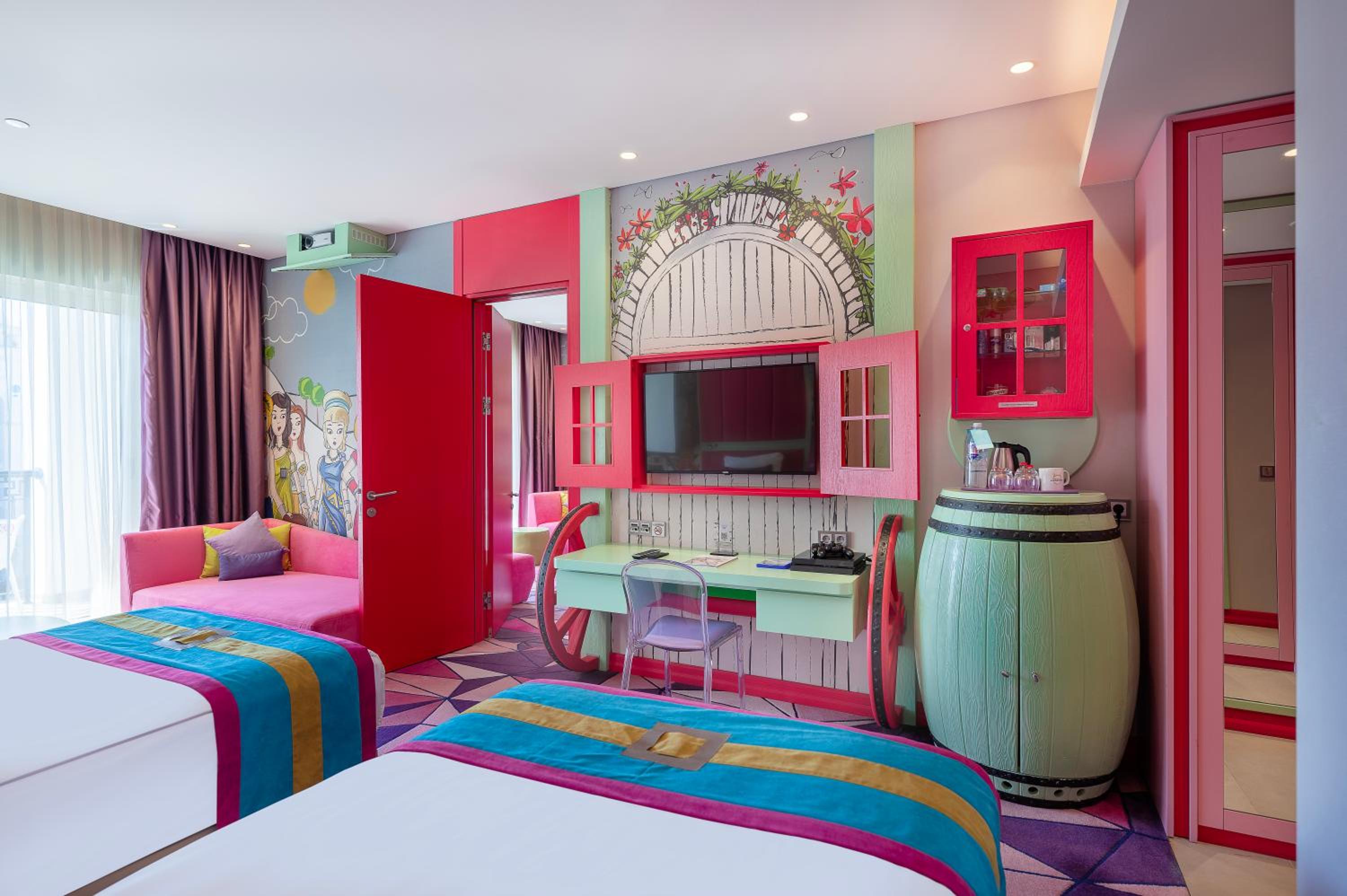 Luxurious Accommodation: Experience fantasy-themed rooms with dual-screen LED TVs and Play Stations, complemented by private bathrooms with premium amenities.