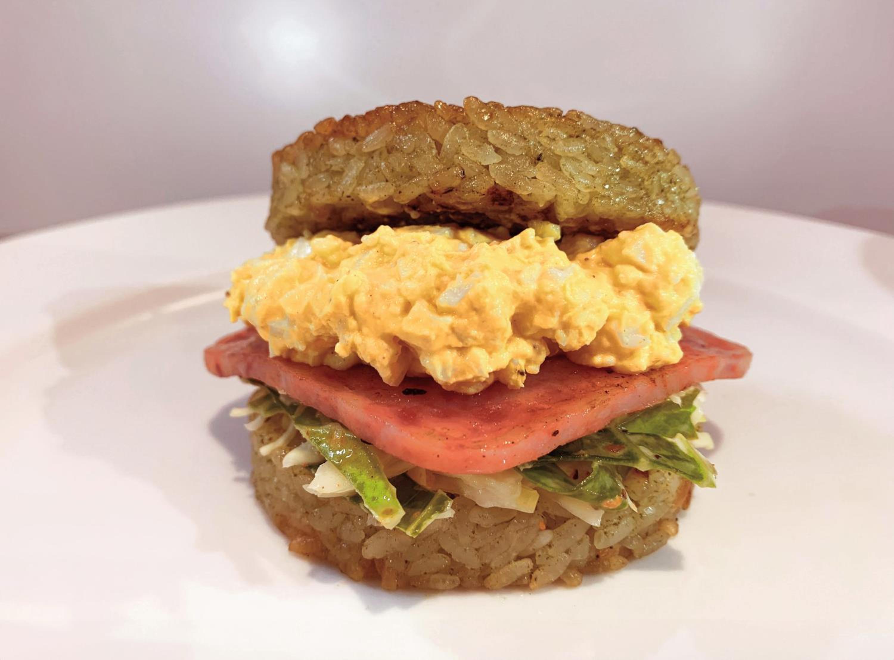 場所が駅近い。朝食は同じ建物内のライスバーガーのお店。
