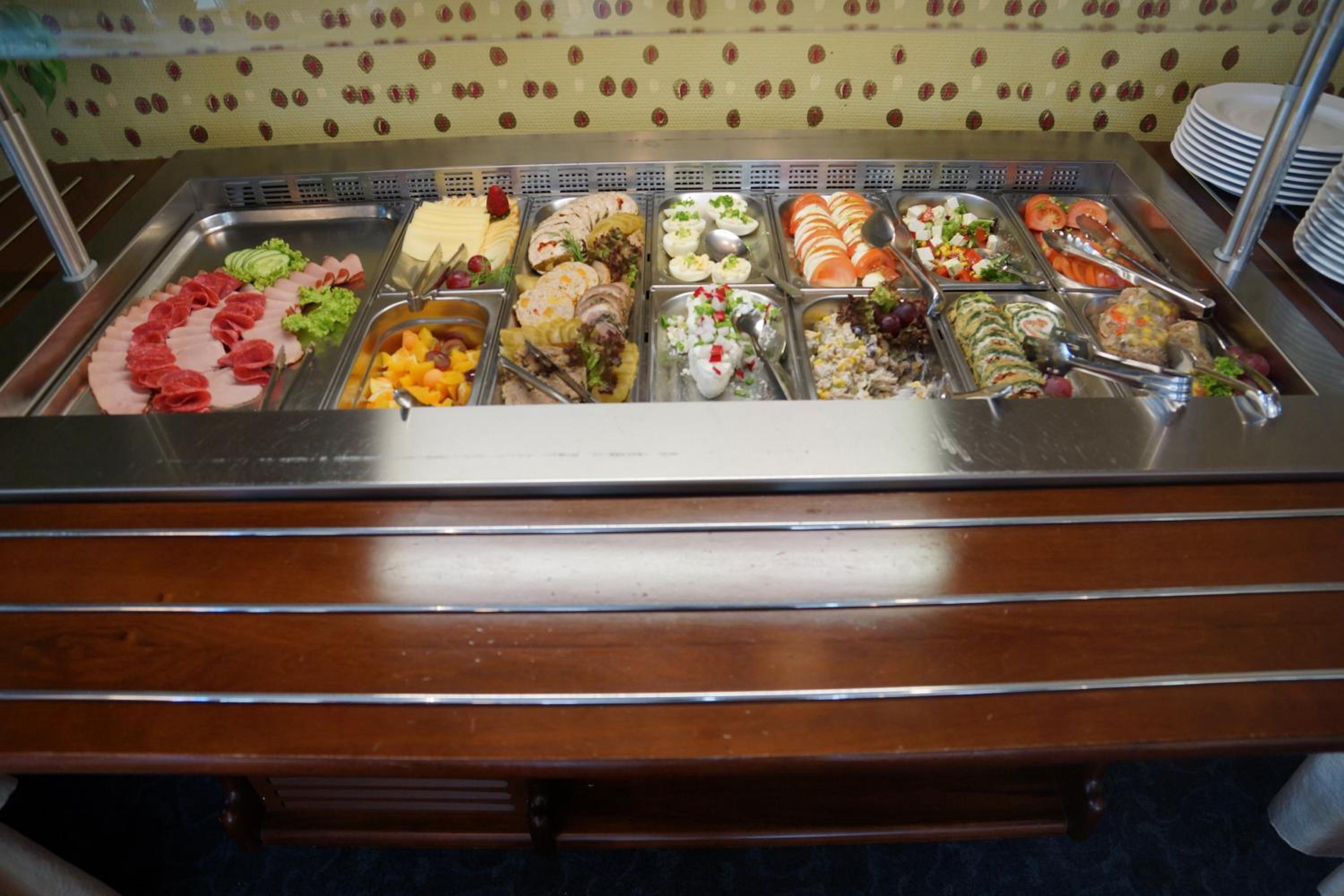 Ogromny wybór potraw, napoi zimnych i gorących, na bieżąco uzupełniany . Wszystko bardzo smaczne , świeże , pachnące i super wyeksponowane na półmiskach i innych naczyniach.