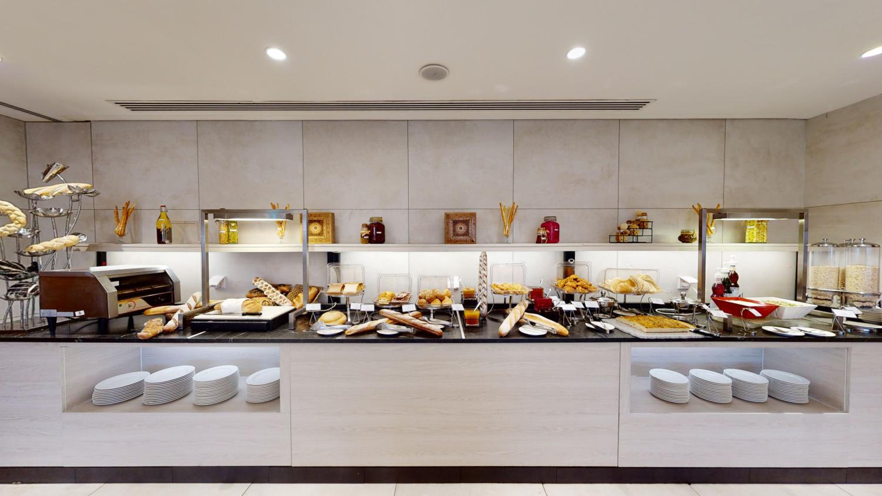 A breakfast buffet with fresh bakery and a live cooking omelet station is served each morning. Starbucks is open daily on the ground floor of the hotel. Ayass Hotel's restaurant also provides a lunch and dinner menu and room service.