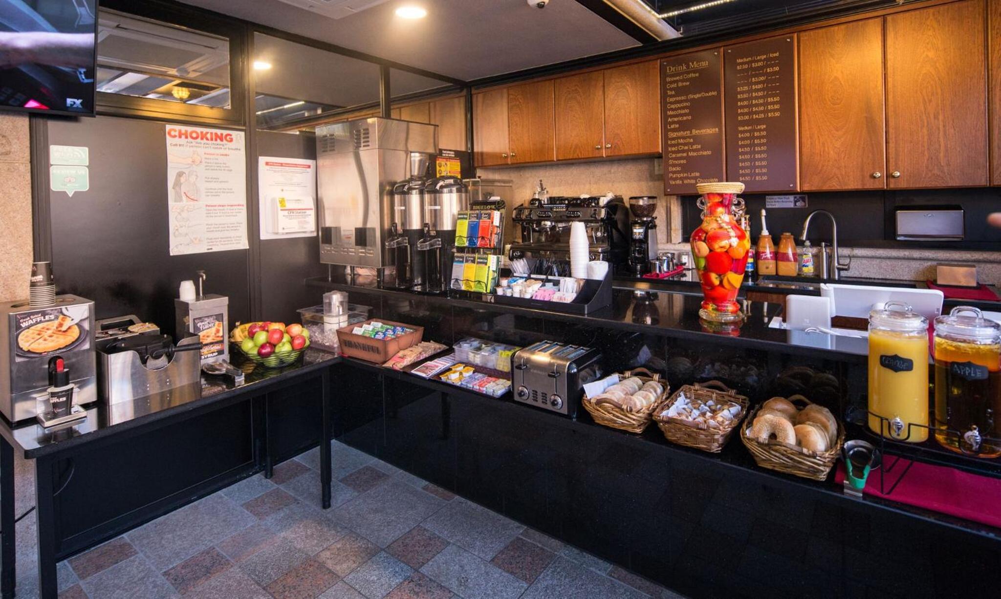 Start your day with a delicious continental breakfast at our on-site cafe. Unwind in the evening with a drink from the full bar, or savor a cup of local coffee. The perfect way to experience the culinary delights of the city.