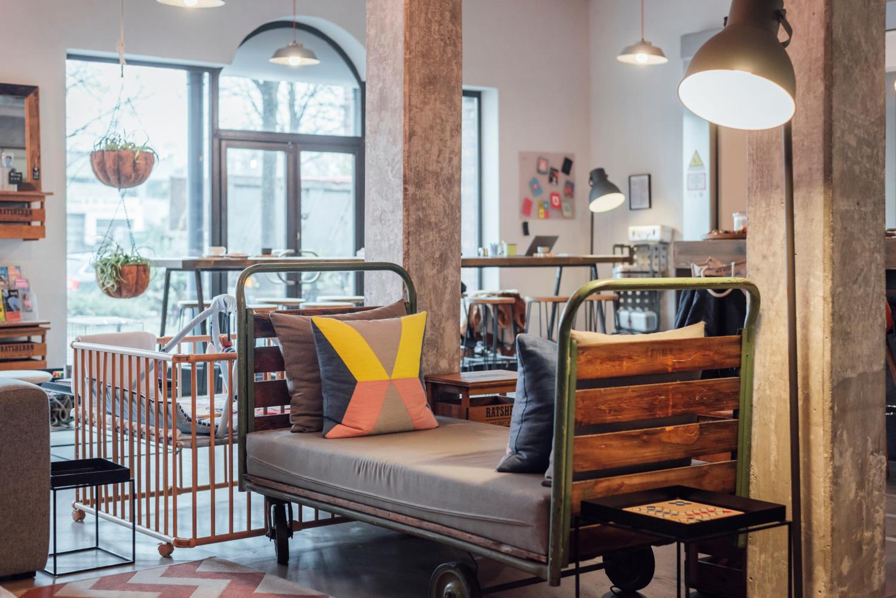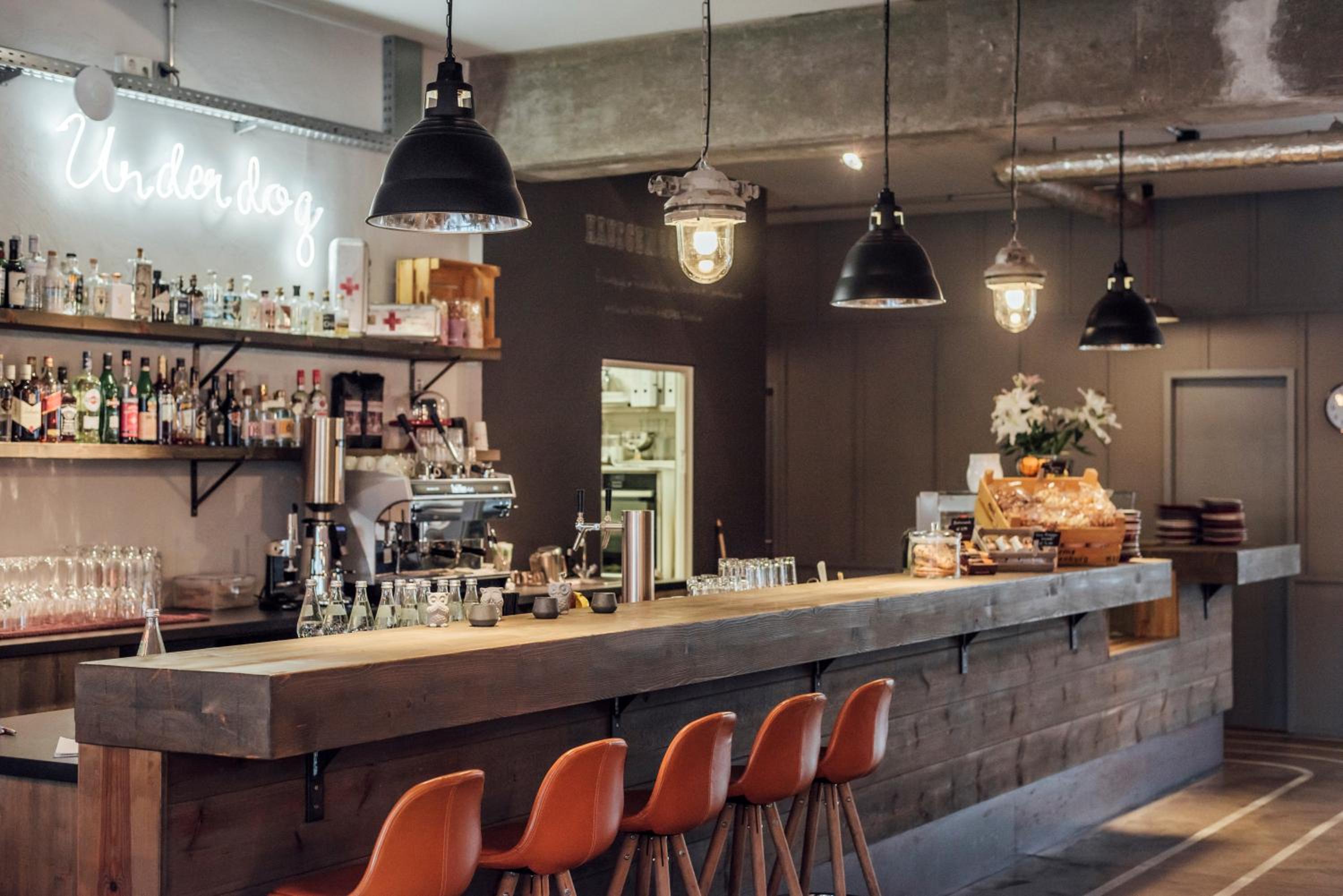 Sehr freundliches Personal, stylischer Industrie-Charme, schönes Design, sehr sauber, Parkplätze auf dem Gelände