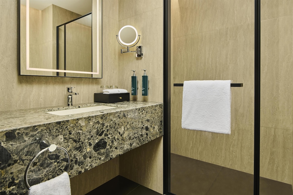 Retreat to one of our 230 individually designed guest rooms, boasting pillowtop beds, premium bedding, and modern amenities. Each room features an LCD television, a free minibar, and a rainfall showerhead in elegant bathrooms.