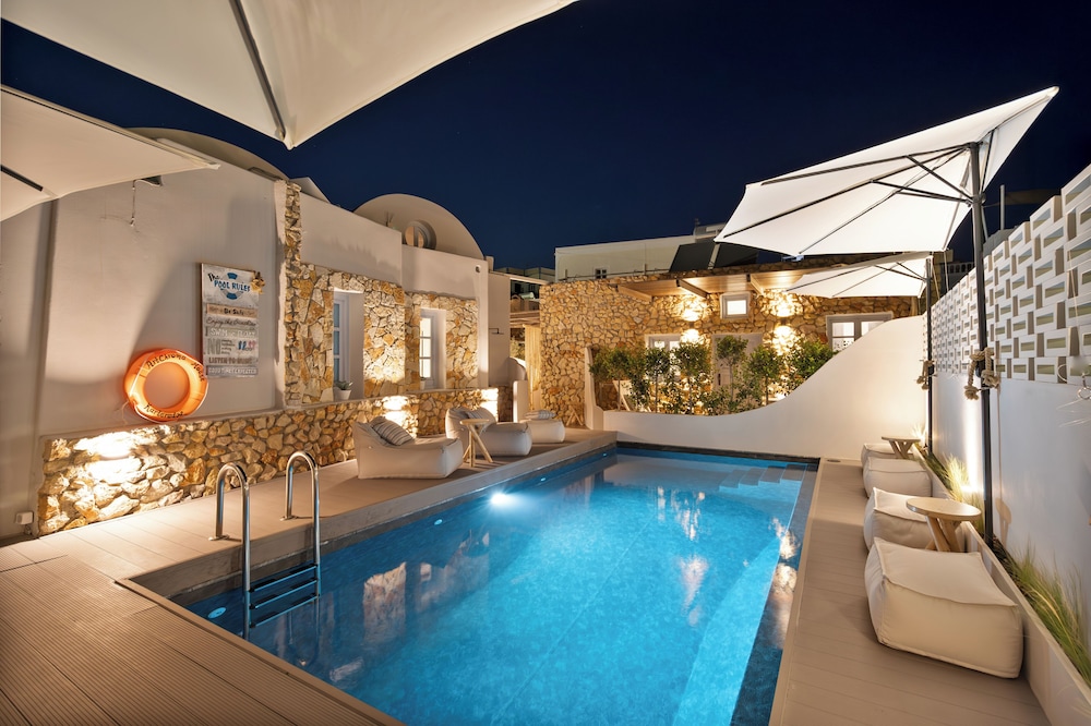 Unwind in our stunning seasonal outdoor pool or sip your favorite drink on the rooftop terrace, soaking up the iconic Santorini sunset while enjoying panoramic views of the caldera.