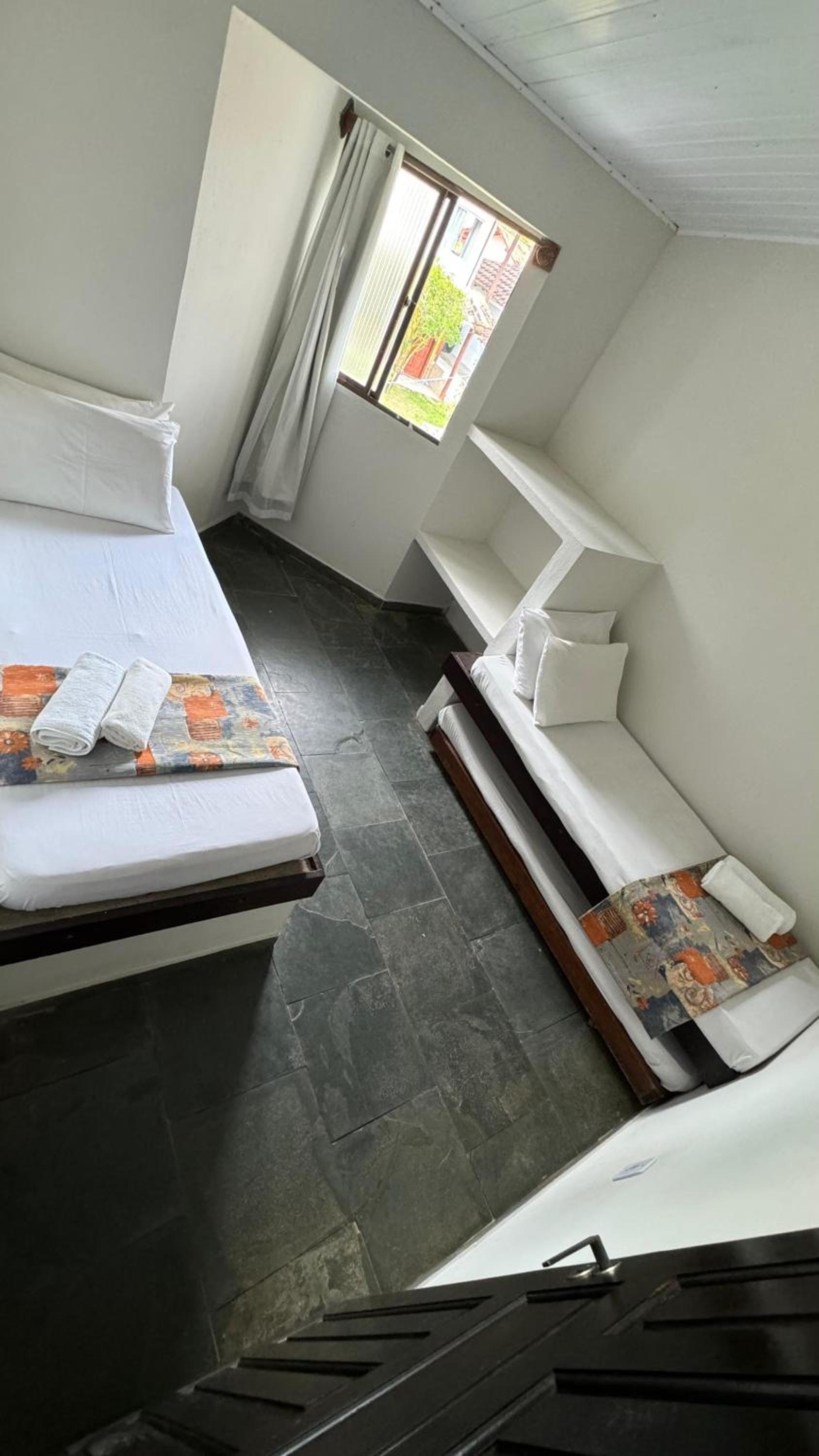 Os quartos são simples, limpos, porém apresentam problemas graves de conforto. O banheiro possui janela voltada para dentro do quarto, fazendo com que barulho, odores e luz invadam o ambiente. Além disso, o ar-condicionado não possui controle remoto, o que tornou as noites extremamente desconfortáveis. Passei a semana acordando várias vezes para ligar e desligar o aparelho por frio ou calor excessivo. Não tem TV e o frigobar era velho.