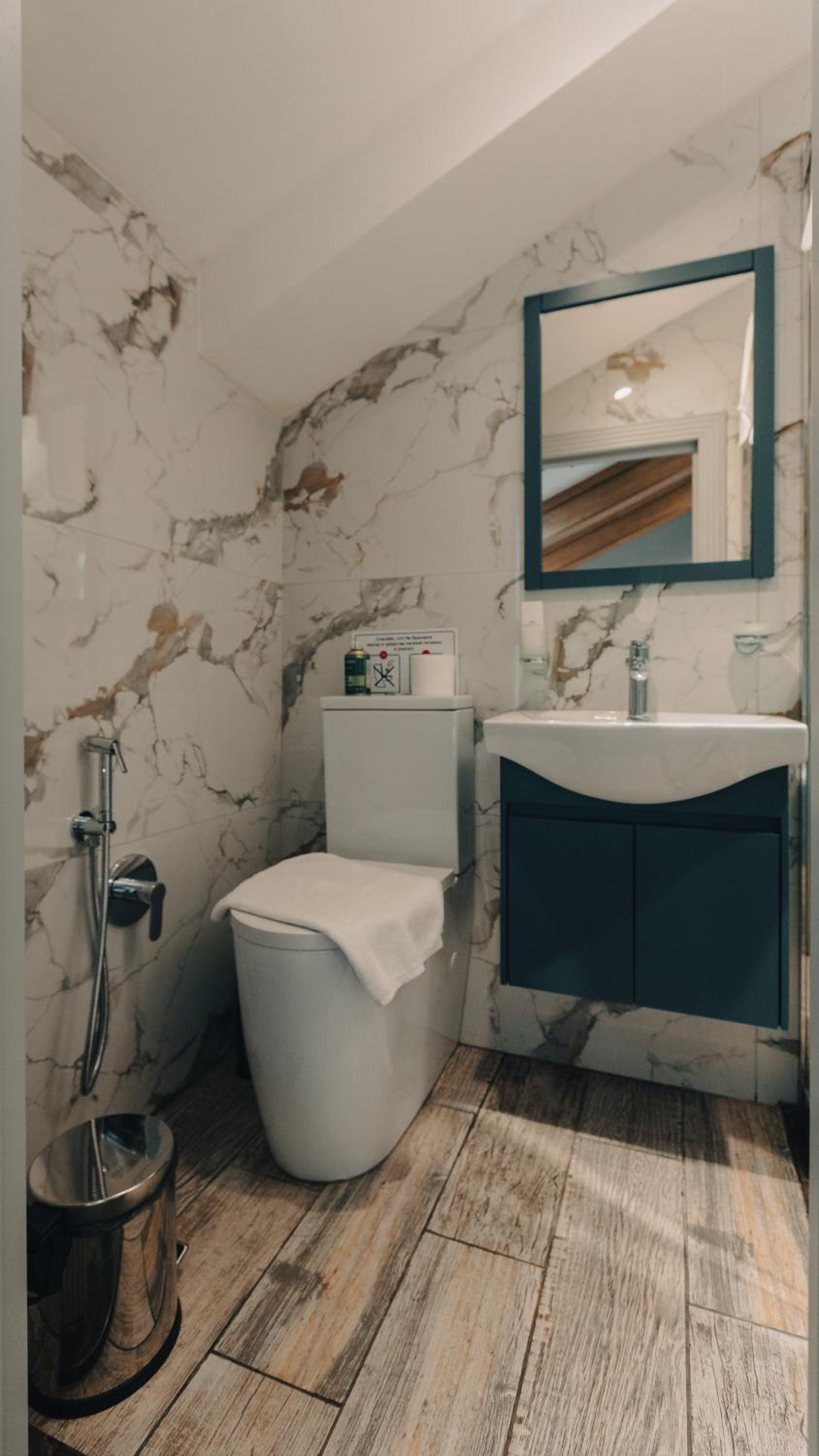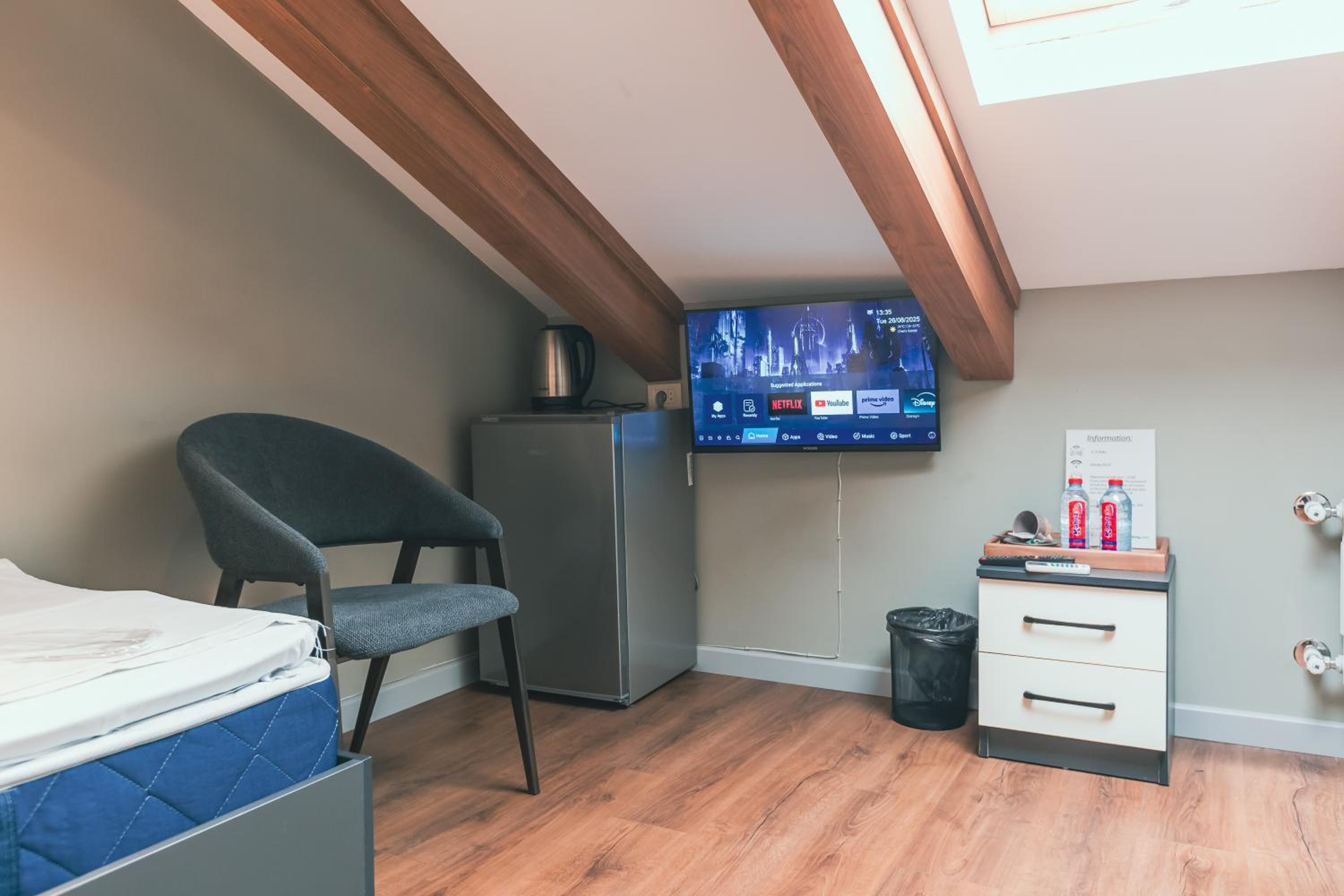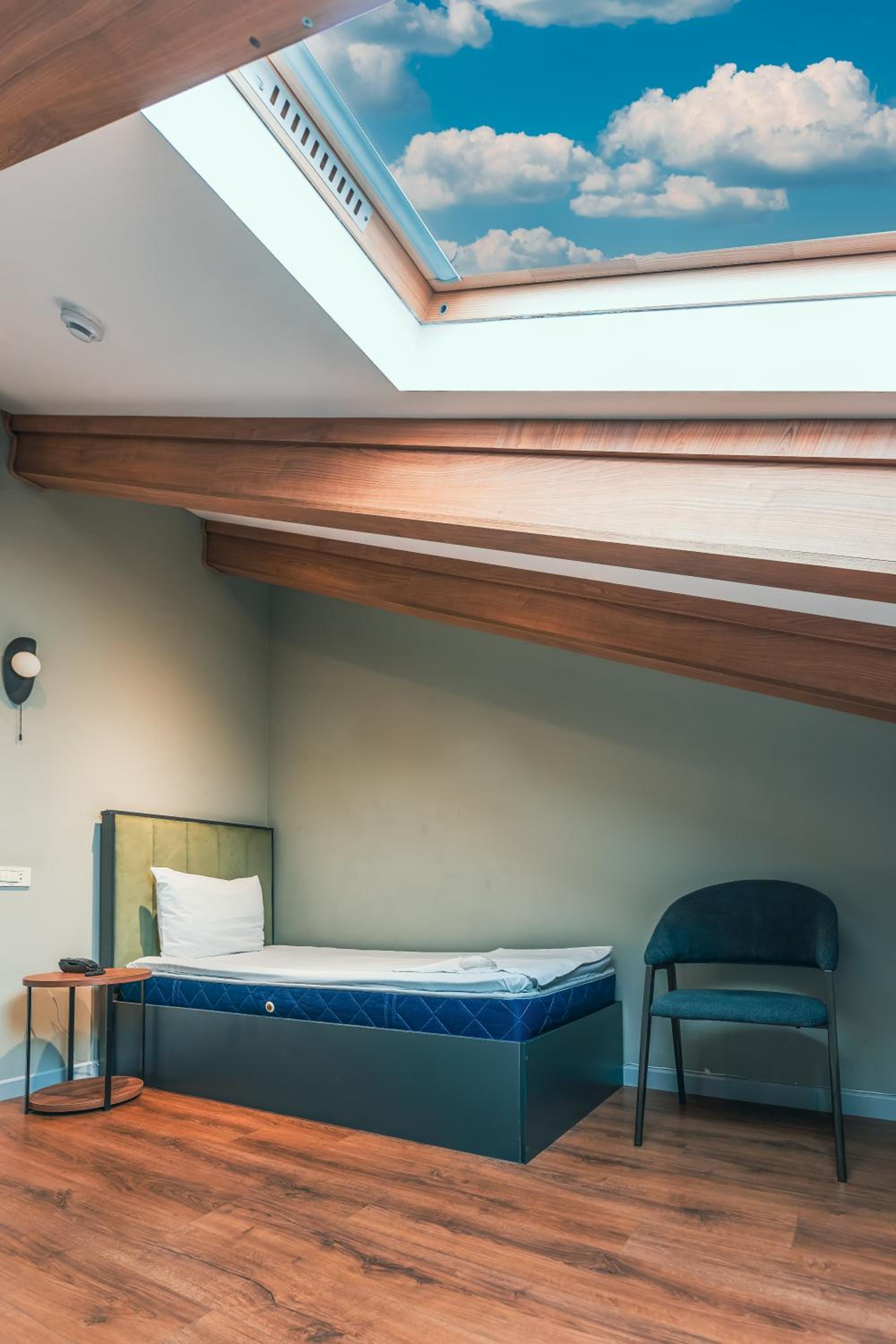 Отель находится на мансардном этаже в старом доме, в котором нет лифта. Поэтому учтите, что придется постоянно подниматься по узкой крутой лестнице на 5 этаж.